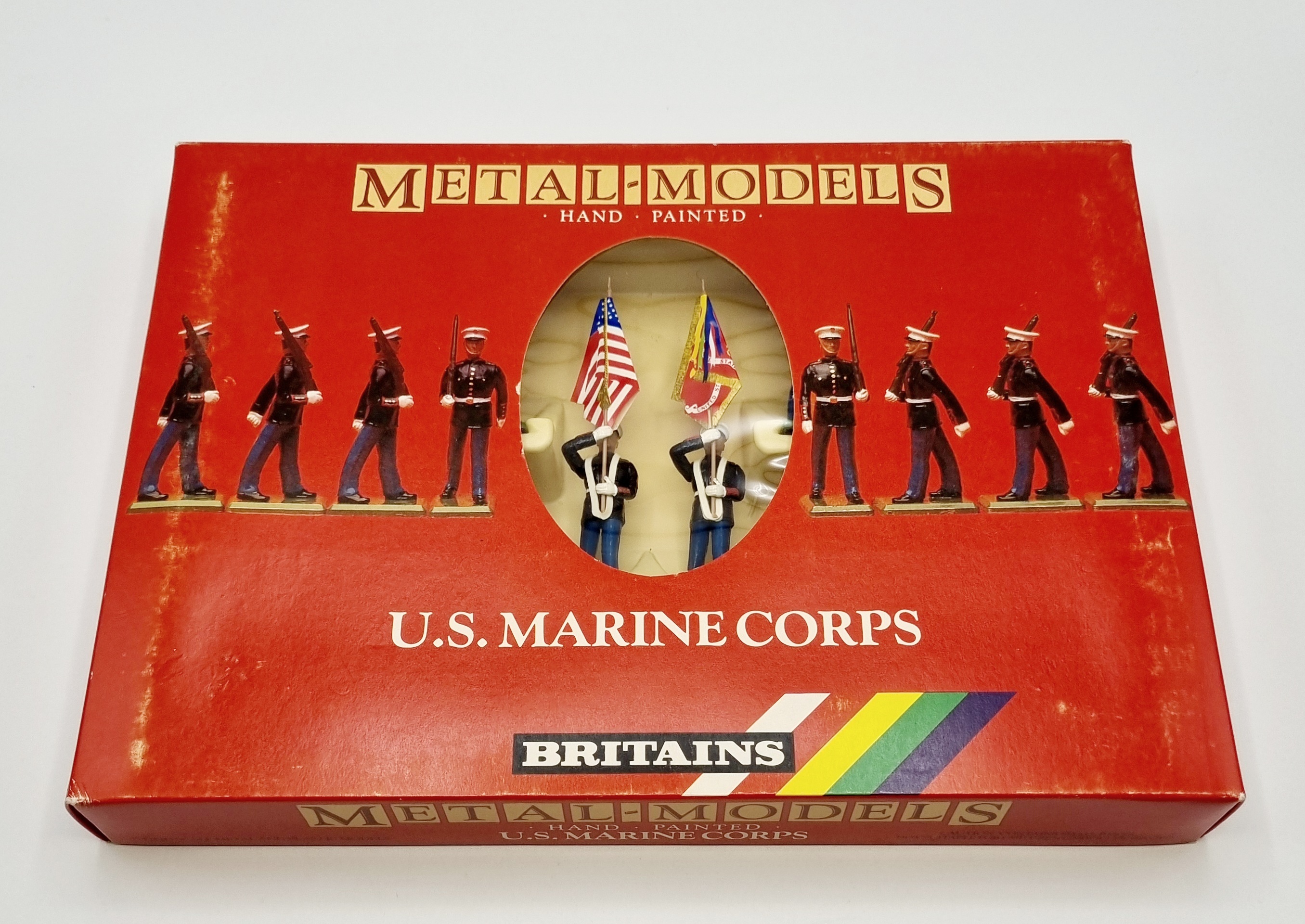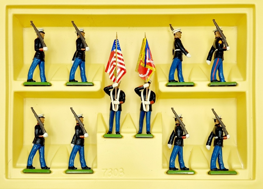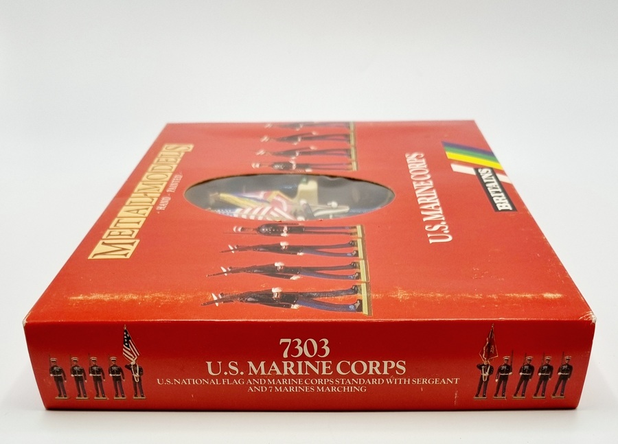Britains rode vensterdoos met tien handbeschilderde tinnen soldaten van The U.S Marine Corps. Catalogusnummer 7303 uit 1987. |