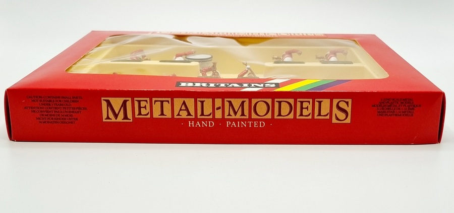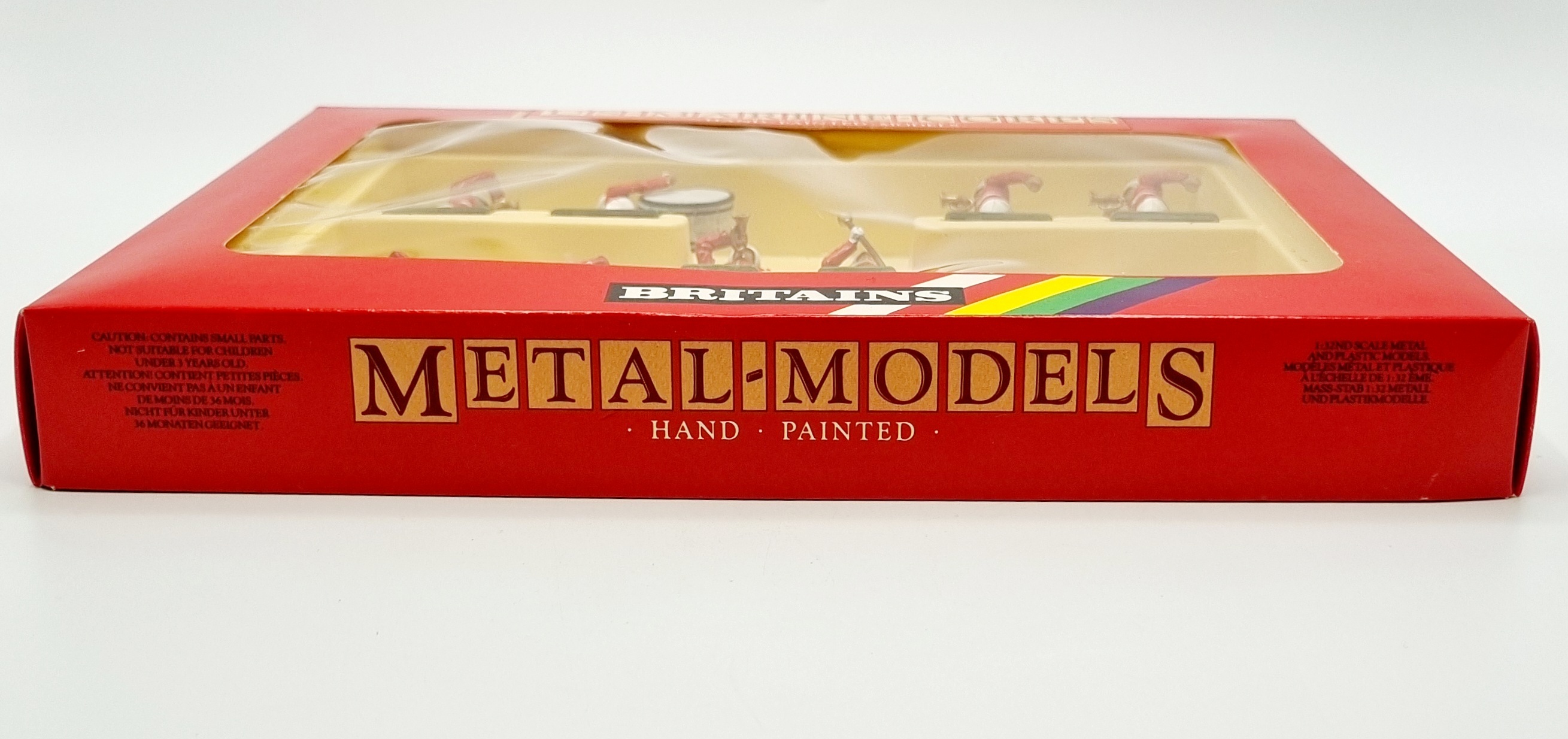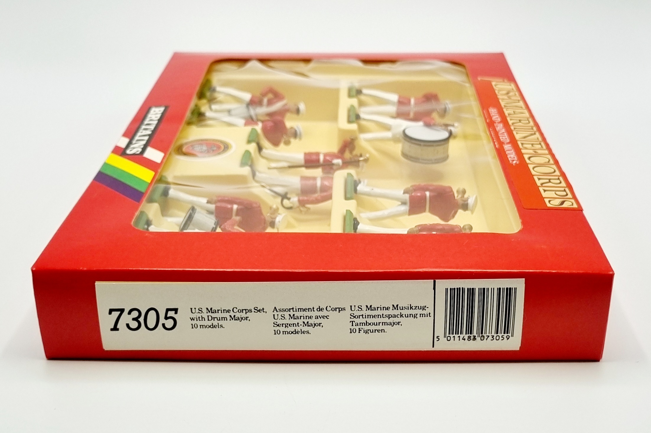 Uit de Britains Metal-Models serie een handbeschilderd militair orkest bestaande uit tien muzikanten van het U.S. Marine Corps in originele rode vensterdoos. Catalogus nummer 7305 uit 1987. |