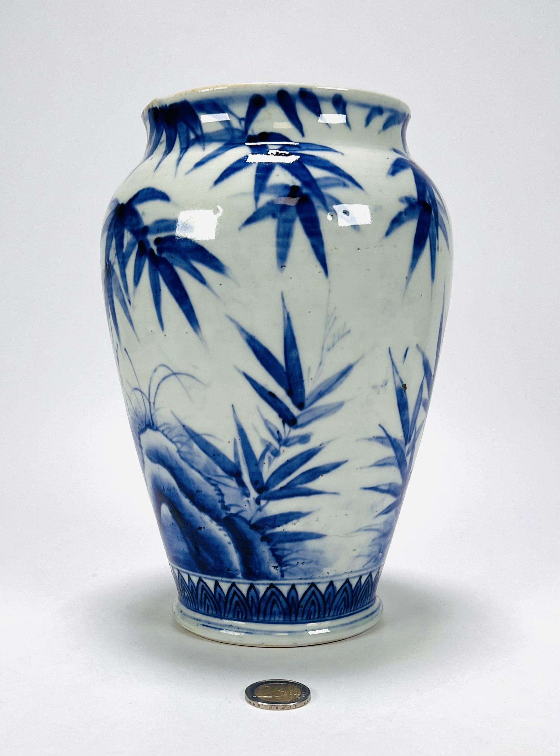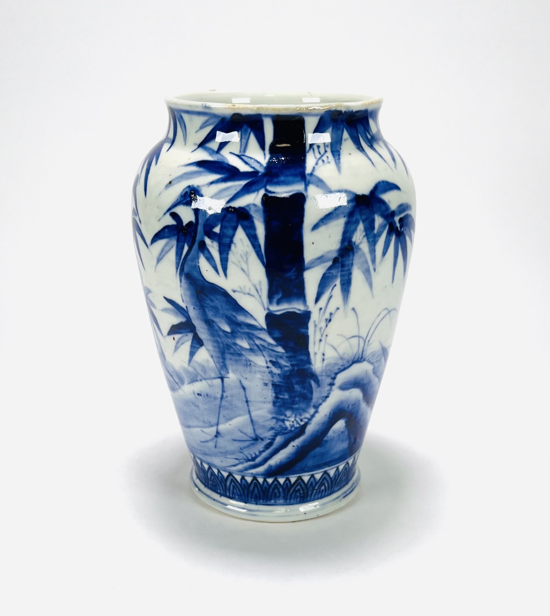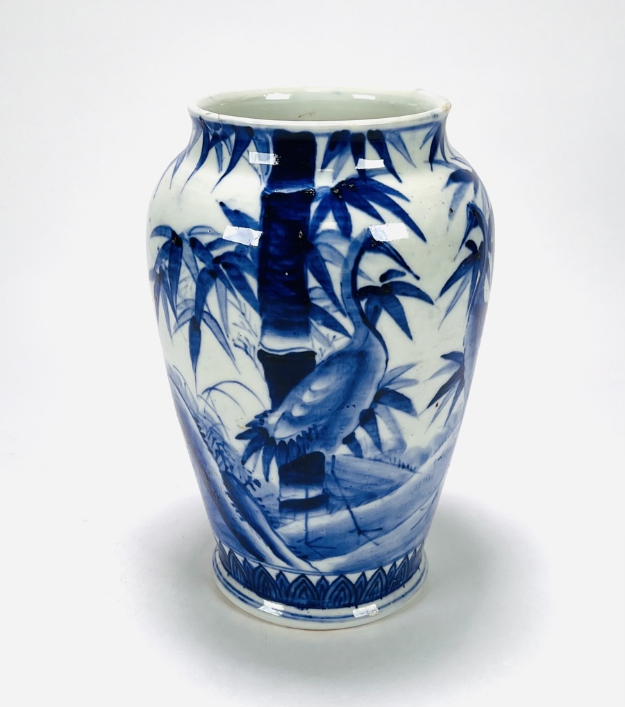 Chinees porseleinen vaas gedecoreerd met kraanvogels en bamboe. Midden 20e eeuw. |