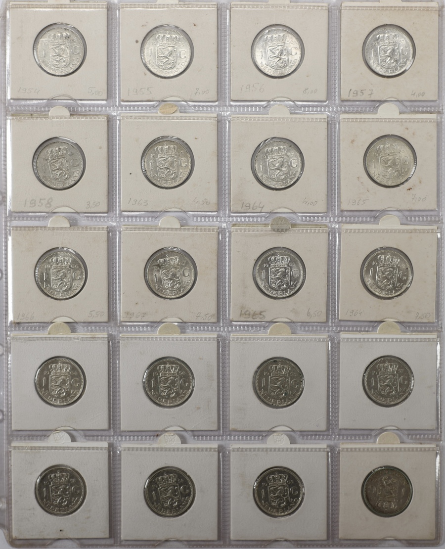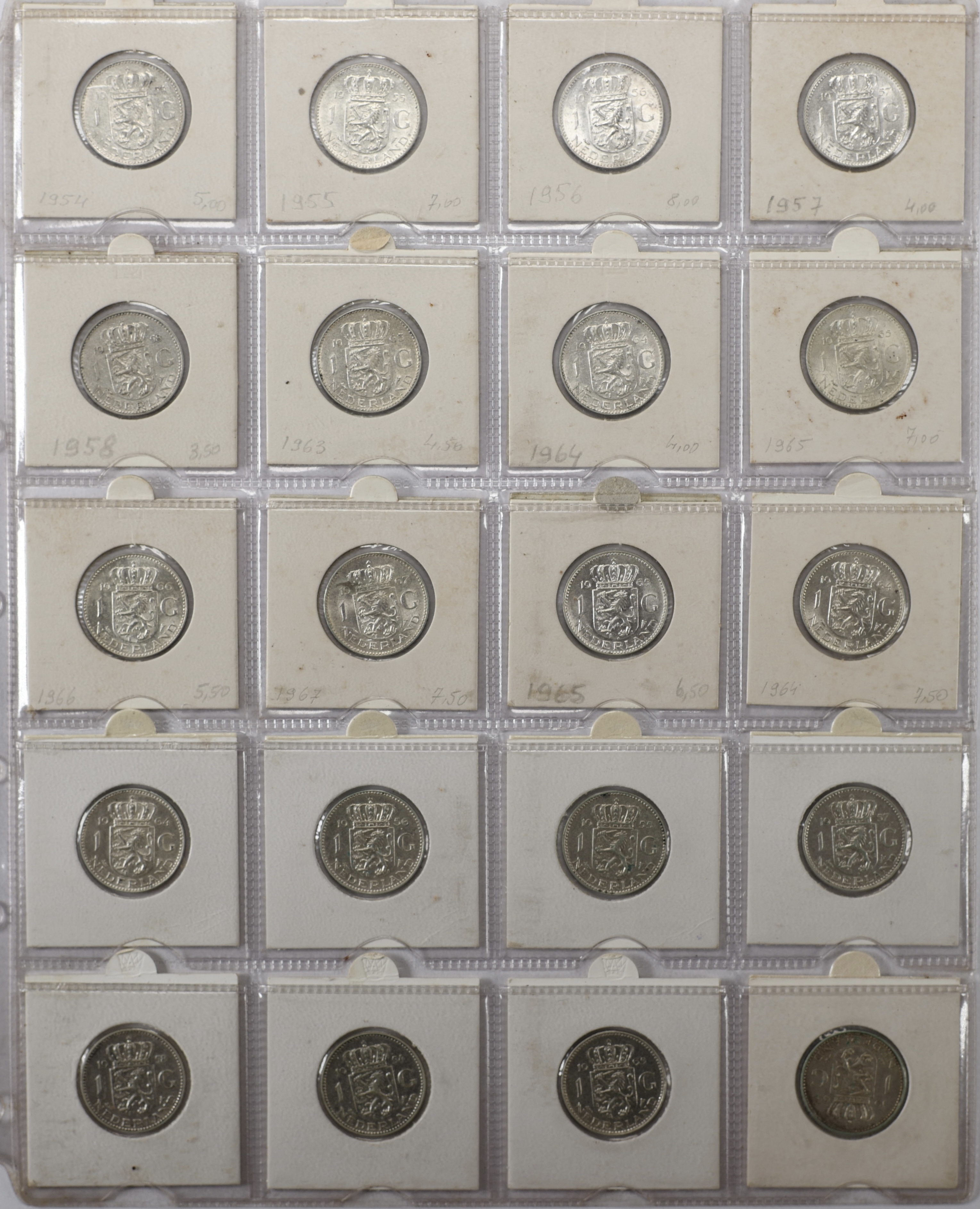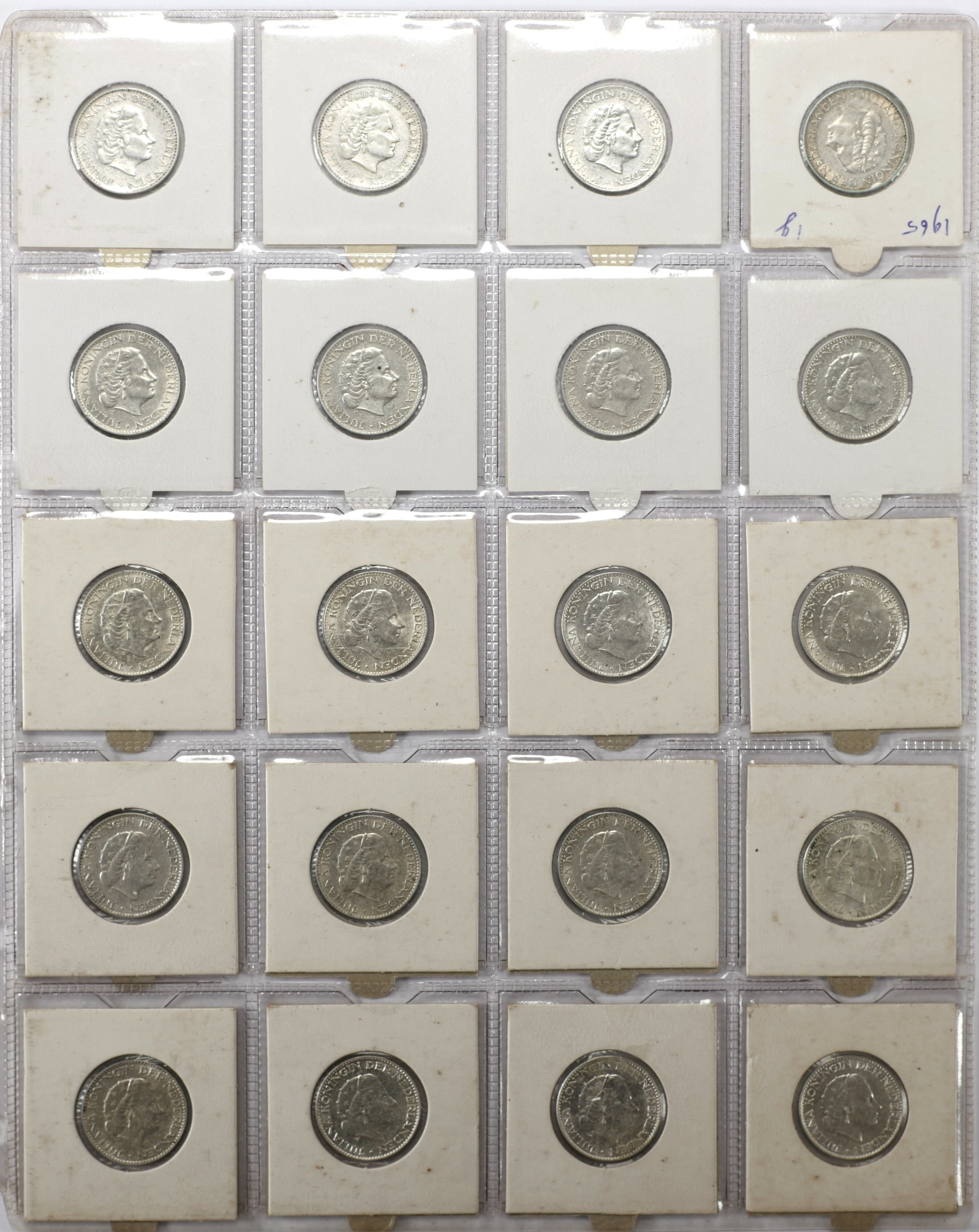 Twintig zilveren Koningin Juliana Guldens van 1954 tot 1967. |