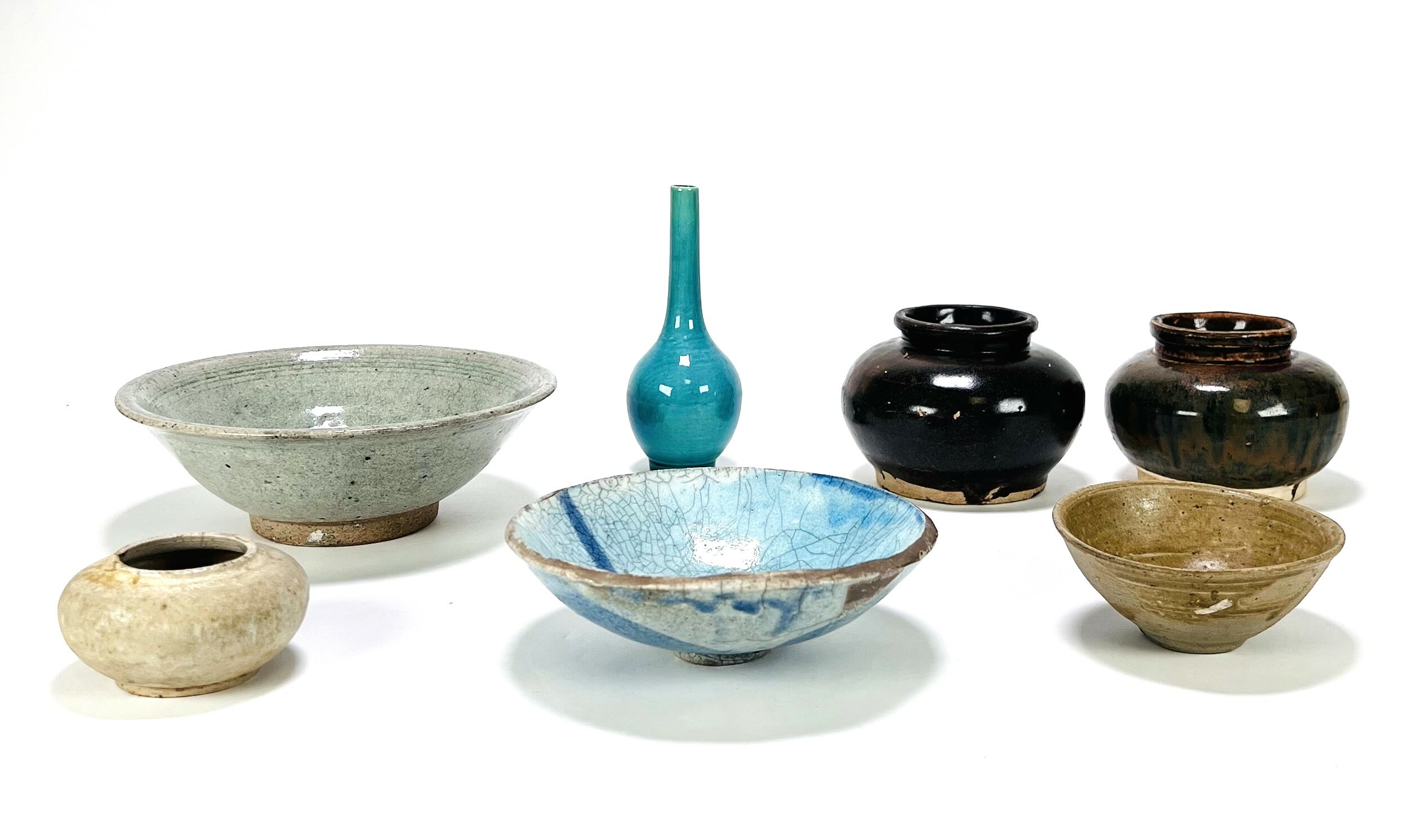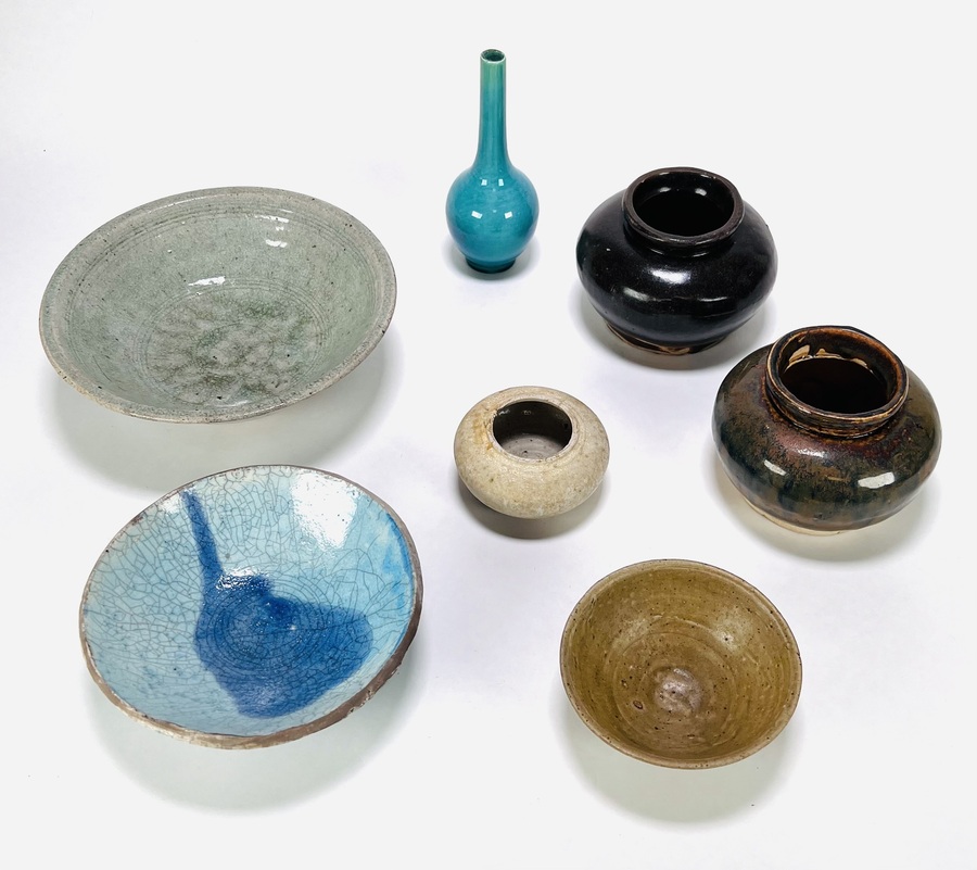 Convoluut keramiek met schalen, vaasjes en kommen. Anoniem, 19e/20e eeuw. |