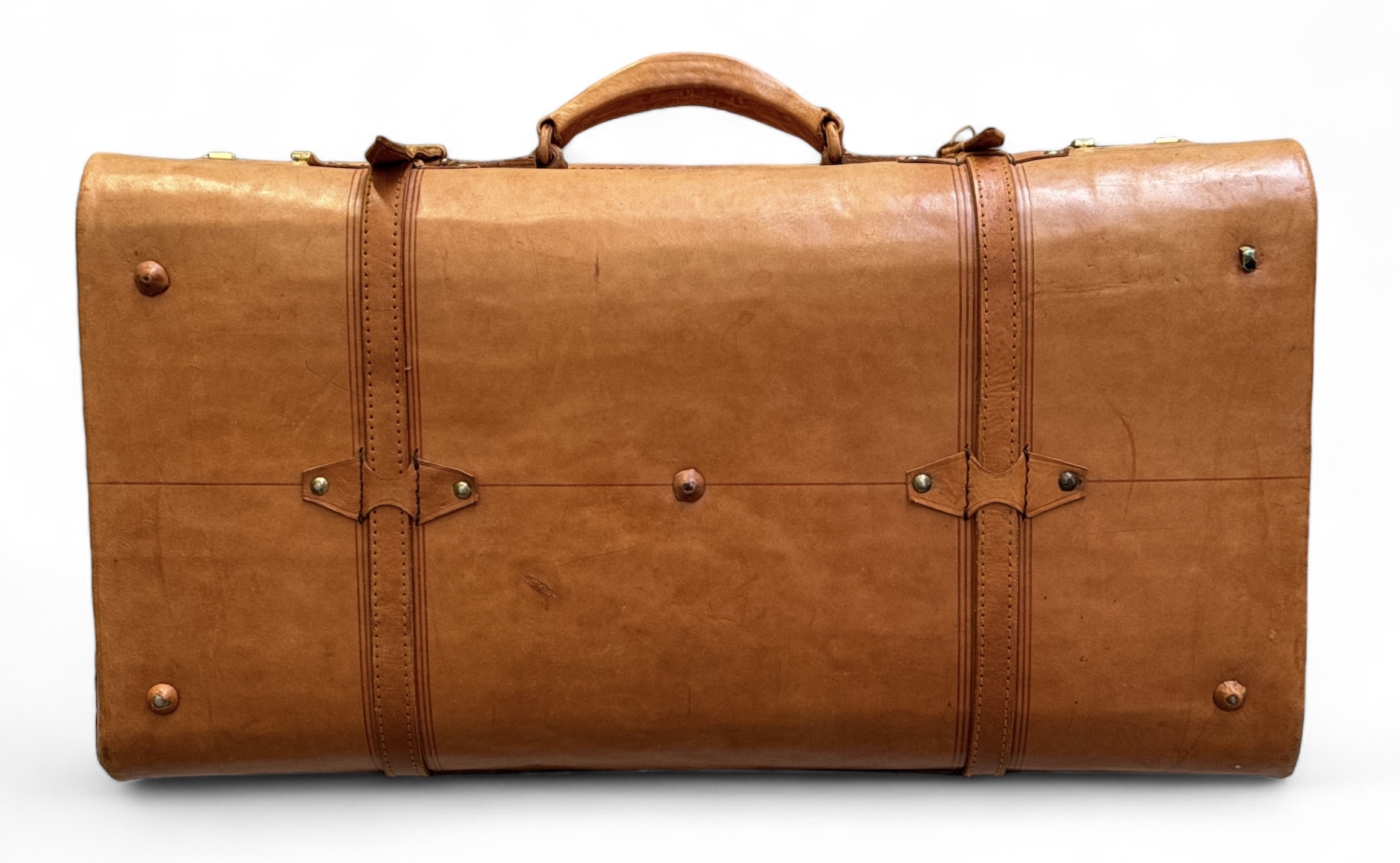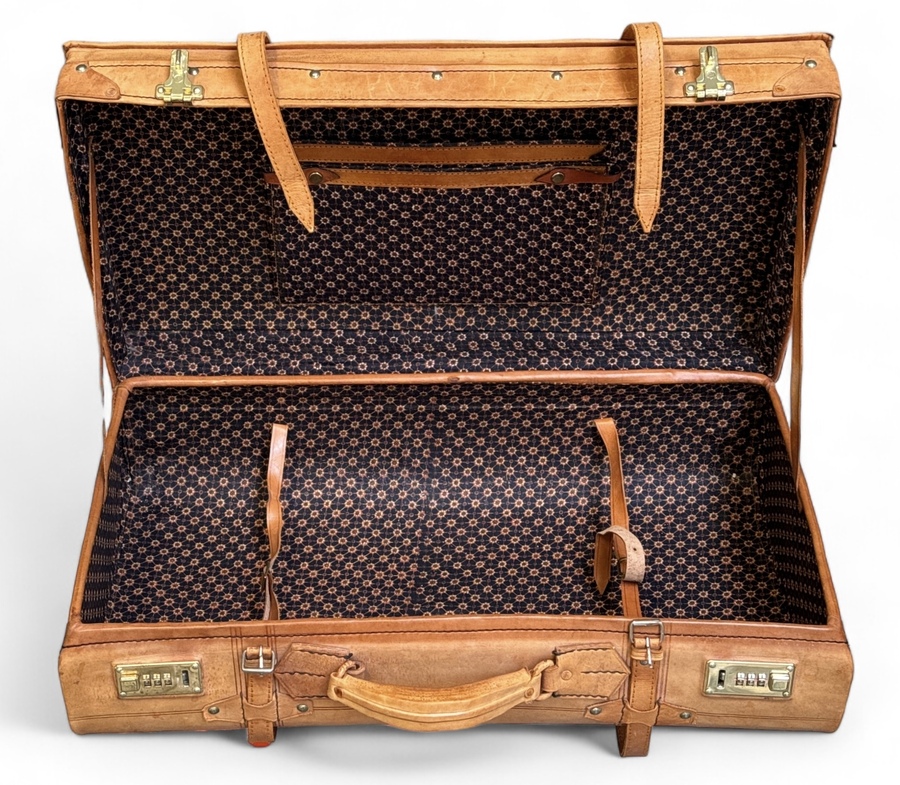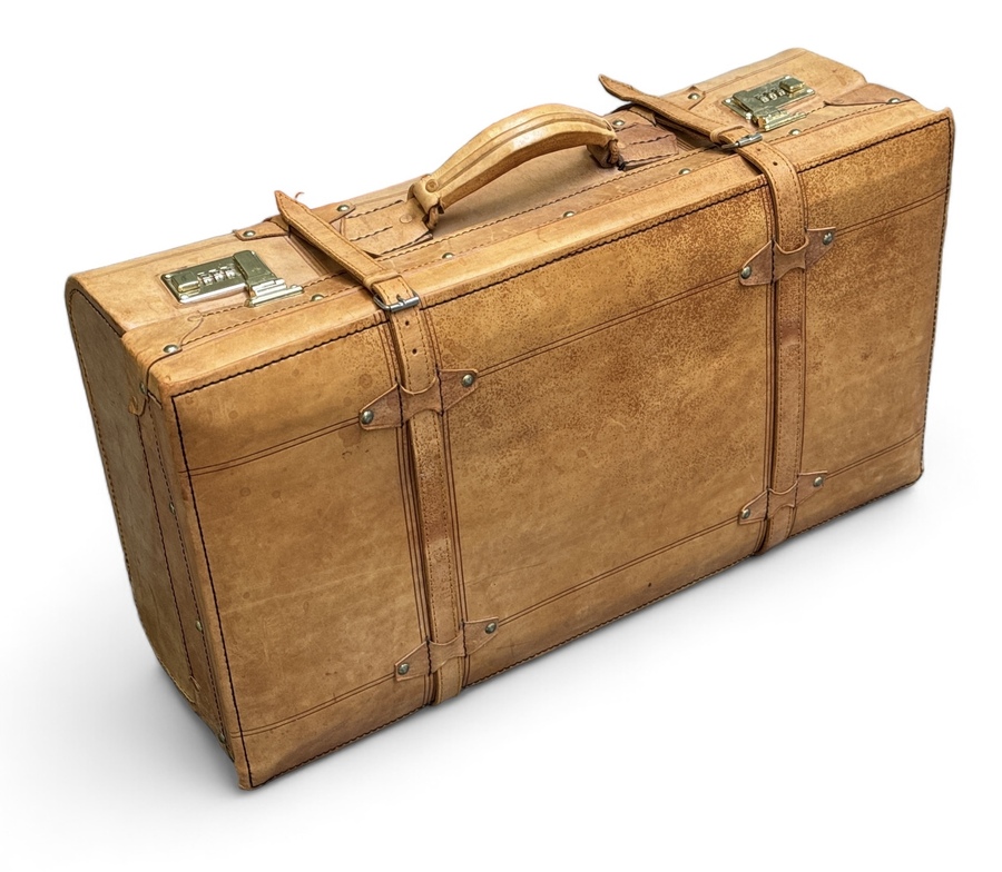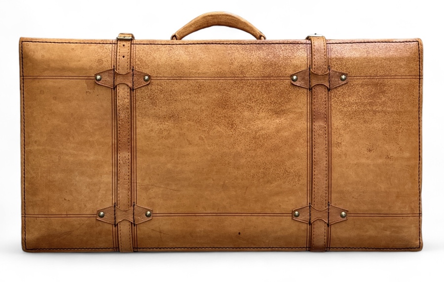 Lederen bagagekoffer met lederen afsluitbanden. Vierde kwart 20e eeuw. |