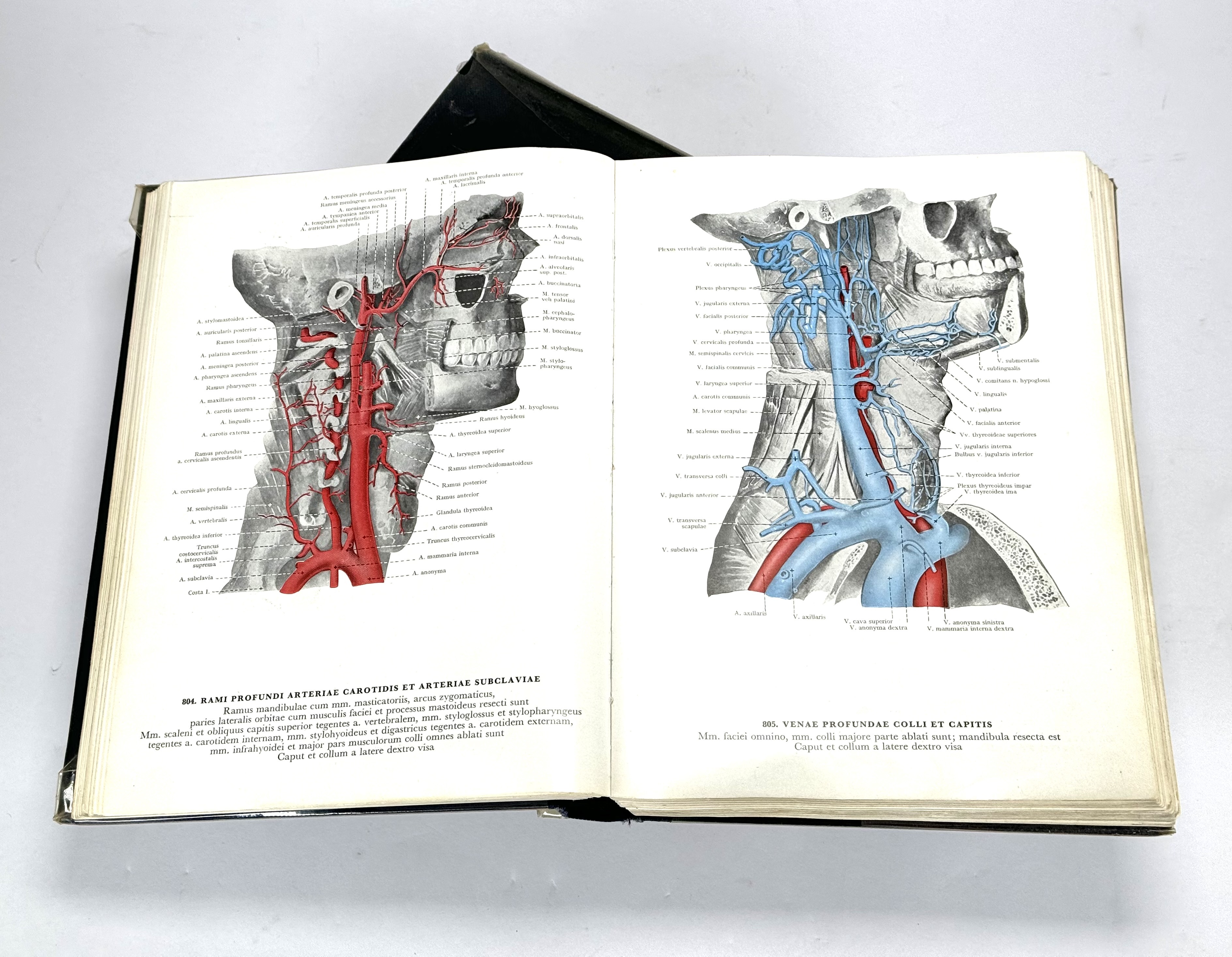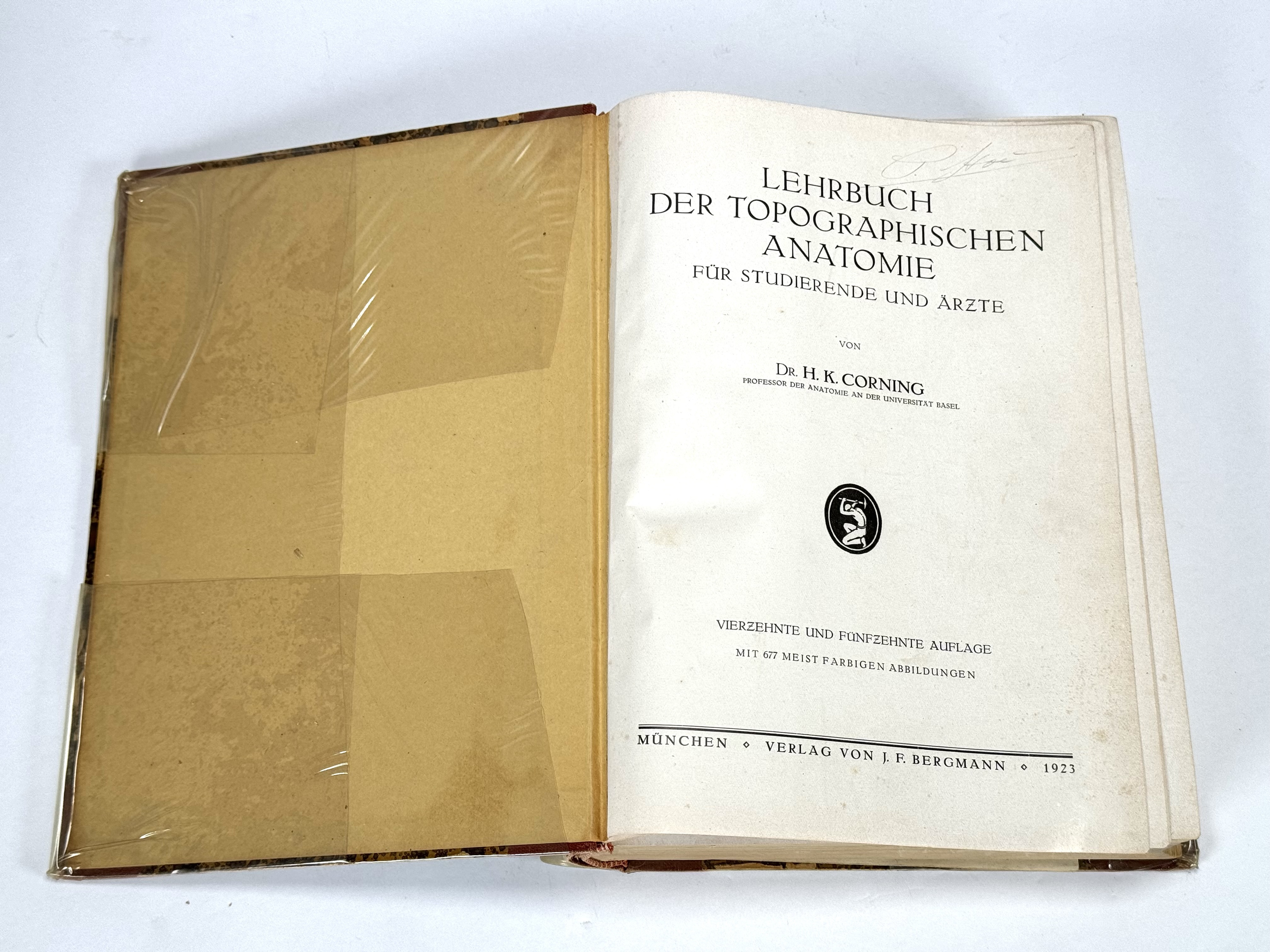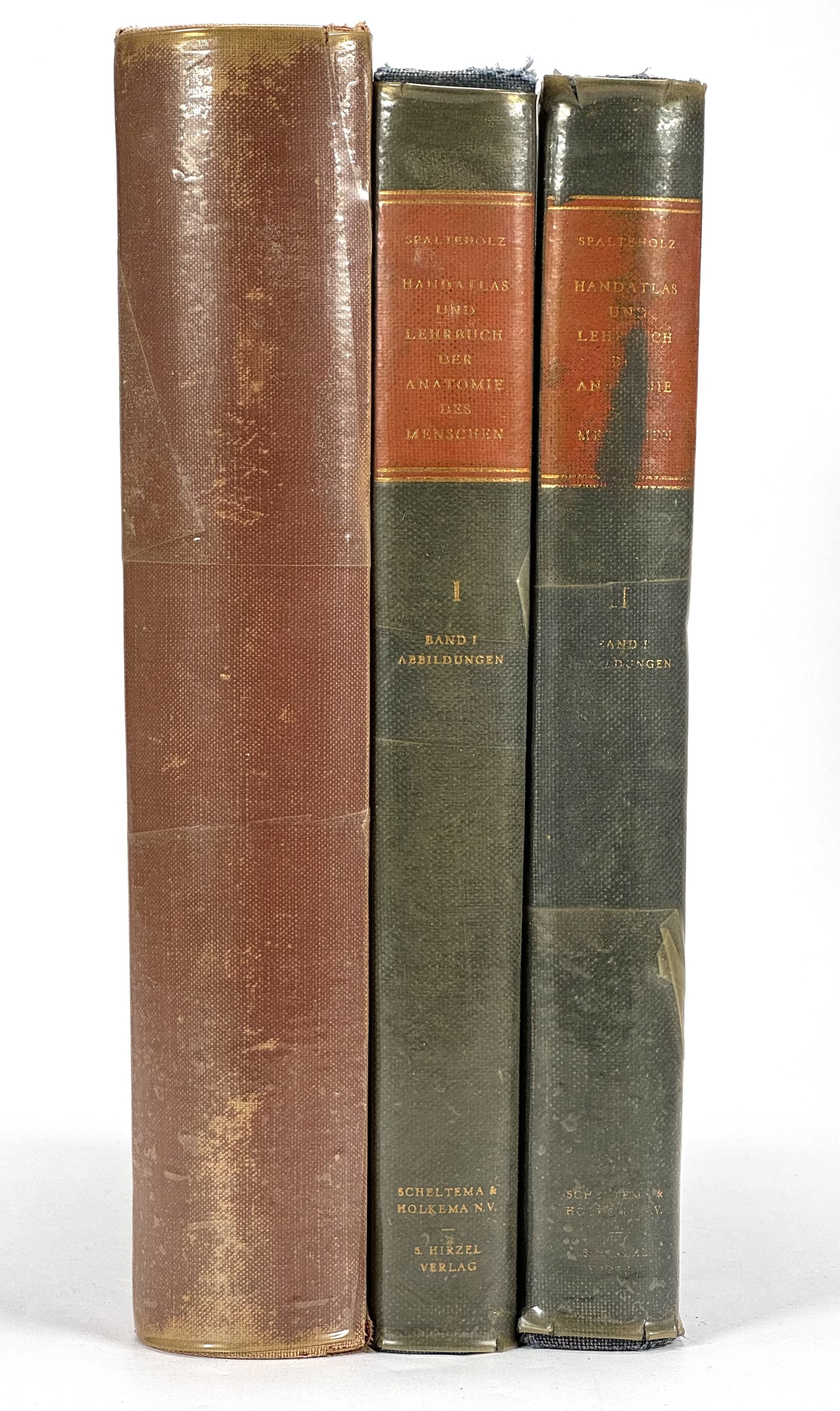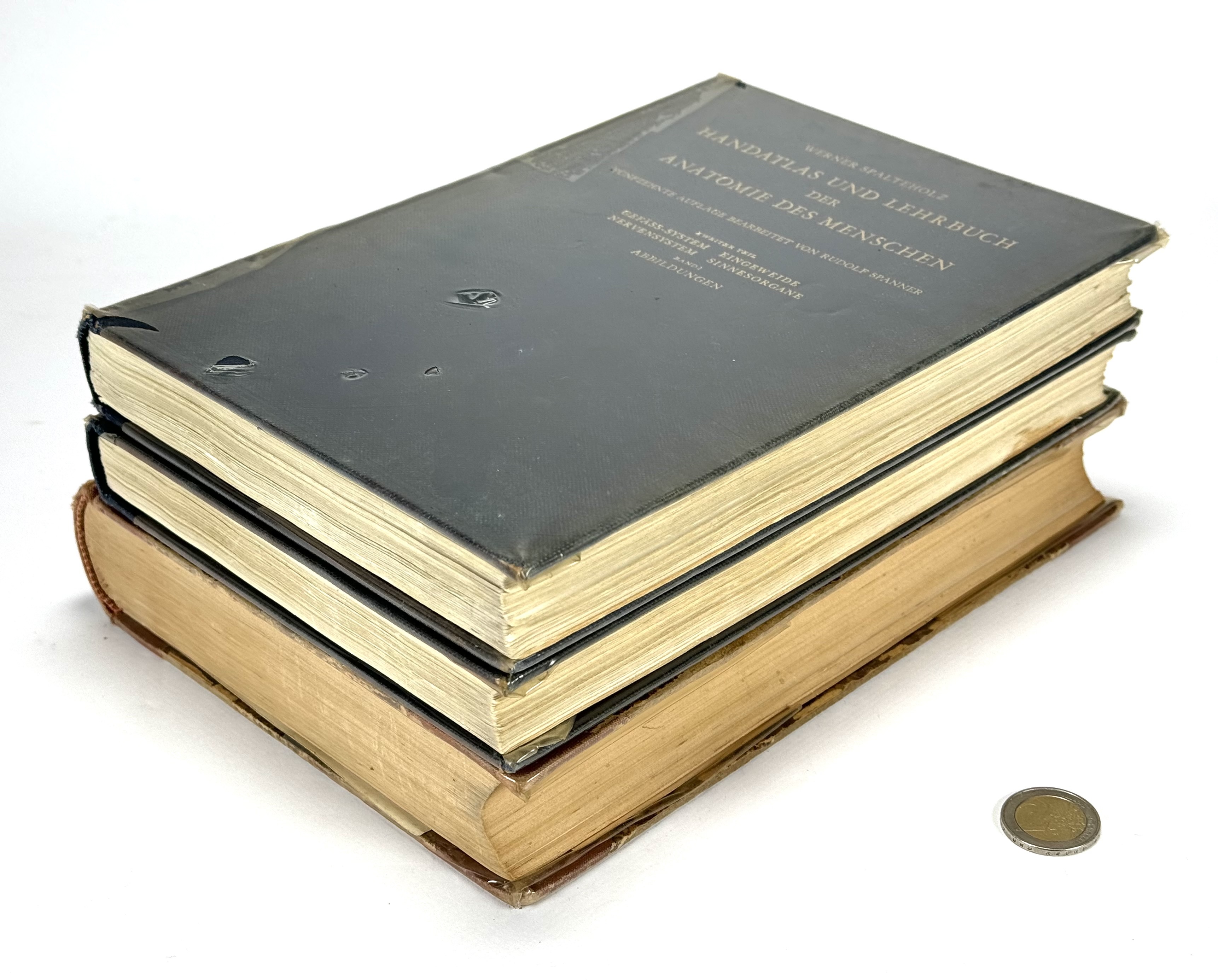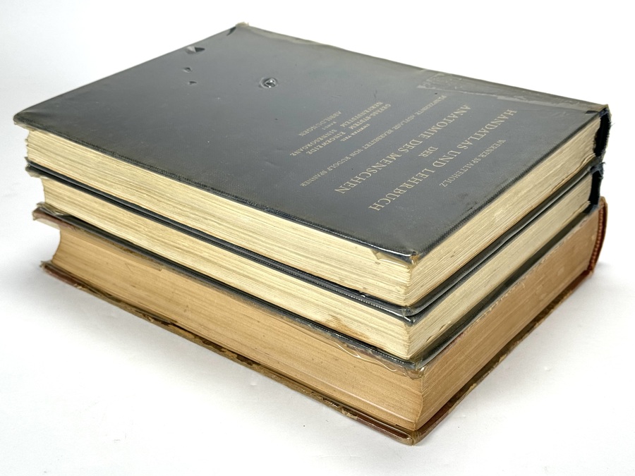 Drie medisch anatomische boeken waaronder Lehrbuch der Topographischen Anatomie uit 1923 en de tweedelige Handatlas und Lehrbuch der Anatomie der Menschen. |