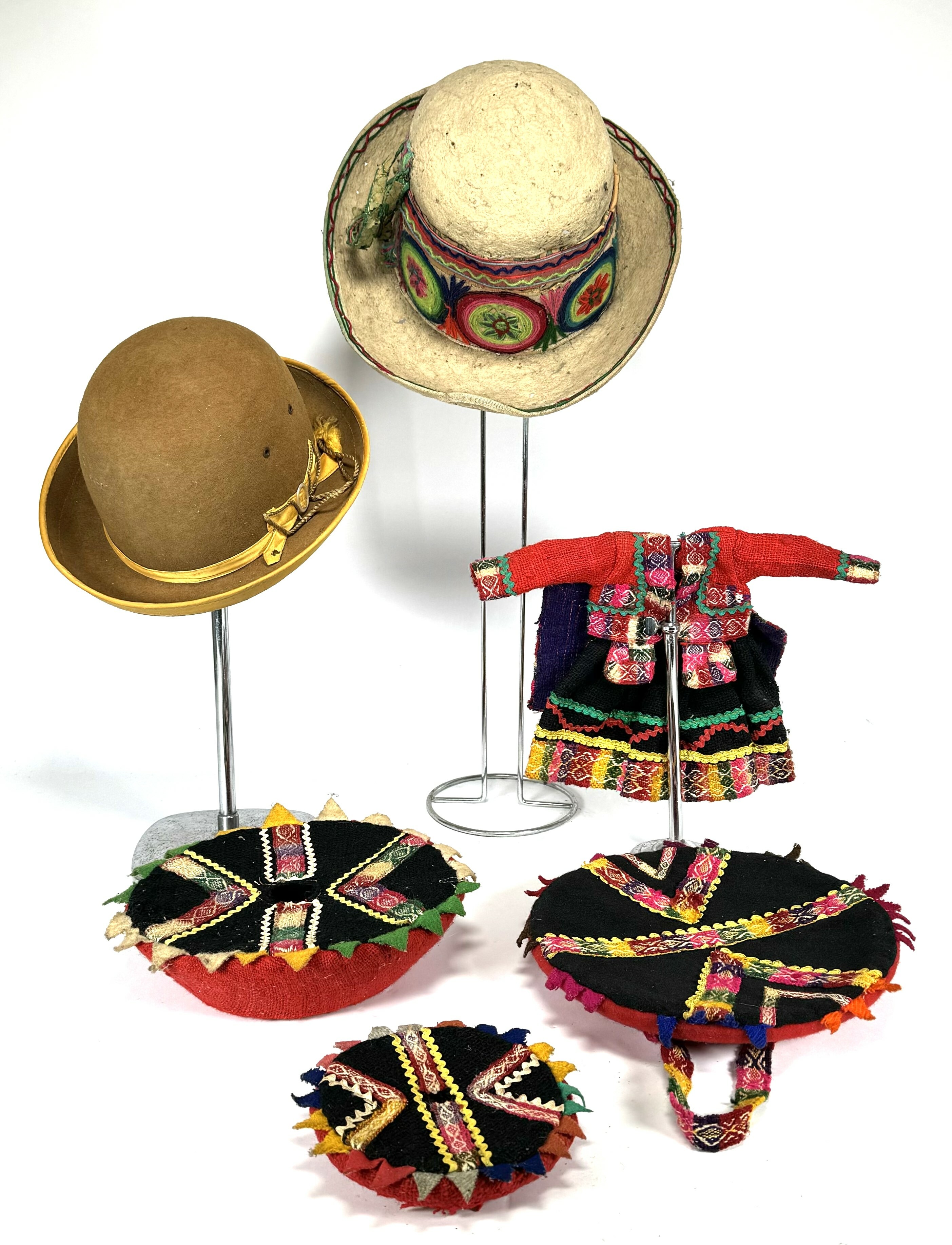 Zes Peruaanse hoeden, 20e eeuw. |