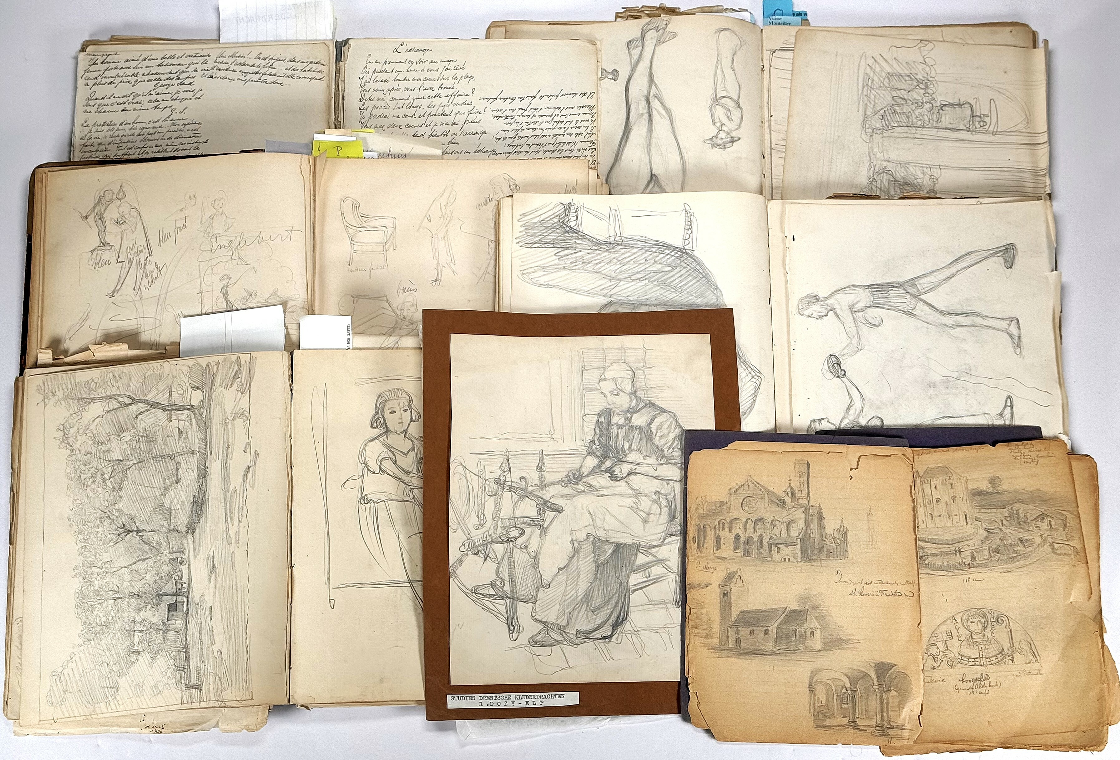 Zeven schetsboeken met potloodtekeningen van de kunstenaar Reinhart Dozy (Nijmegen, 1880 – Elp, 1947). Provenance: collectie zoon van de kunstschilder. |