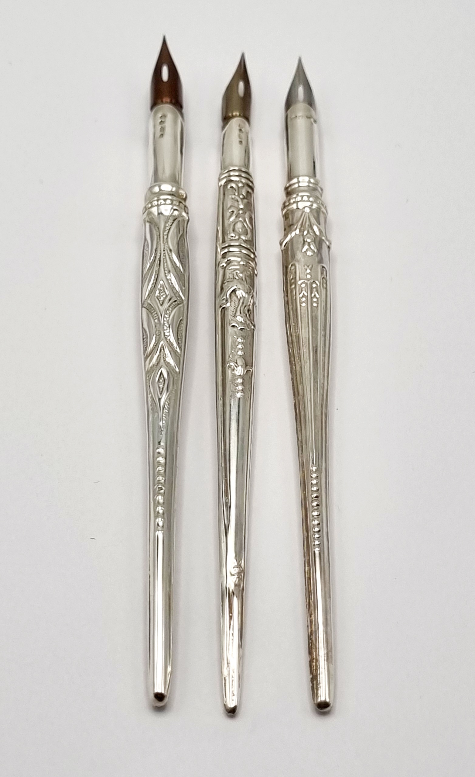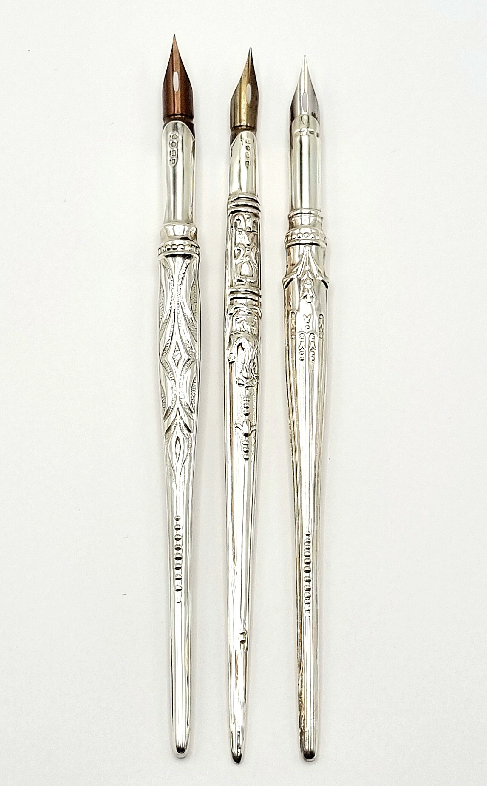 Drie Sterling zilveren kroontjespennen. Gekeurd 925, adelaar en twee overige keuren, omstreeks 1900. |
