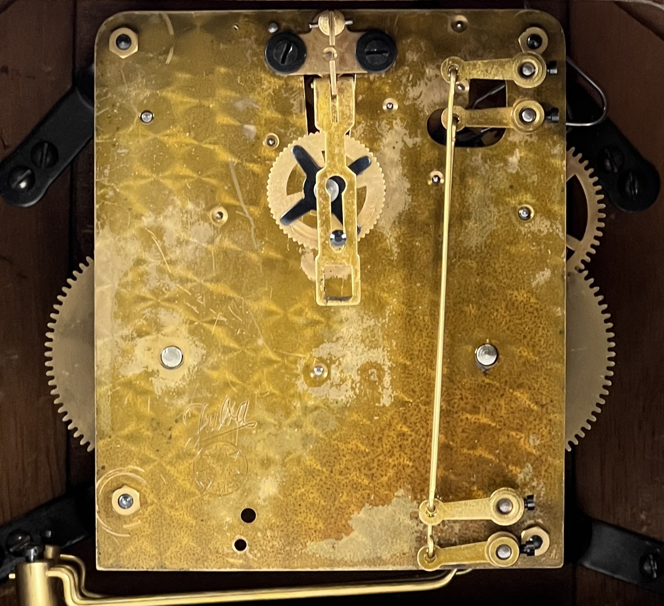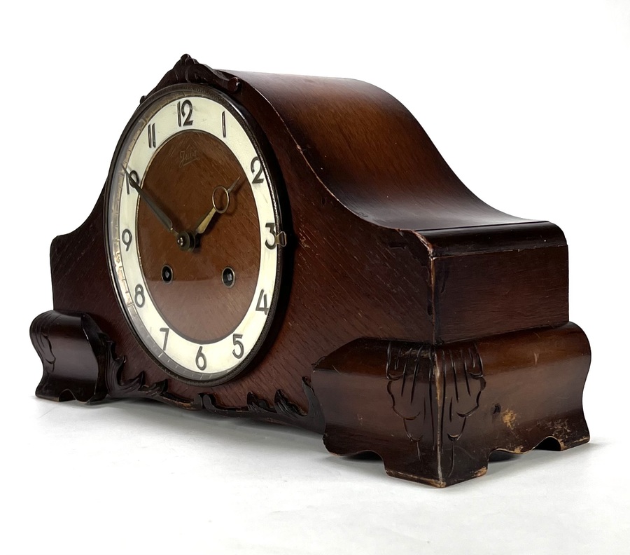 Houten mantelklok van Juba. Made in Germany, jaren 30/40. |