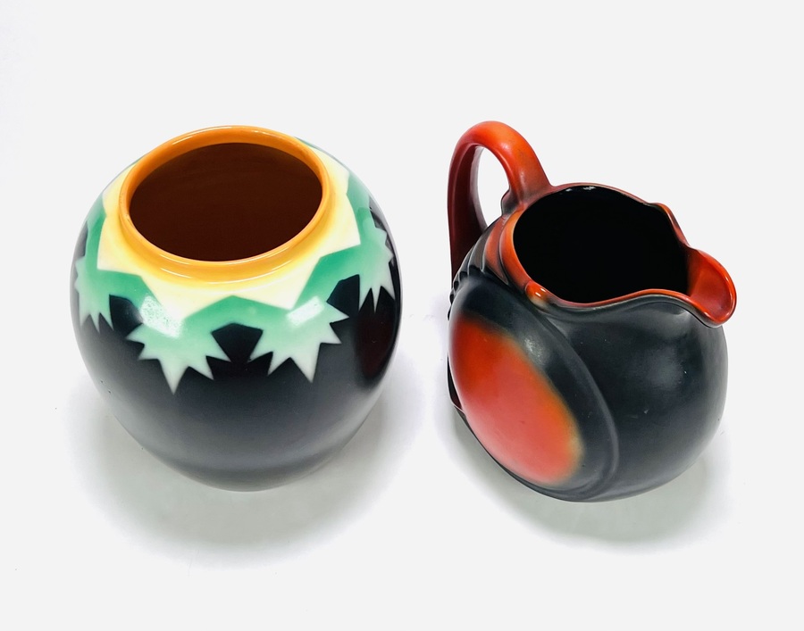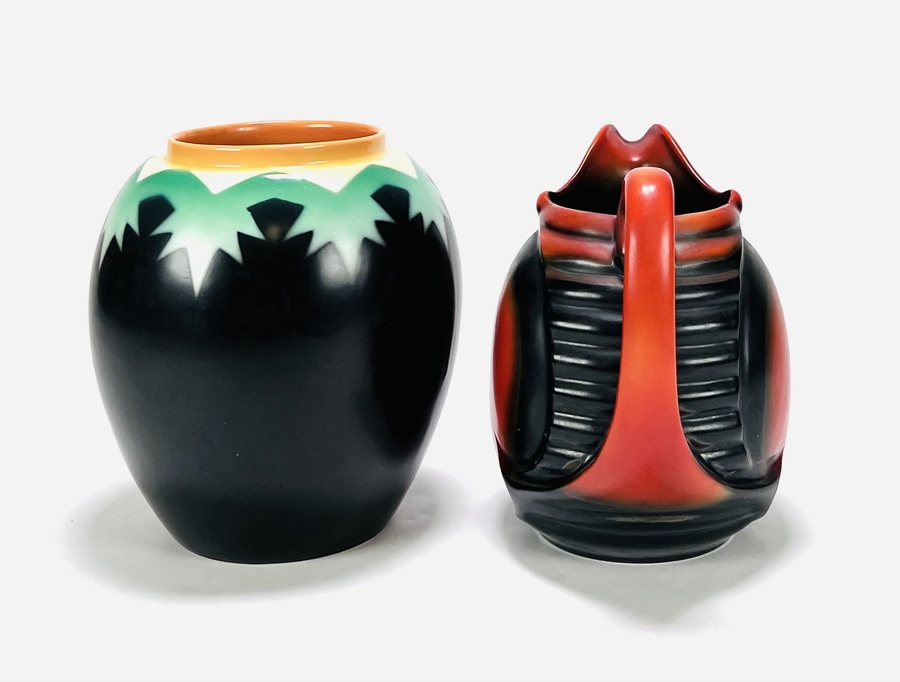 Art Deco keramieken vaas en snavelkan door Mosa, Maastricht. Jaren 30. |
