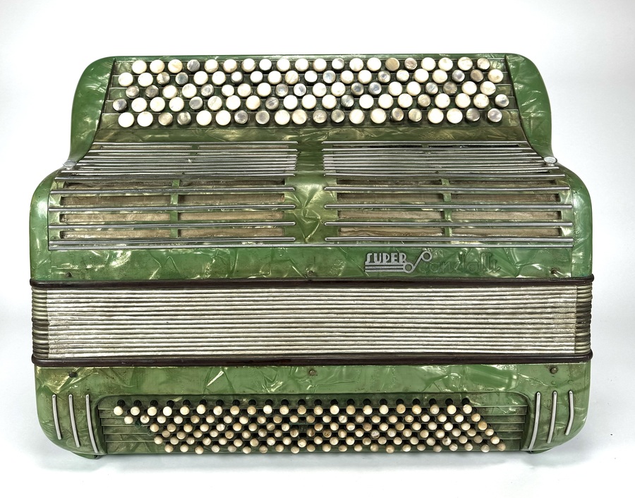 Groene accordeon van Scandalli (132 Bas), type Super. Made in Italy, derde kwart 20e eeuw.