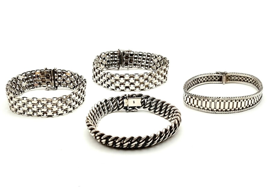 Vier zilveren armbanden, 835 gekeurd, midden 20e eeuw.