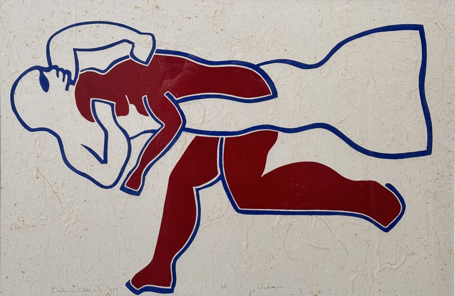 Lepeldruk getiteld “Innerlijke vriend” door Boudewijn Wolthuis (1949), lepeldruk techniek op rijstpapier. Linksonder gesigneerd en gedateerd 1989. Verso informatie.
