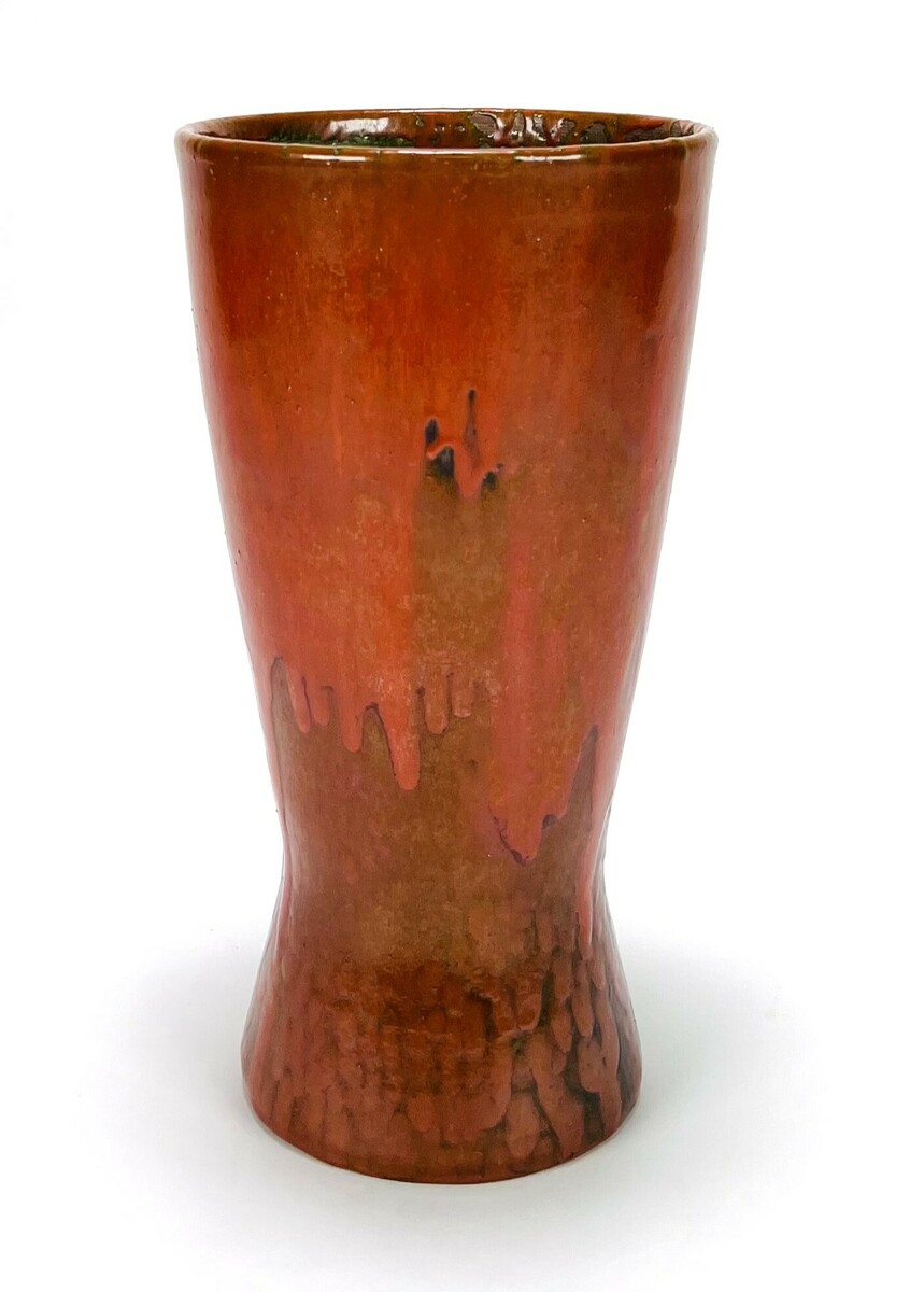 Keramieken roestbruine vaas uitgevoerd in druipglazuur door Meyer Groningen, de voorganger van ADCO Groningen. Aan de onderzijde gemerkt, jaren 20/30.