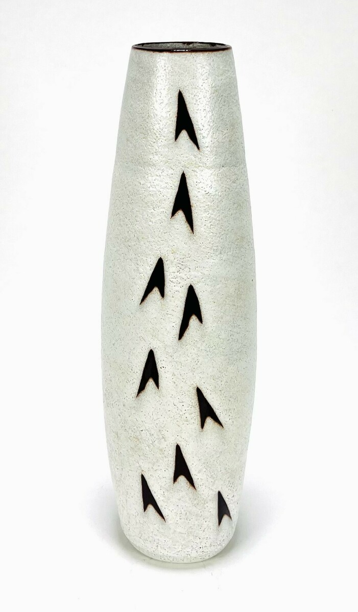 Aardewerken crème geglazuurde vaas met bruine elementen door Jaap Ravelli, Potterie Ravelli, Valkenburg. Aan de onderzijde gemerkt en vermelding van modelnummer 4, derde kwart 20e eeuw.
