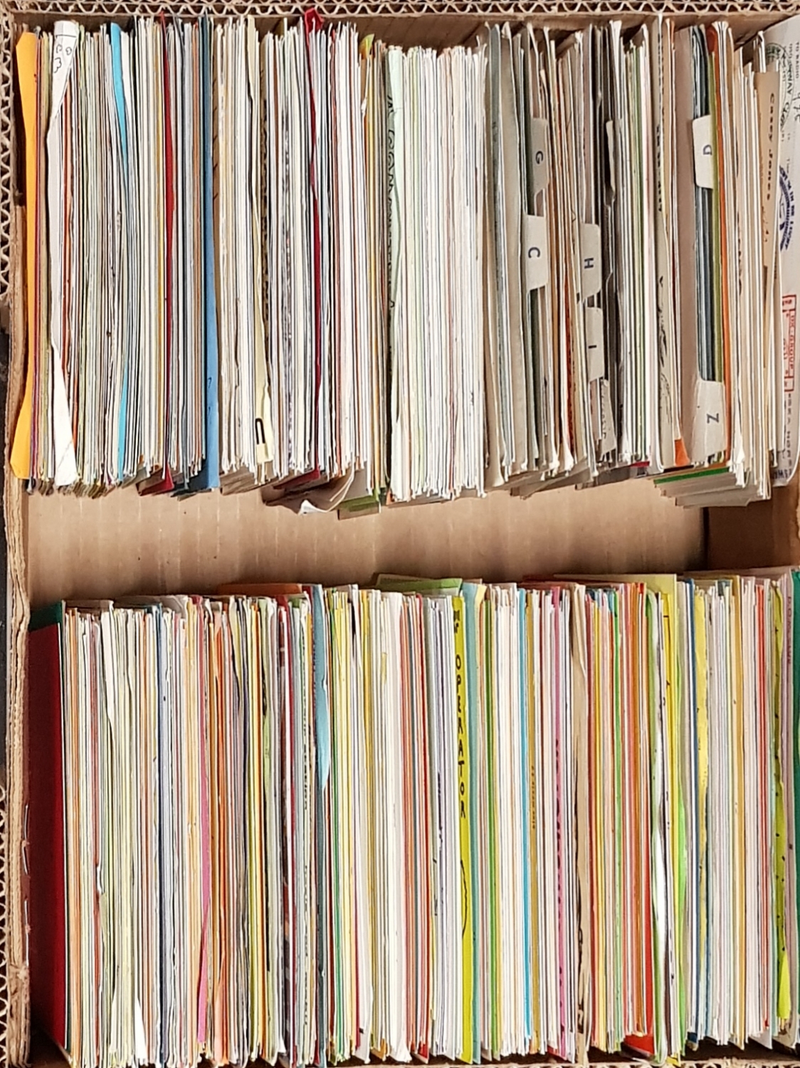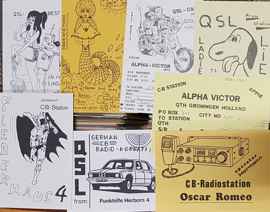 Lot met ongeveer negenhonderd verschillende QSL kaarten, briefkaarten van 14 x 9 cm die gebruikt werden door zendamateurs als schriftelijk bewijs dat een bepaalde verbinding heeft plaatsgevonden tussen twee stations. Grotendeels Nederlands met aanvullingen uit de VS, Canada, Mexico, België, Noorwegen en Denemarken. |