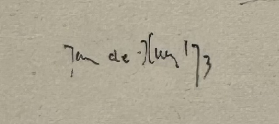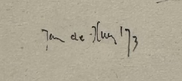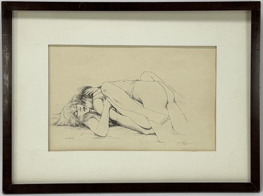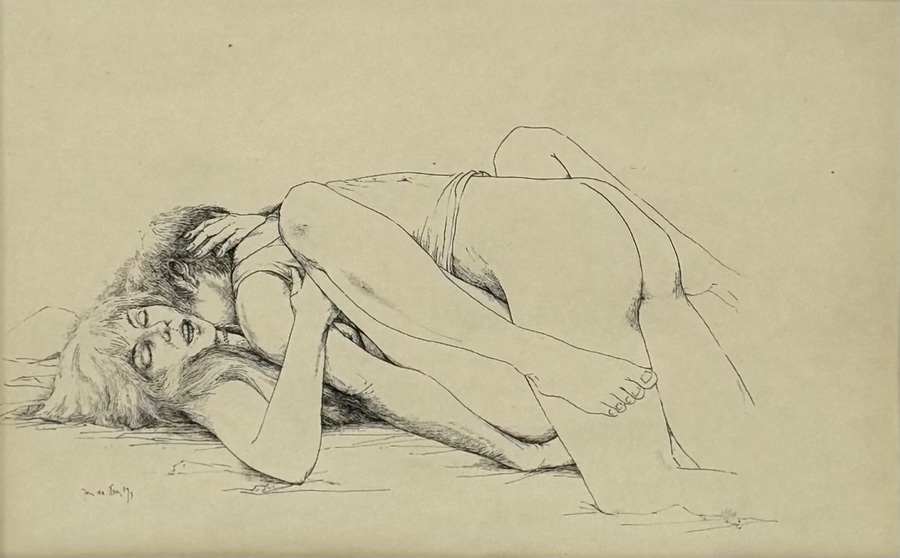 Potloodtekening van een minnekozend stel, linksonder gesigneerd J. de Haas en gedateerd '73. |
