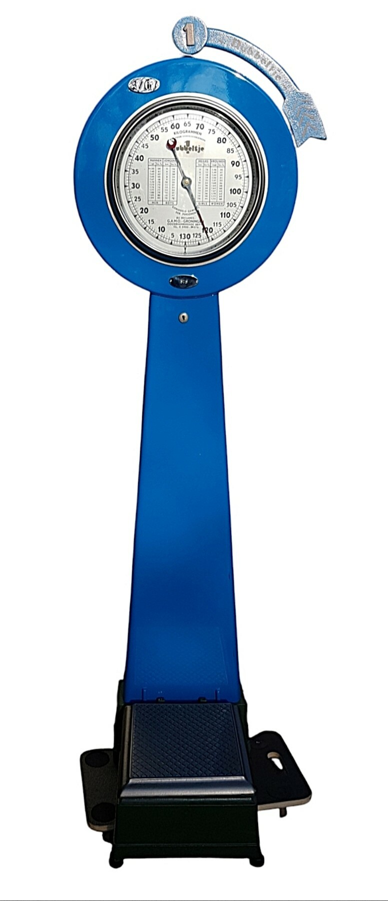 Dubbeltjes weegschaal van G.A.M.O. aan de Oosterhamrikkade II + IIa in Groningen, inclusief een aantal dubbeltjes. Hydraulische olie moet worden bijgevuld. 2e helft 20ste eeuw. |