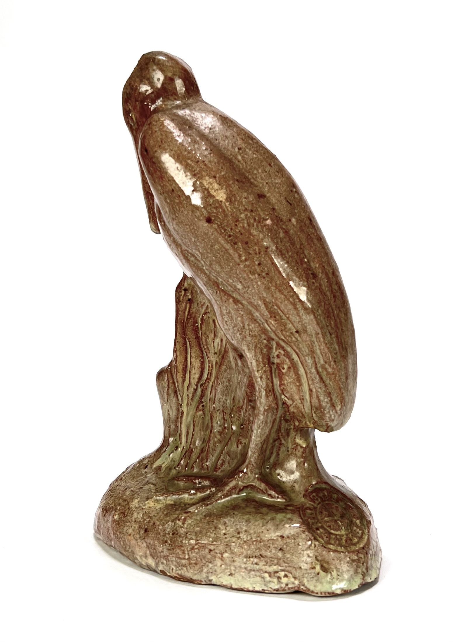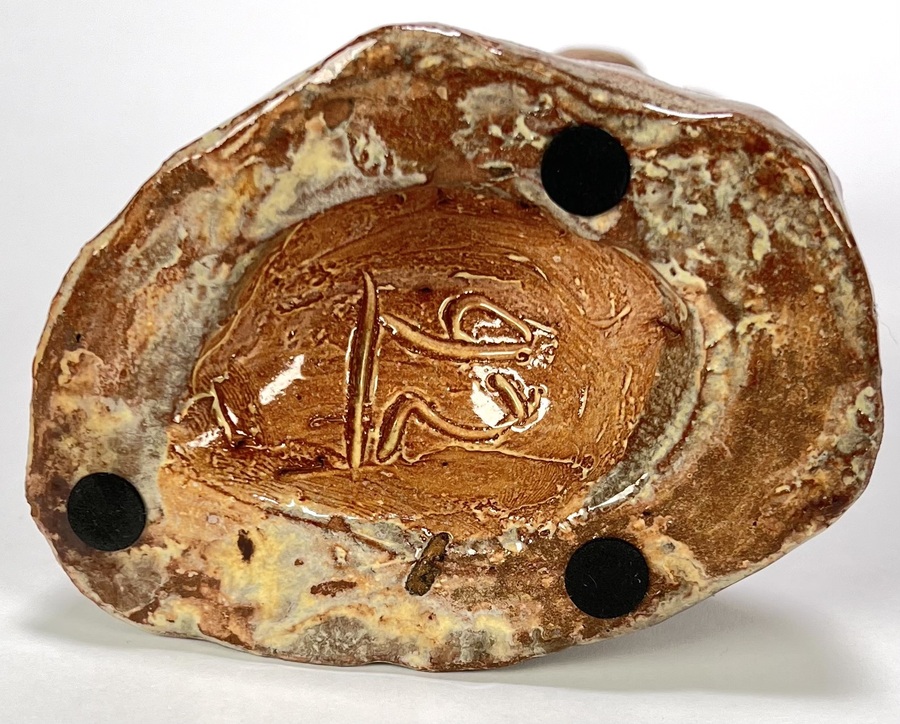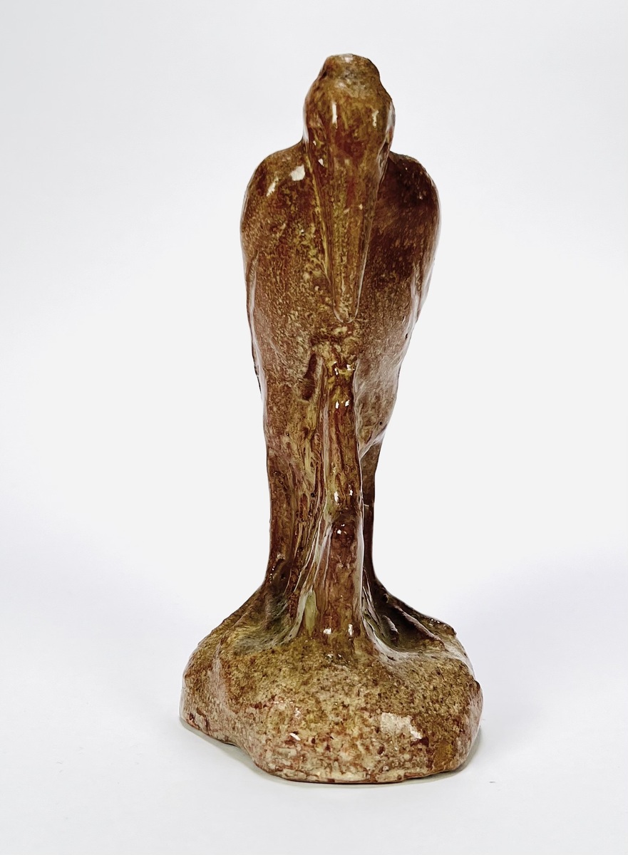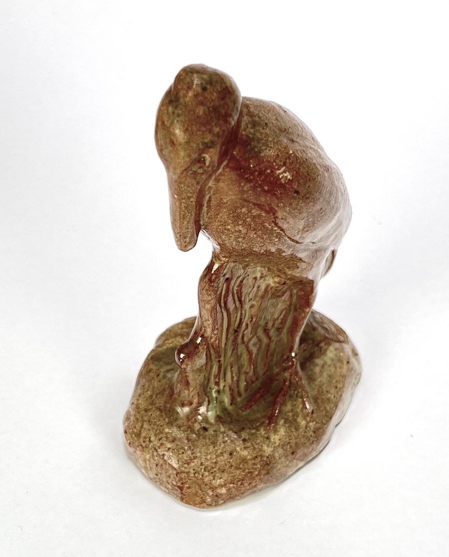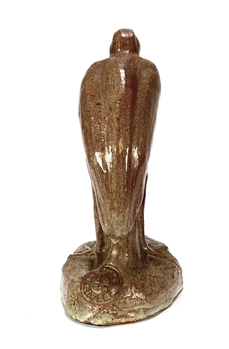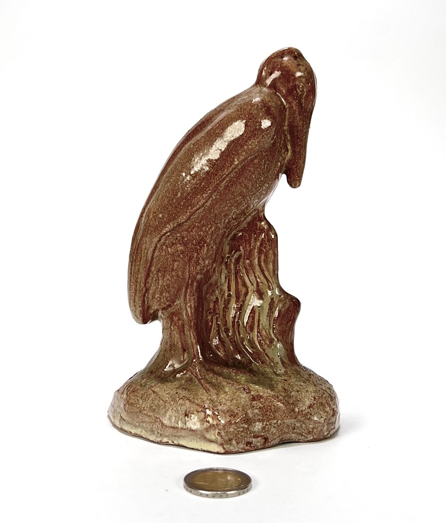 Art Deco aardewerken geglazuurd beeld van een maraboe door Petri Tegelen. Aan de achterzijde gemerkt met stempel en aan de onderzijde vermelding modelnummer 92, gefabriceerd tussen 1942 en 1948. |
