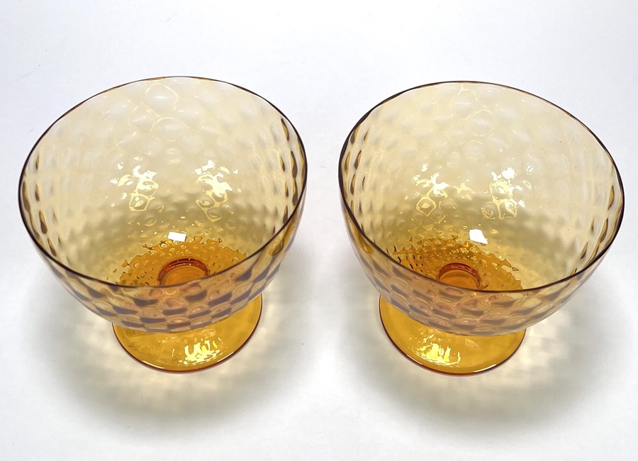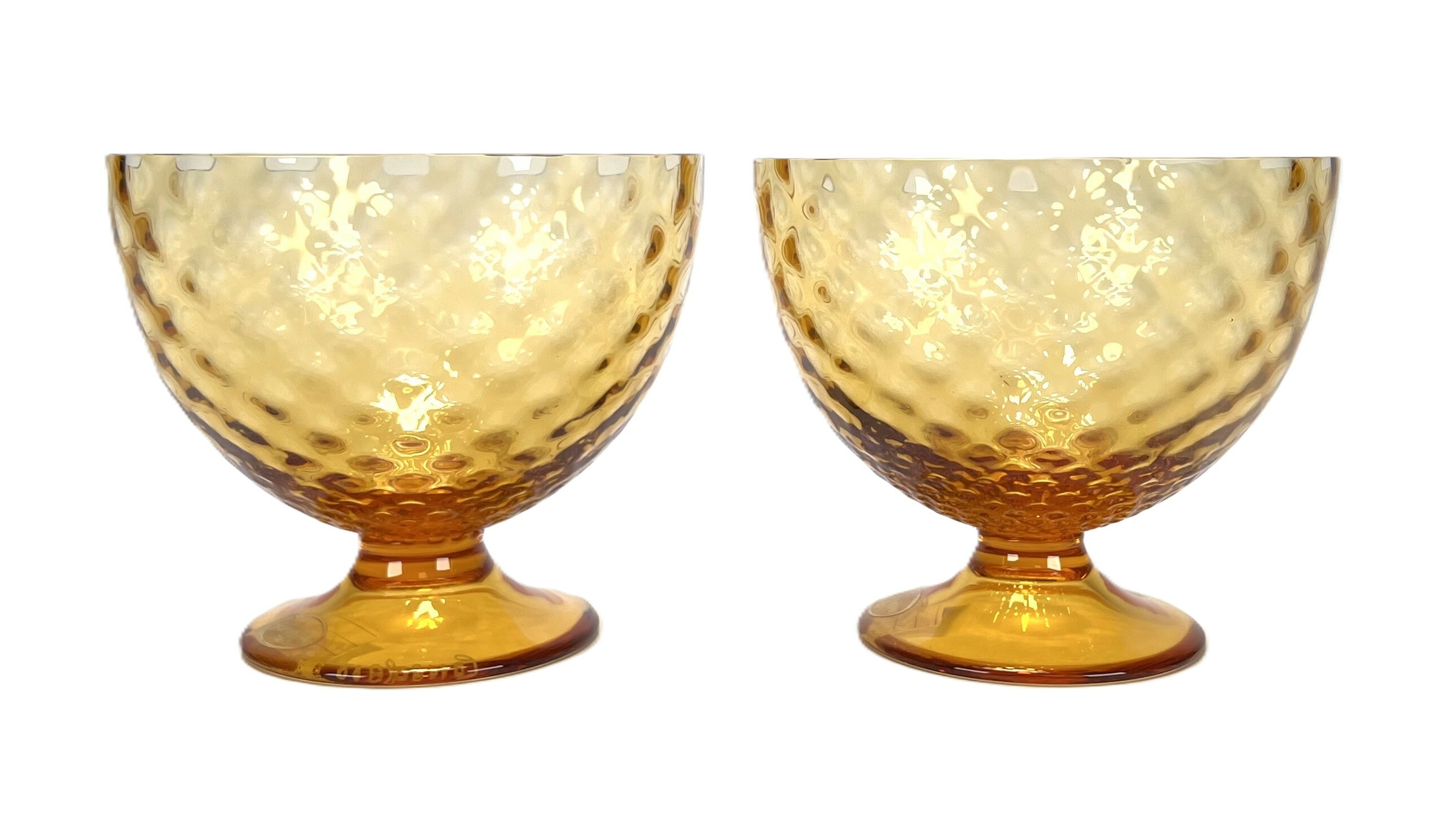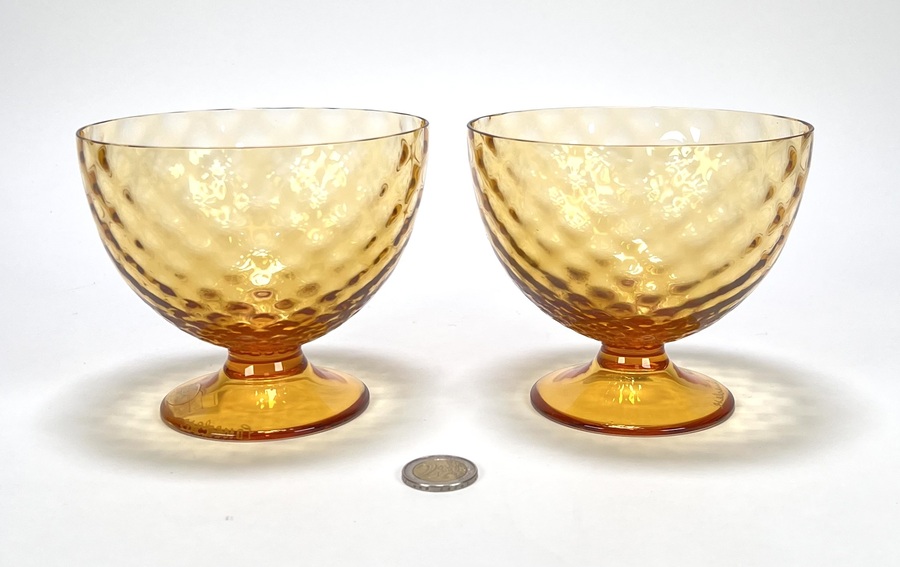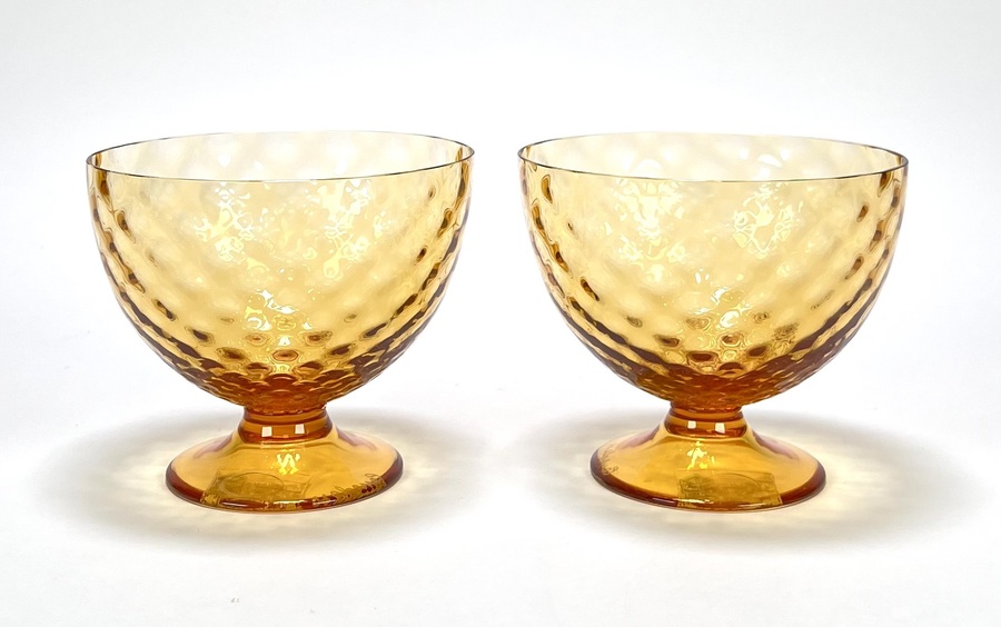 Twee amberkleurige Murano mondgeblazen coupes van Gino Cenedese. Venetië, omstreeks 1985. |