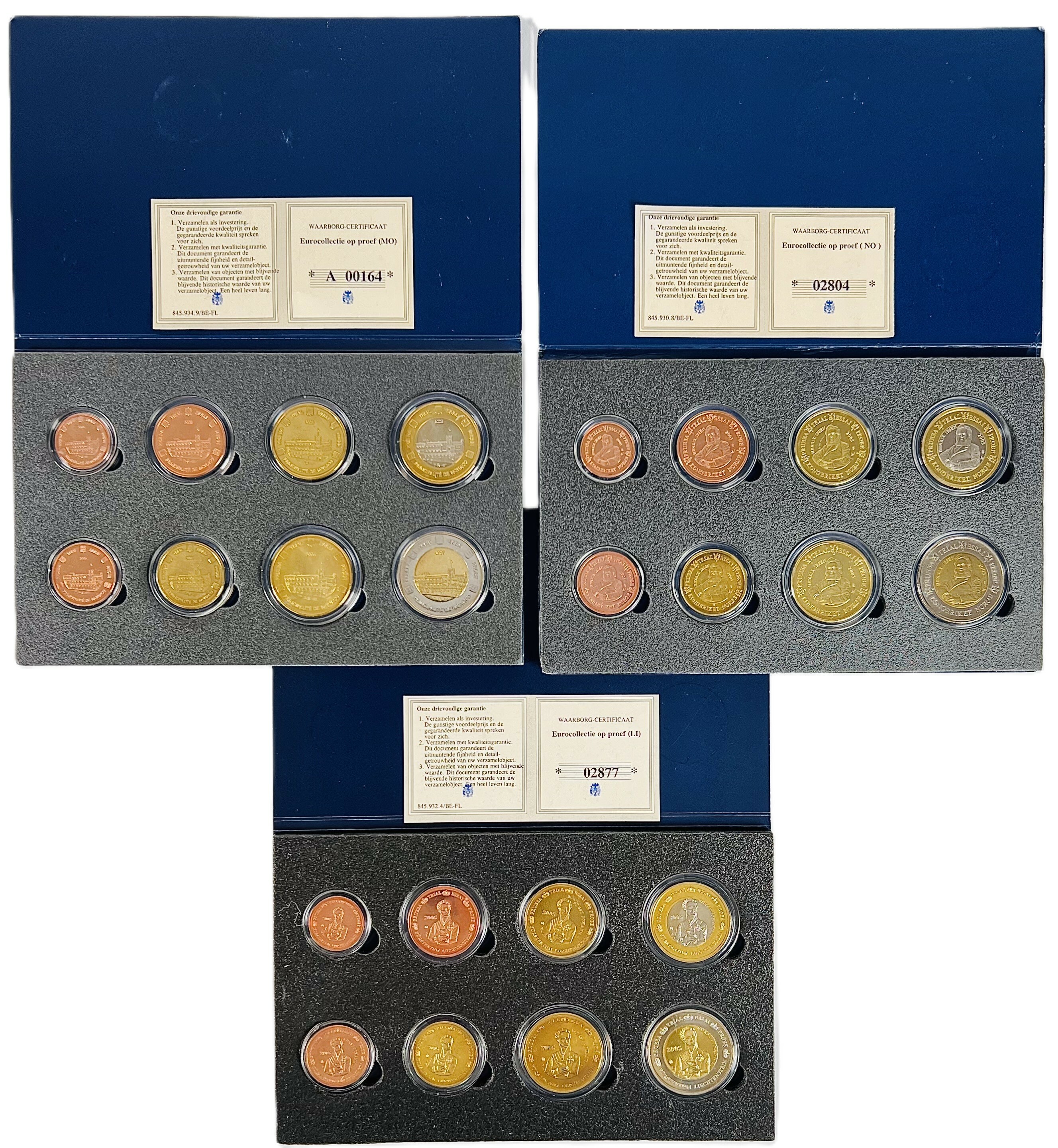 Lot drie verschillende euromuntensets uit Noorwegen, Monaco en Liechtenstein, begin 21e eeuw. |