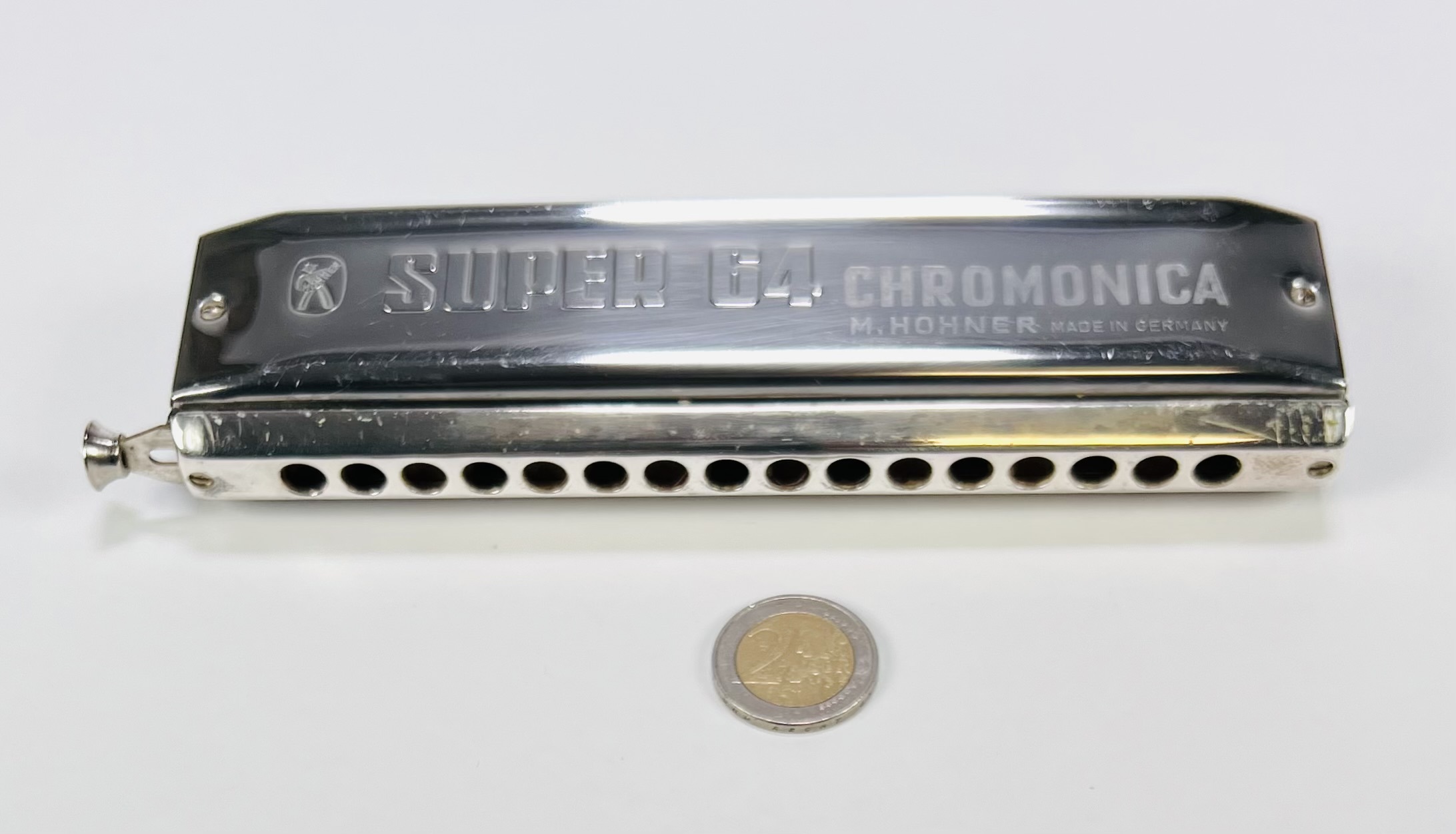 Hohner mondharmonica, modelnummer Super 64 Chromonica in originele etui. 21e eeuw. |