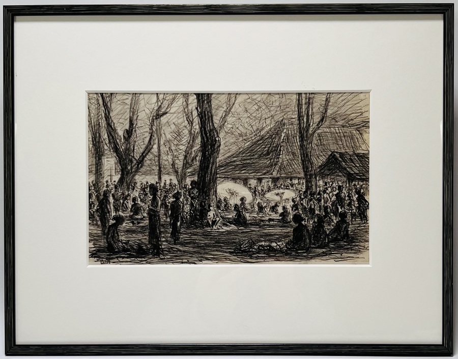 Potloodtekening getiteld “Pasar Magelang, Java” door Gijsbert Brand Hooyer (1848-1934). Potlood op papier, linksonder gemonogrammeerd GBH. Indonesië, begin 1900. |