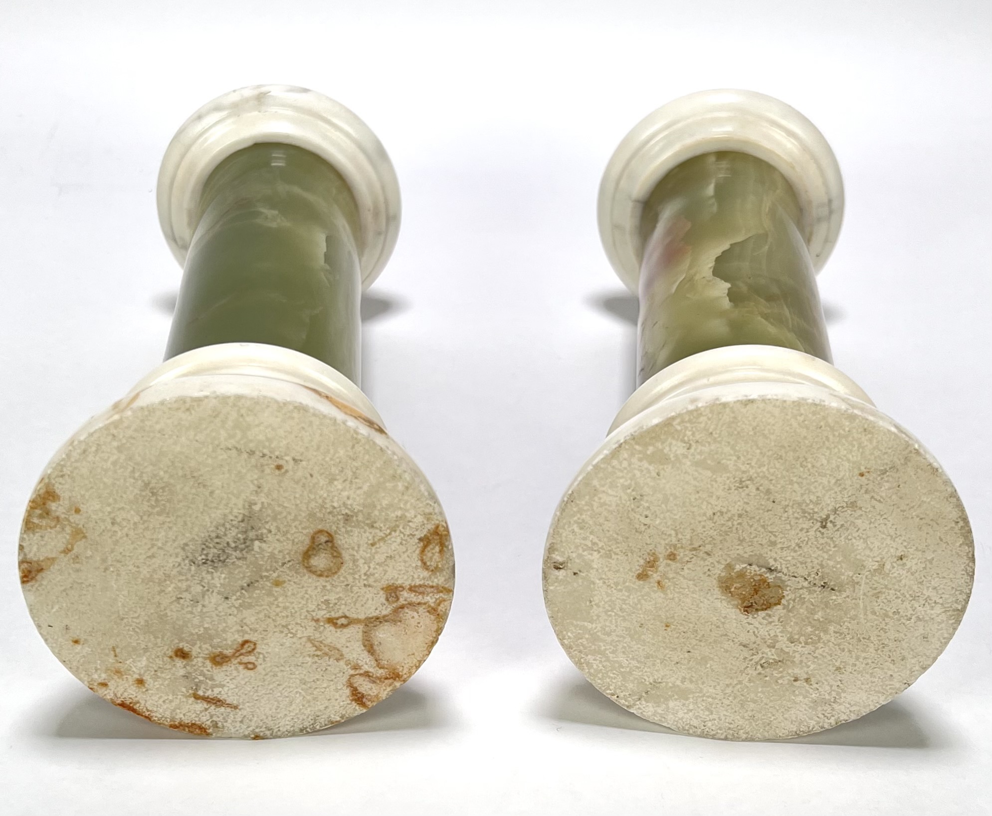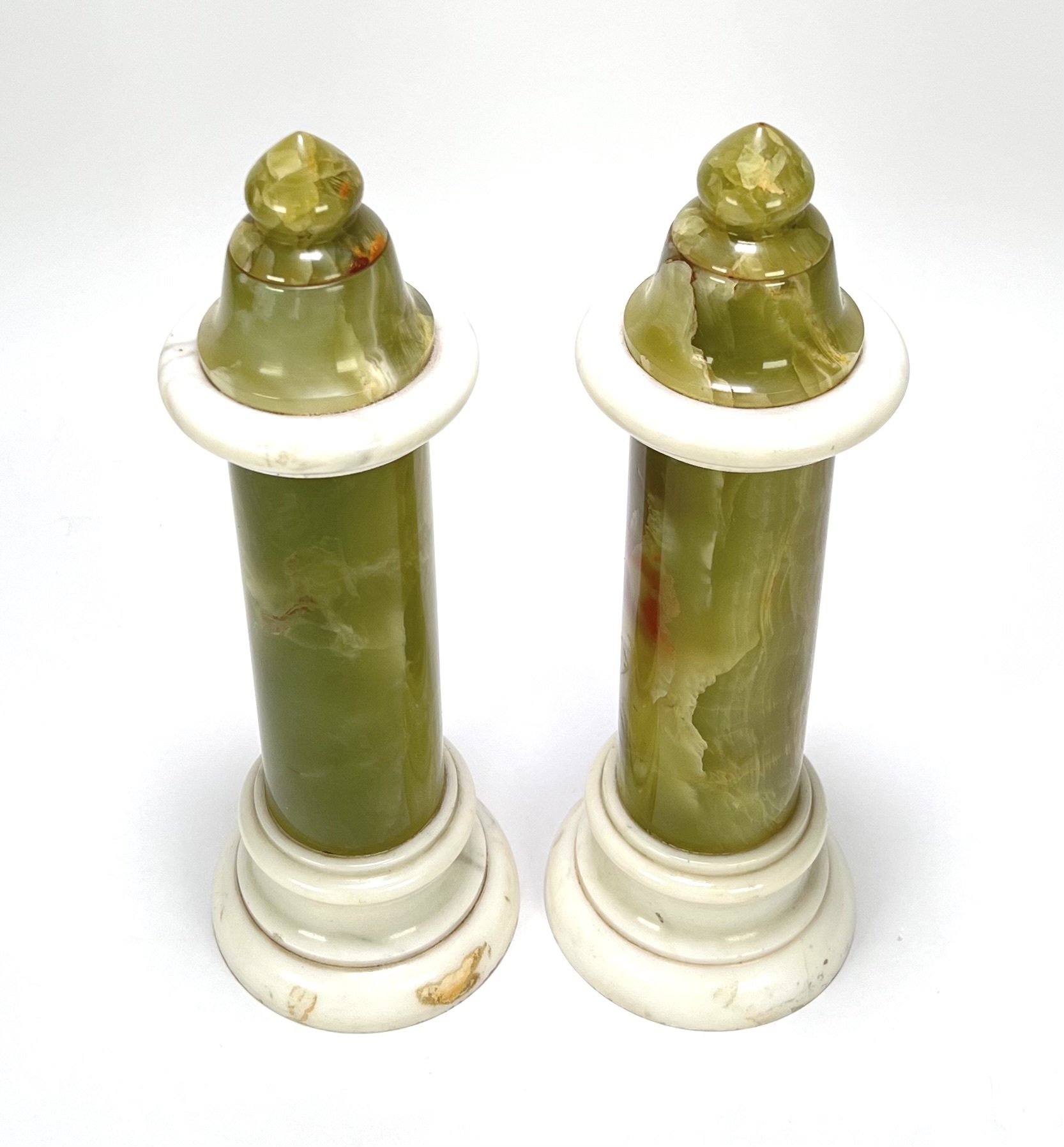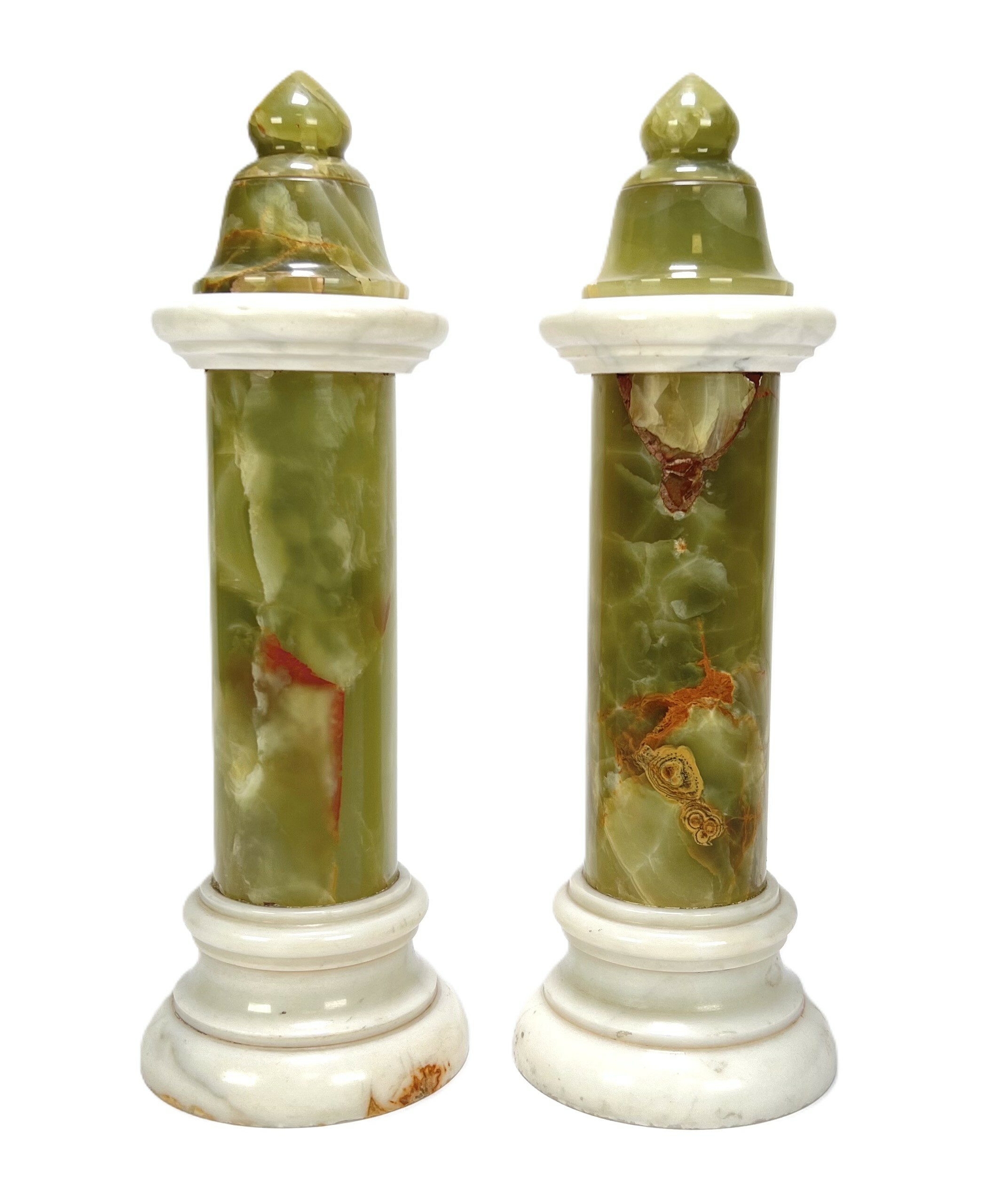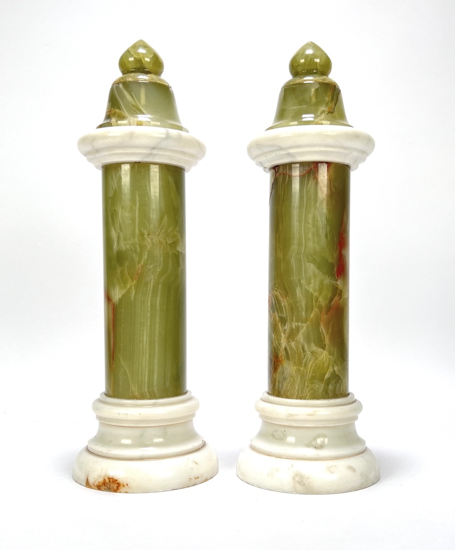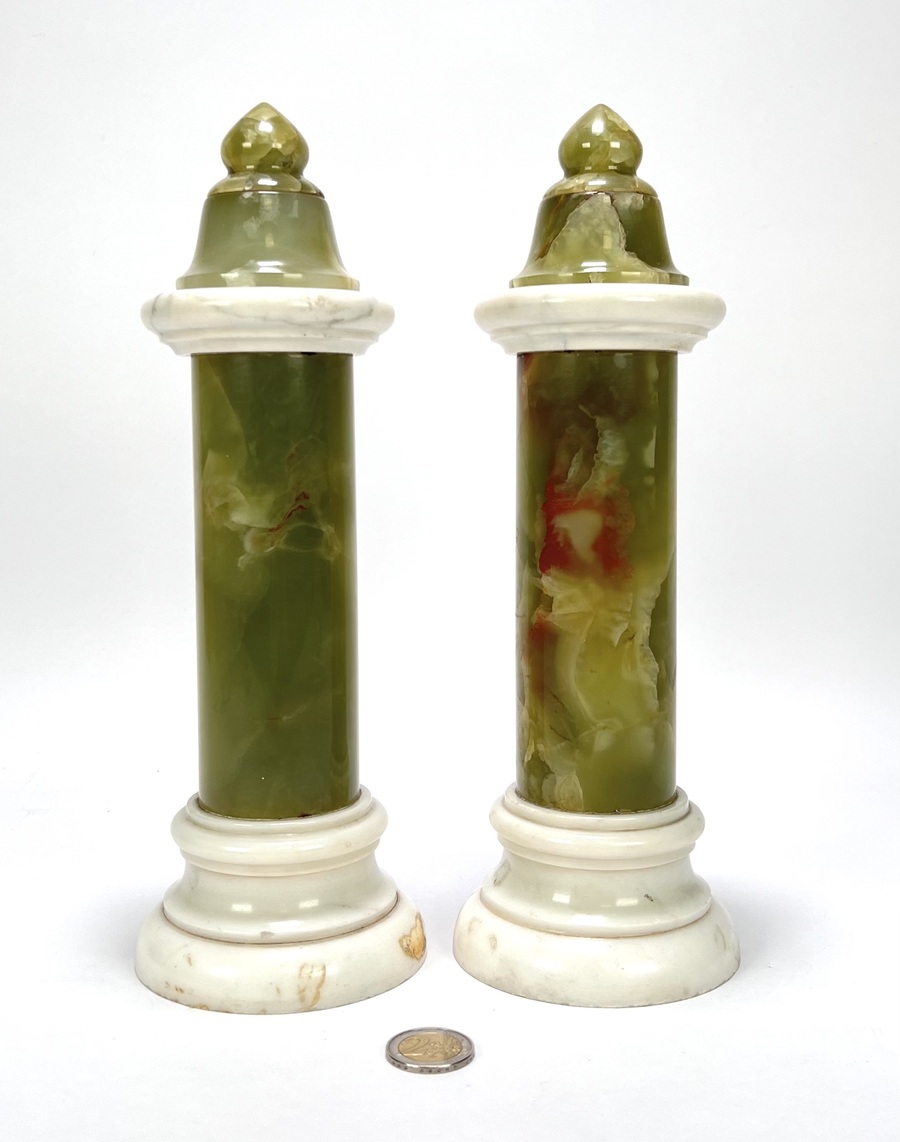 Twee onyx en Carrara marmeren pilaren, schouwstukken. 19e eeuw. |