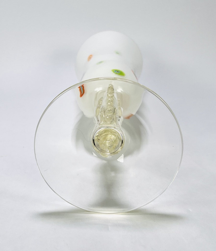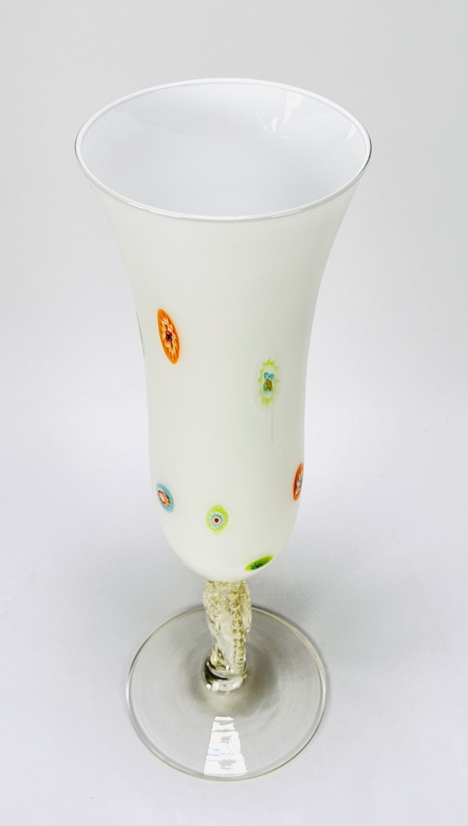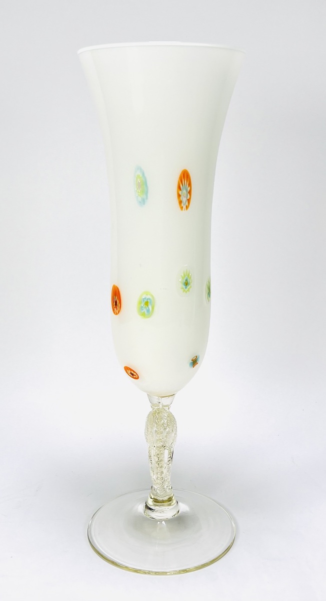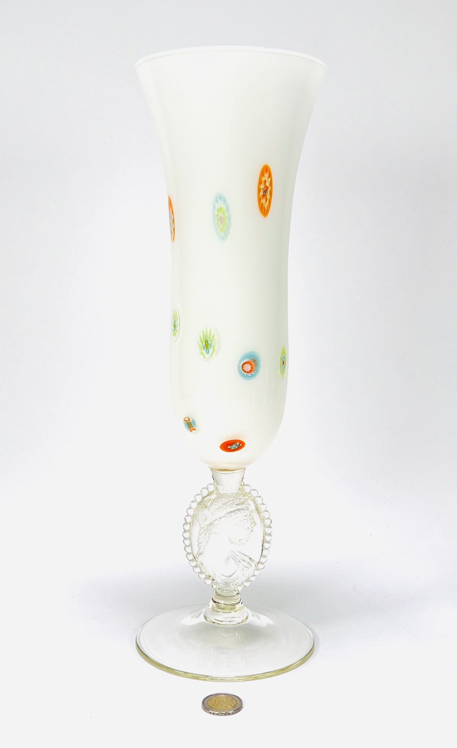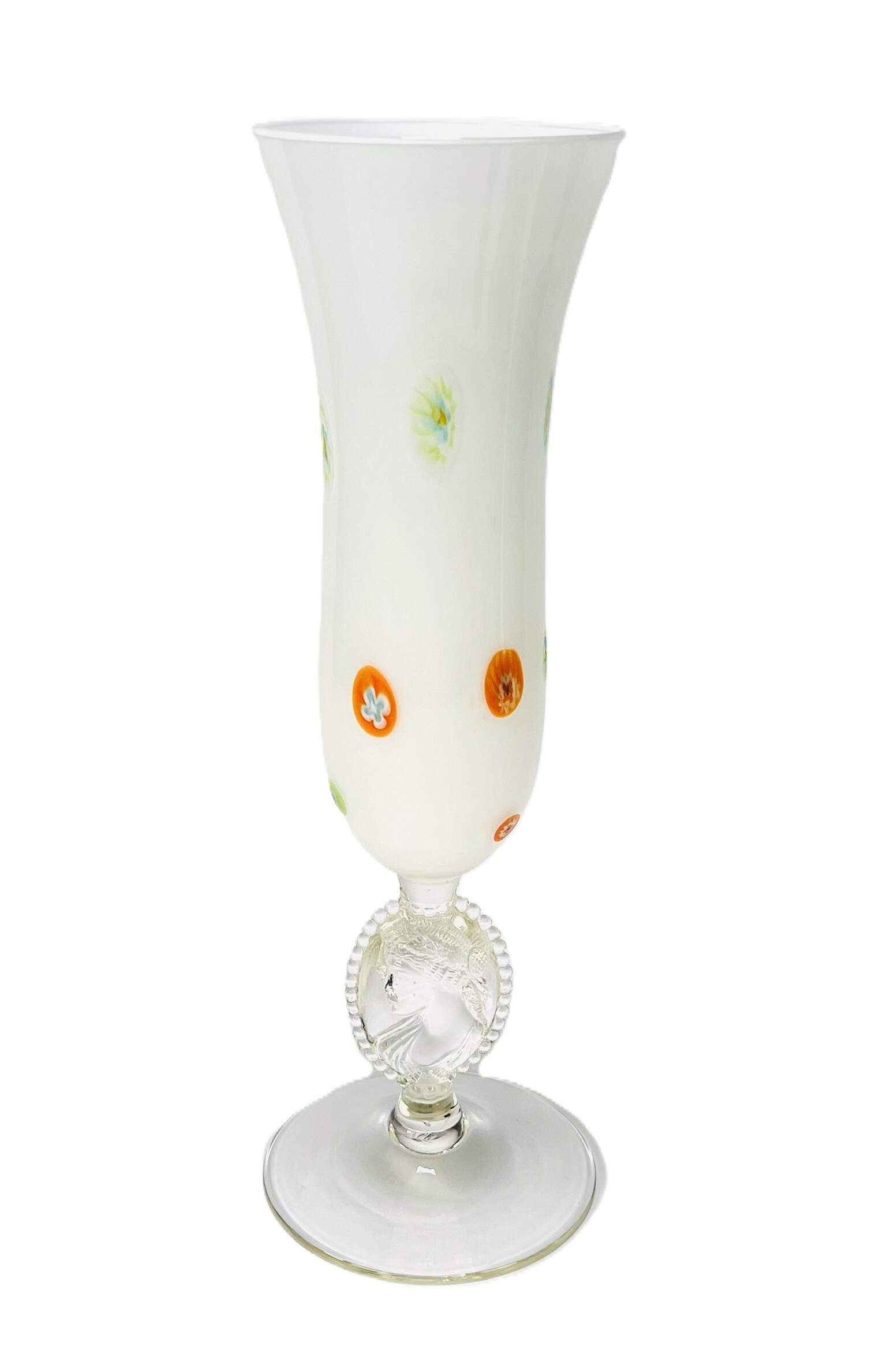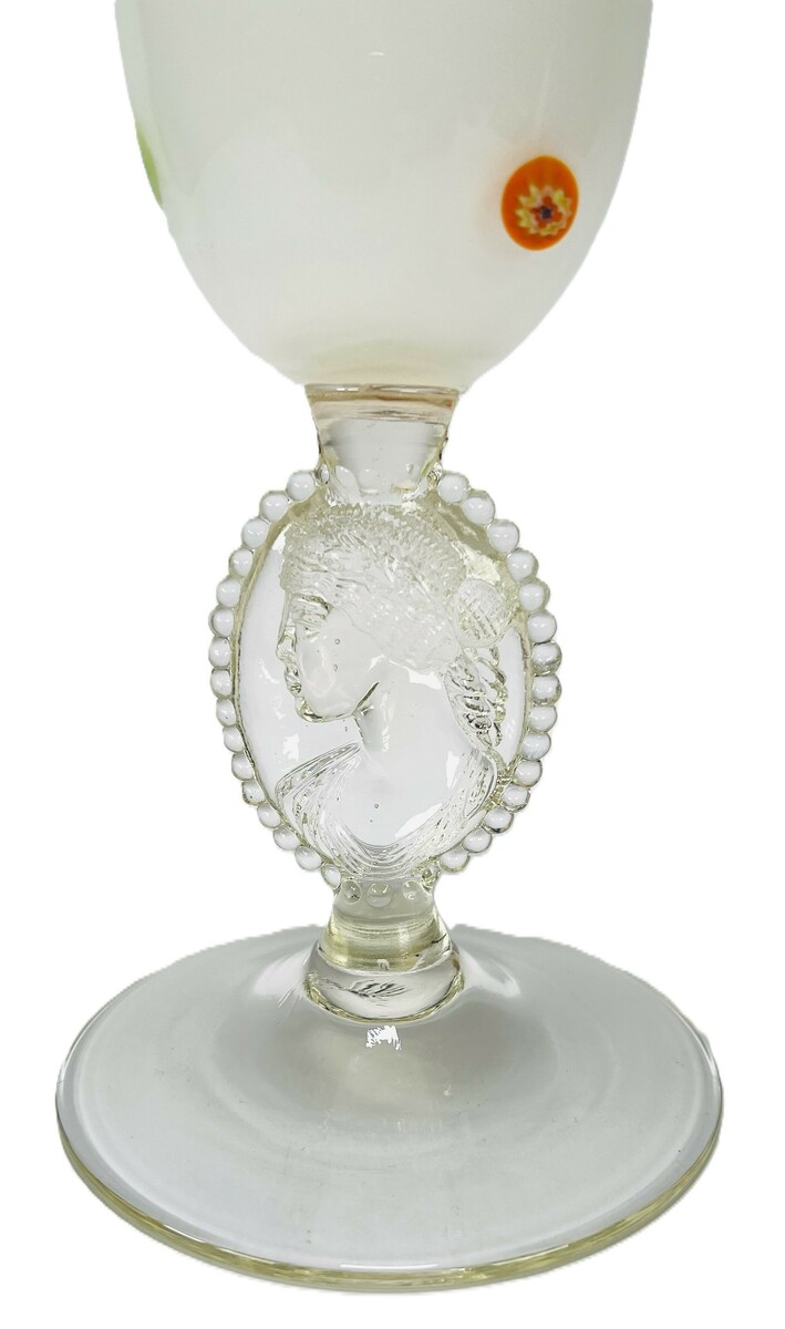 Bloemenvaas in Art Nouveau stijl, melkglas met reliëf voorstelling. Vermoedelijk Bohemen, Tsjechië, 20e eeuw. |