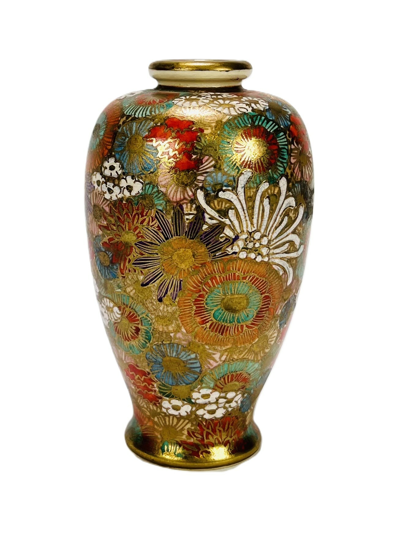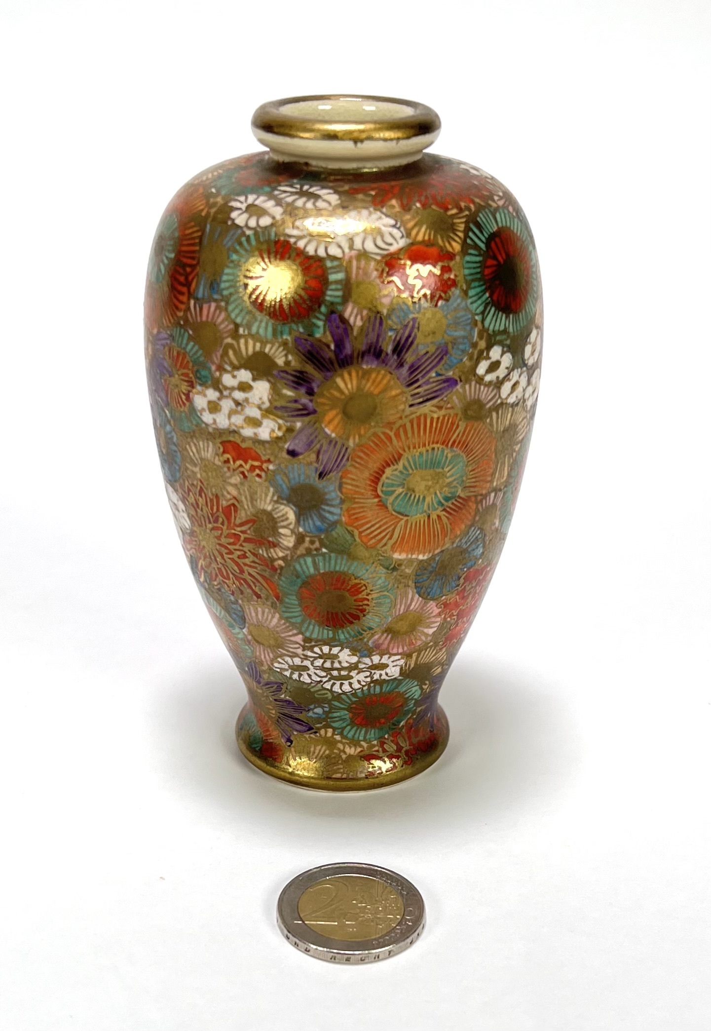Japanse porseleinen Satsuma vaas met floraal decor. Aan de onderzijde gemerkt, Japan, jaren 20/30. |