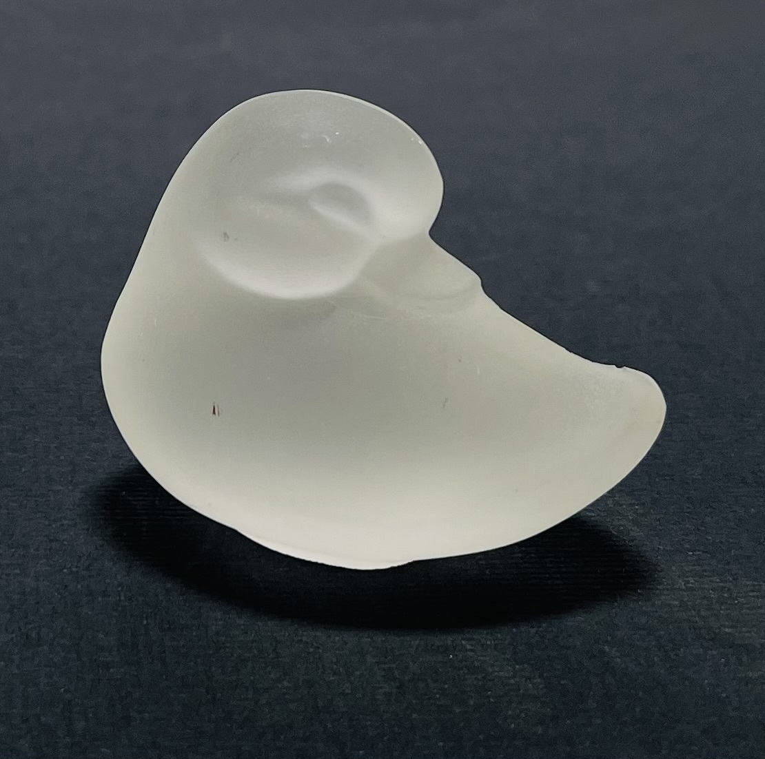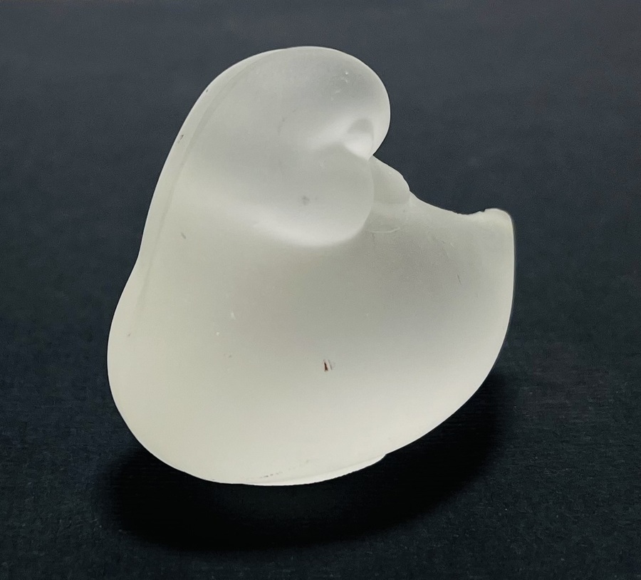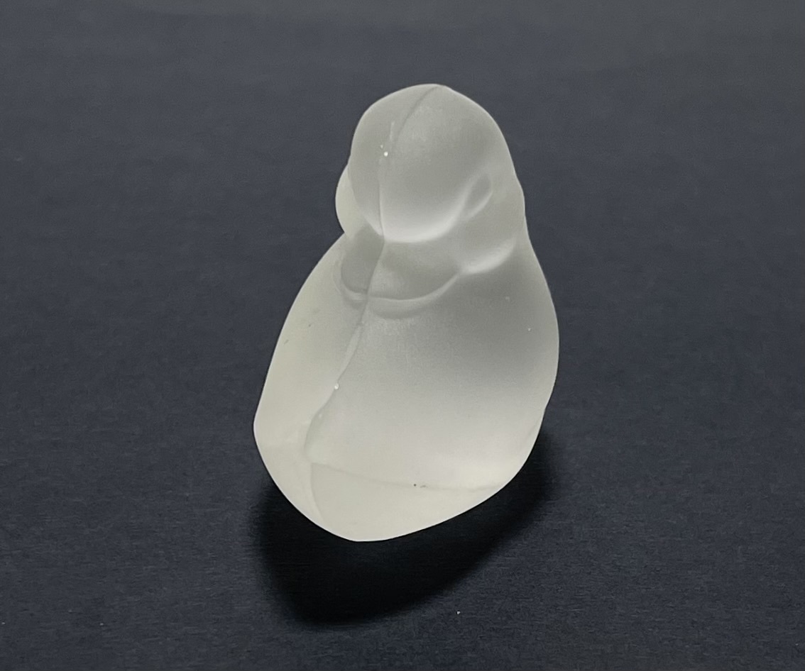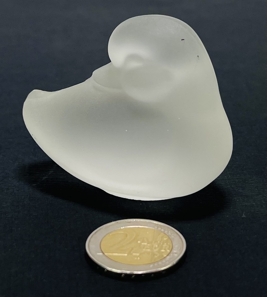 Gesatineerd glazen beeldje van een eend naar ontwerp van Lucienne Bloch (1909-1999), uitgevoerd door Glasfabriek Leerdam, ontwerp stamt uit 1940. |
