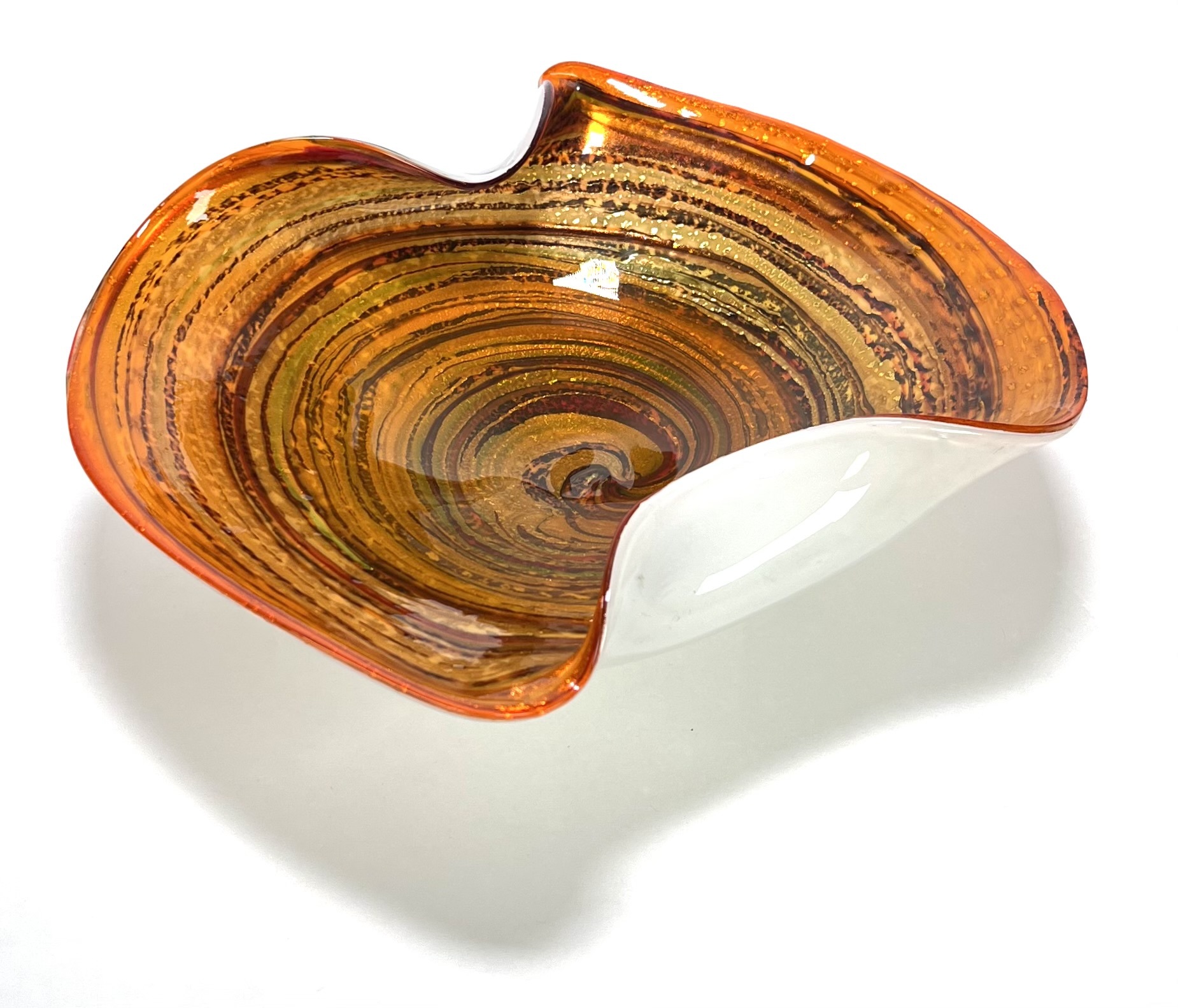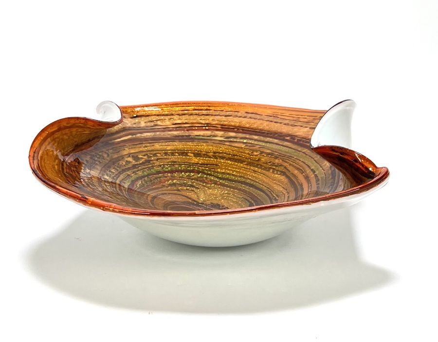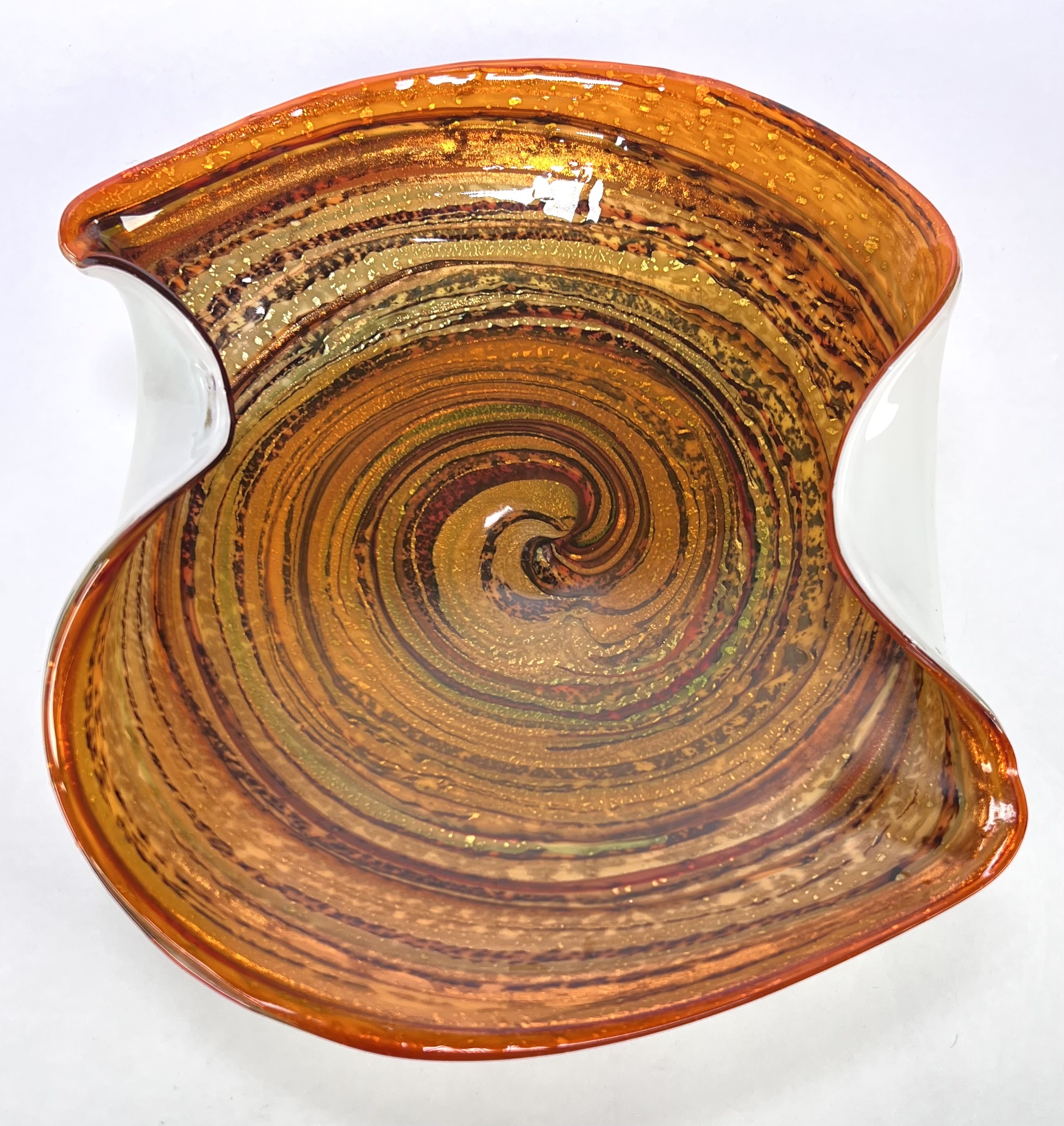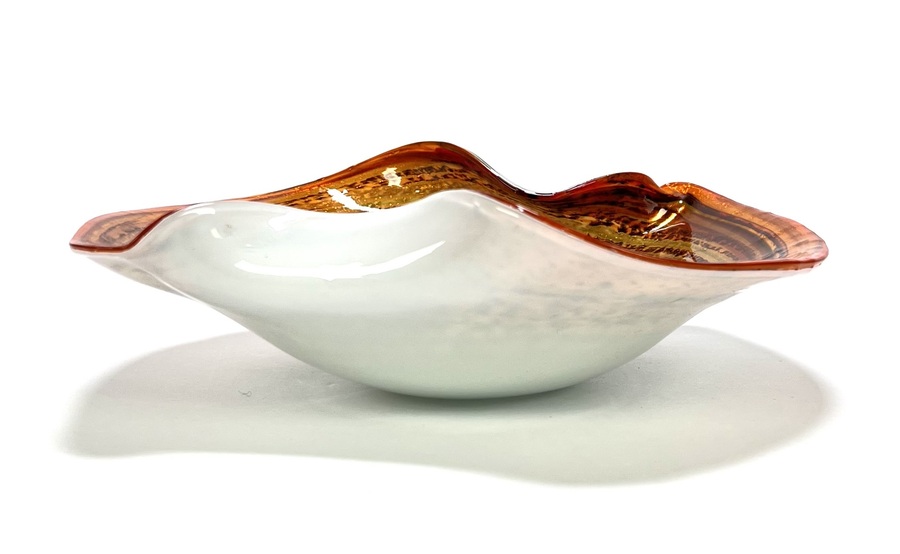 Glazen dubbellaags kristallen Murano schaal met swirl decor voorzien van omgeslagen rand door Fratelli Toso. Venetië, omstreeks 1955. |