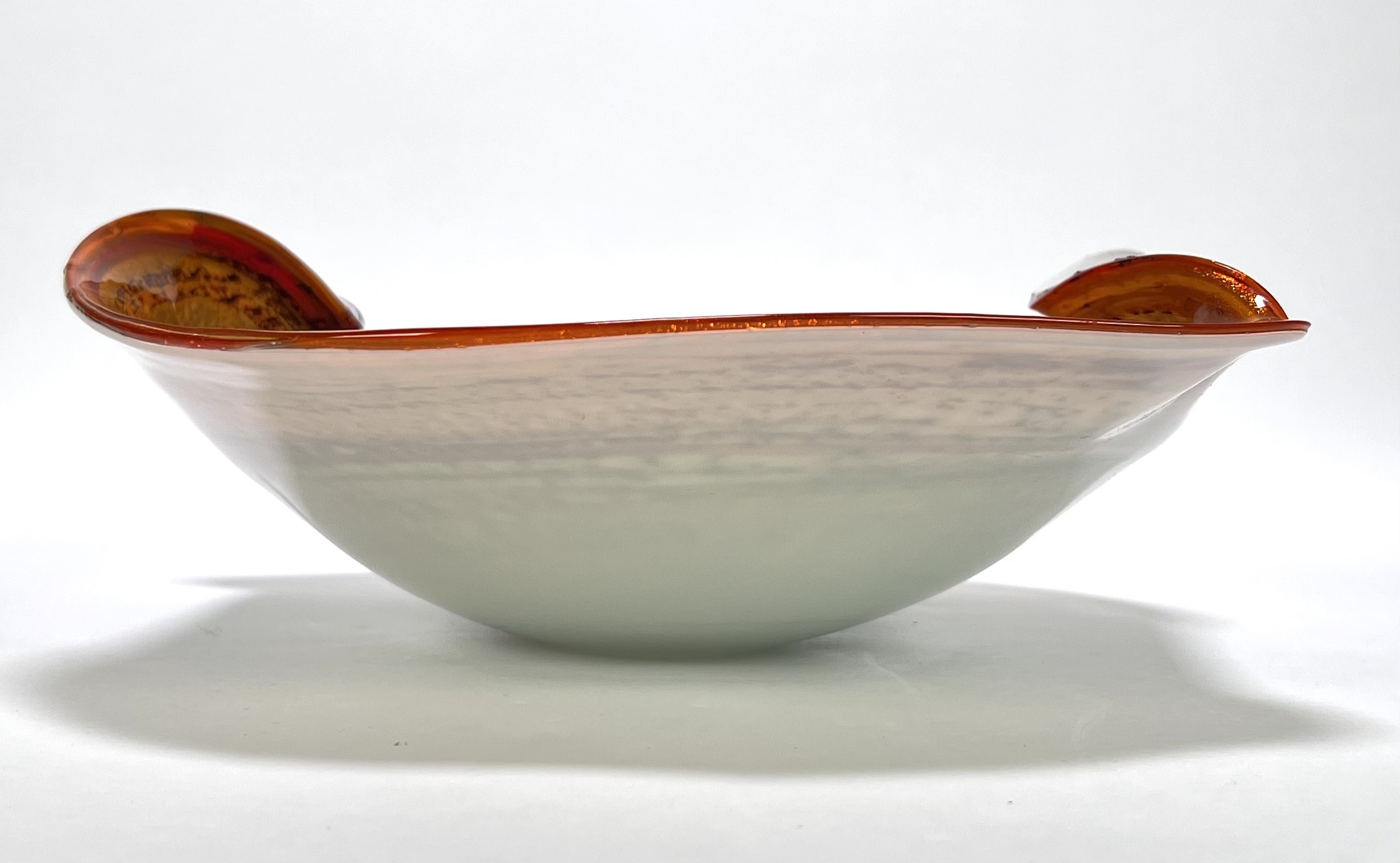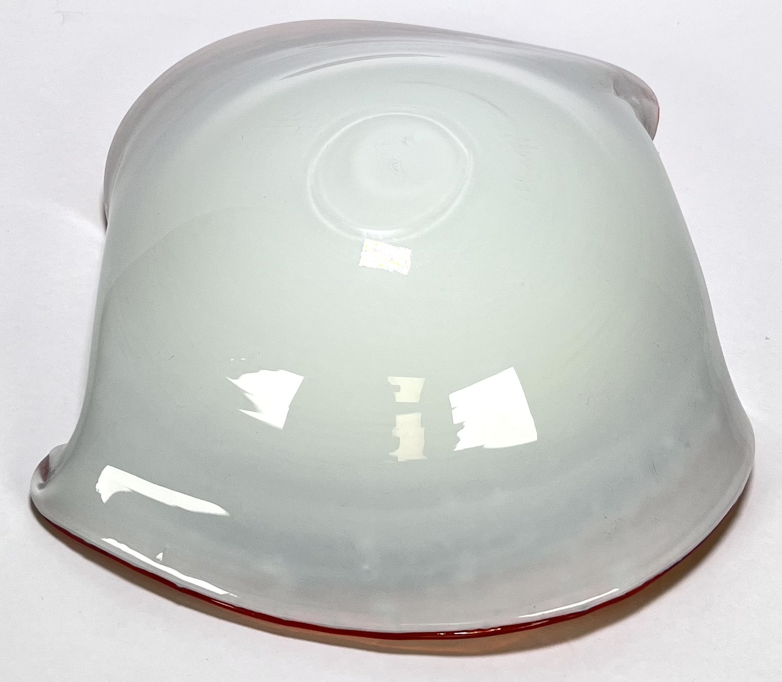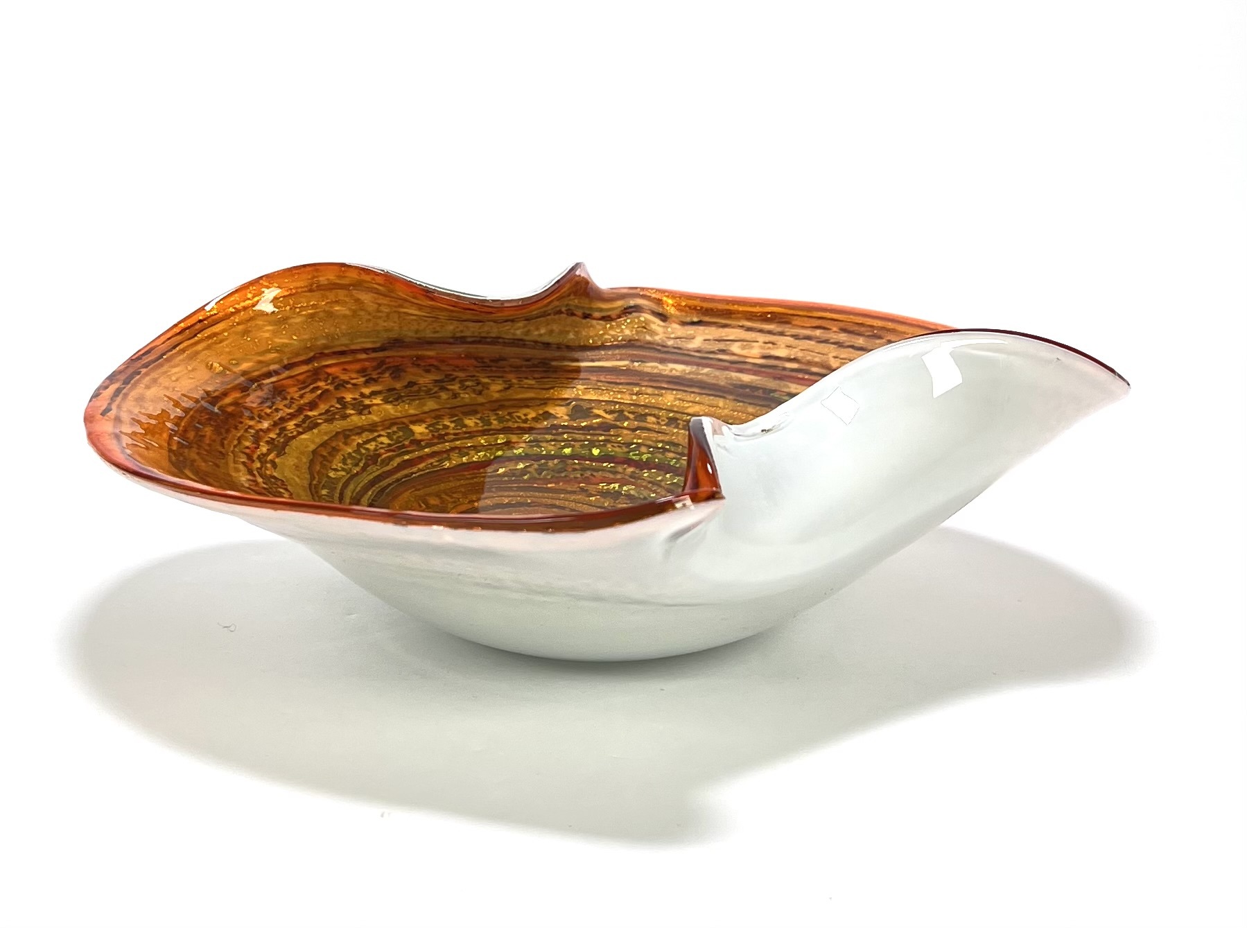 Glazen dubbellaags kristallen Murano schaal met swirl decor voorzien van omgeslagen rand door Fratelli Toso. Venetië, omstreeks 1955. |