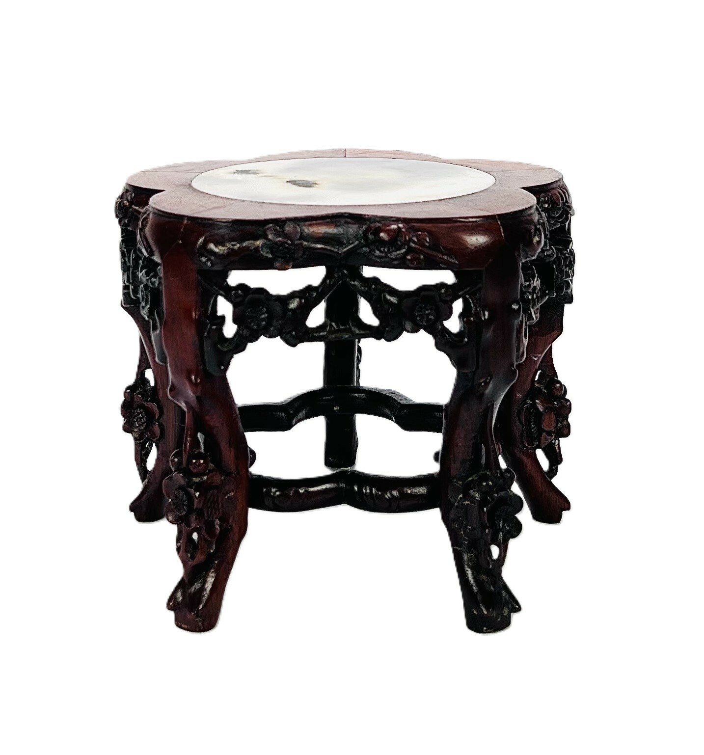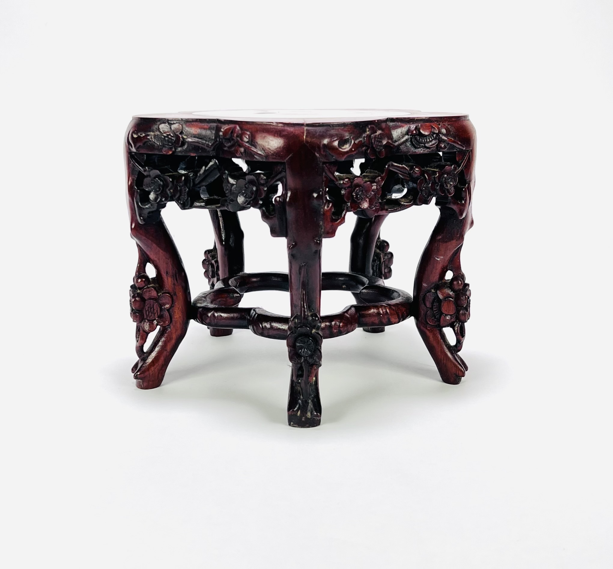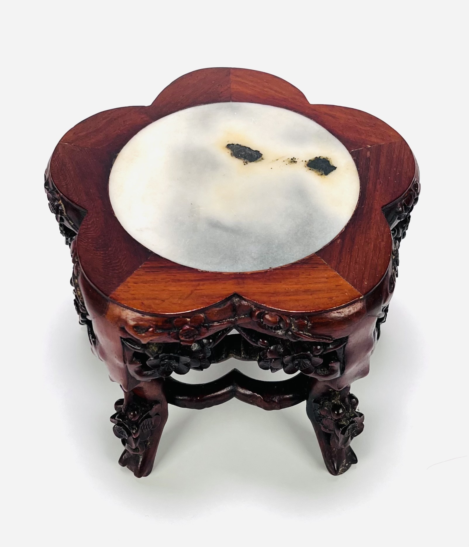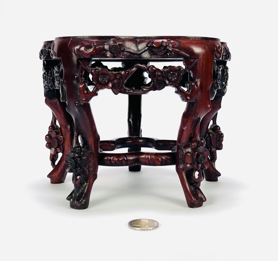 Chinese bewerkte houten standaard met marmeren blad. Begin 20e eeuw |