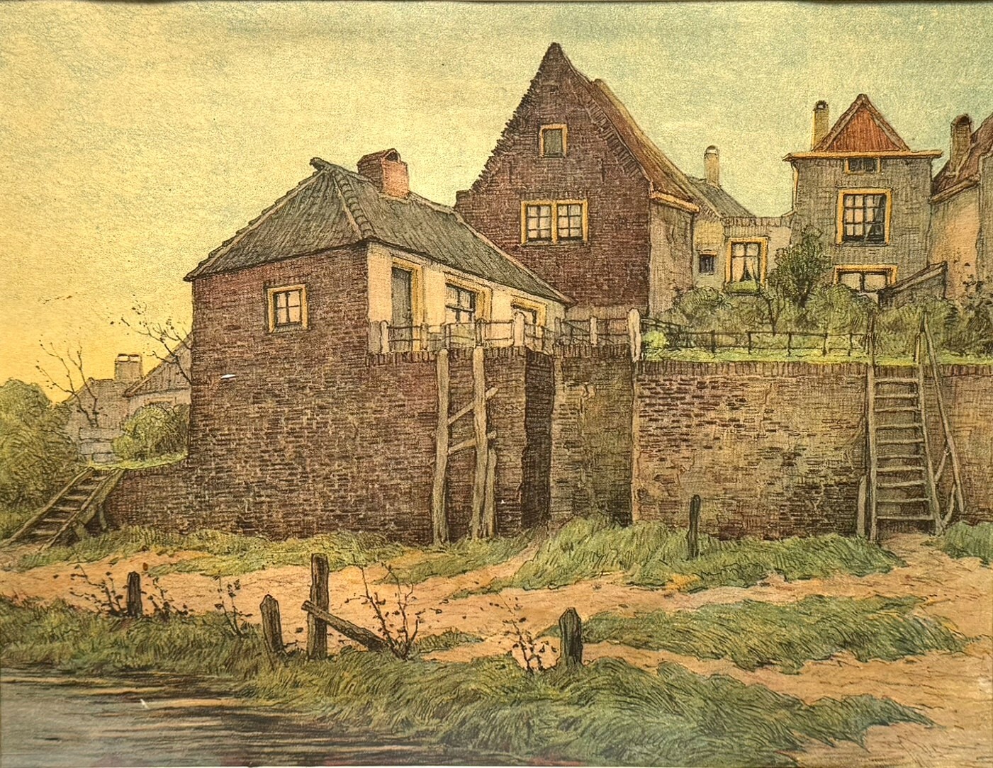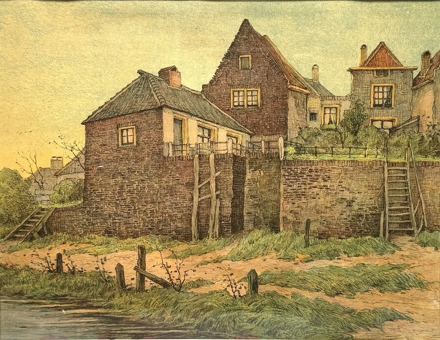 Litho getiteld “Oud Deventer” door Paul Bodifee (1866-1938). Vage signering rechtsonder, jaren 20. |