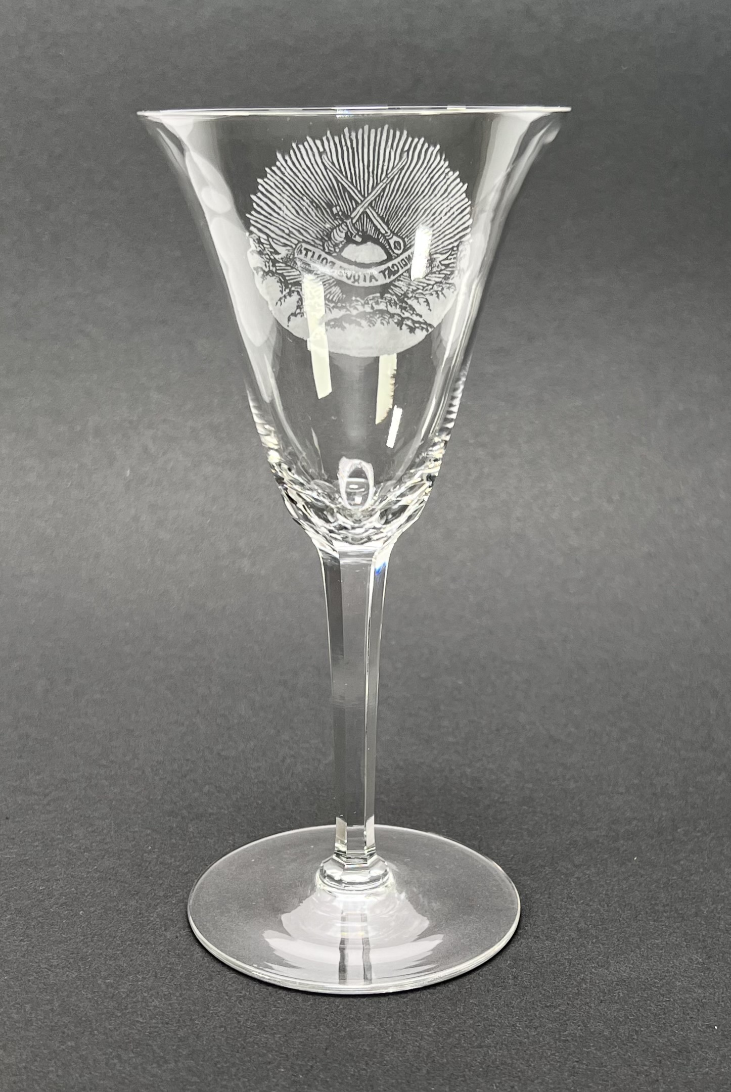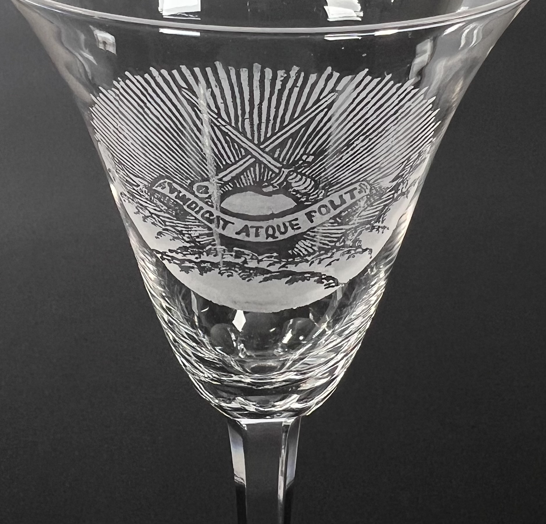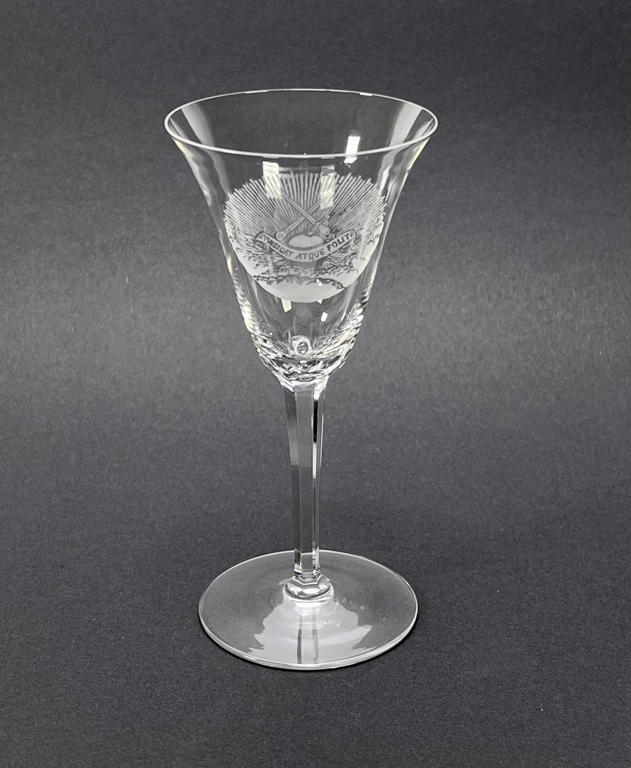 Kristallen wijnglas met geëtste wapen van Vindicat Atque Polit glas. 20e eeuw. |