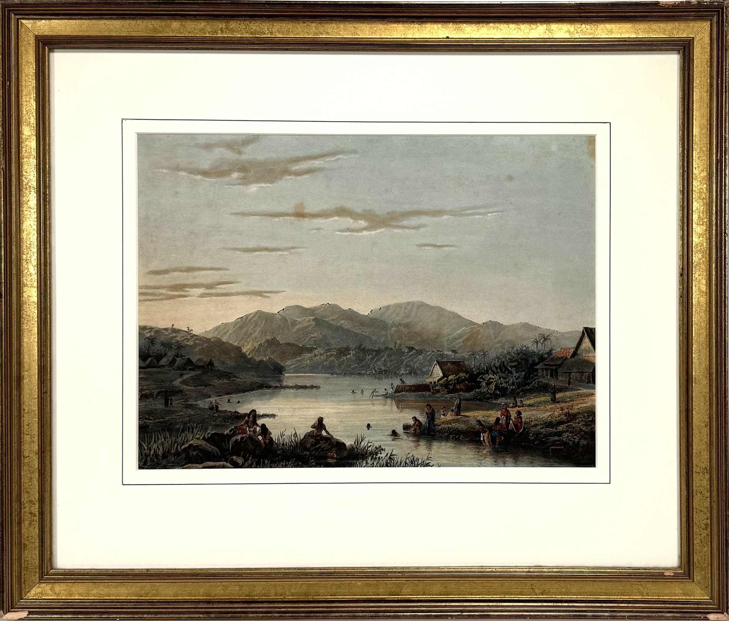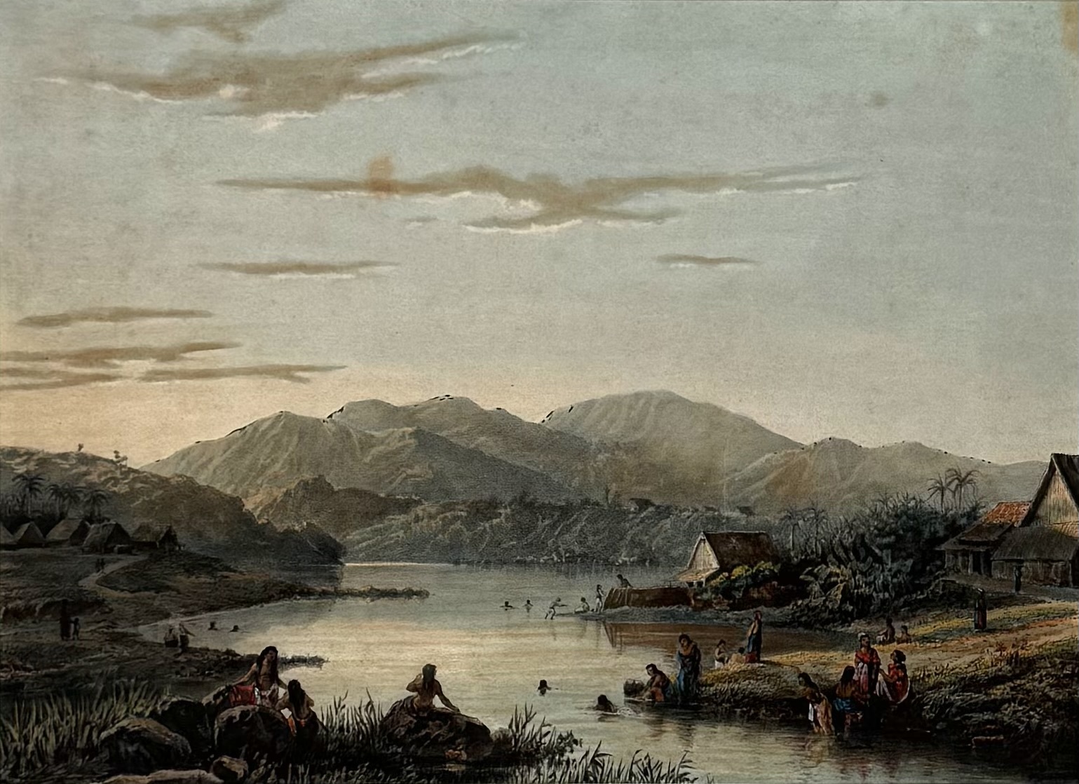 Litho naar een schilderij van A. Salm van de badplaats Wenditt op Java. datering 1865-1872. |