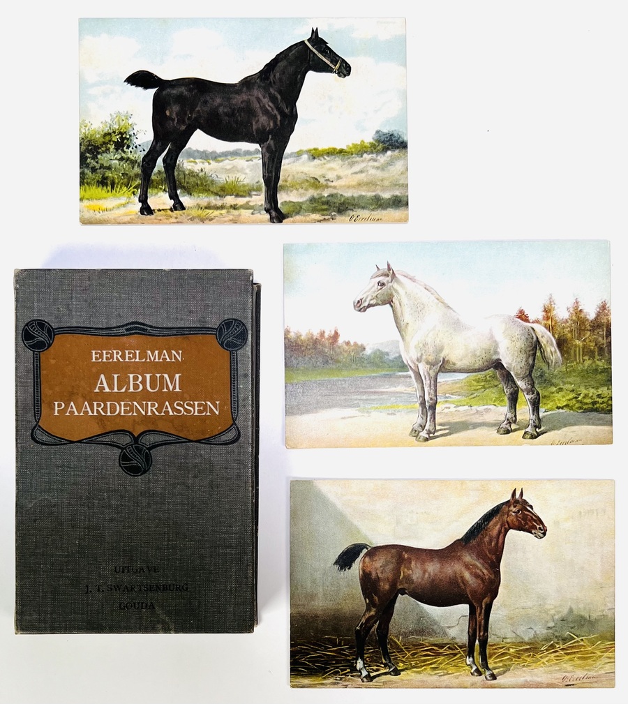 Een album uit de Art Nouveau periode met 41 losse lithografische prentkaarten van paardenrassen, getekend door Otto Eerelman (1839–1926). Het album is uitgevoerd in karton met een linnen omslag en gedrukt door J. T. Swartsenburg te Gouda. De illustraties zijn gesigneerd in de plaat en dateren van omstreeks 1910. De prenten tonen een realistische weergave van diverse paardenrassen en zijn afkomstig uit Nederland.