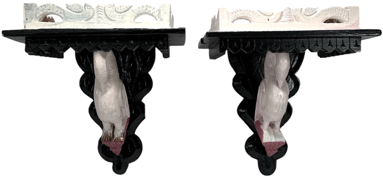 Houten wandconsoles met vogelmotief, ca. midden 20e eeuw