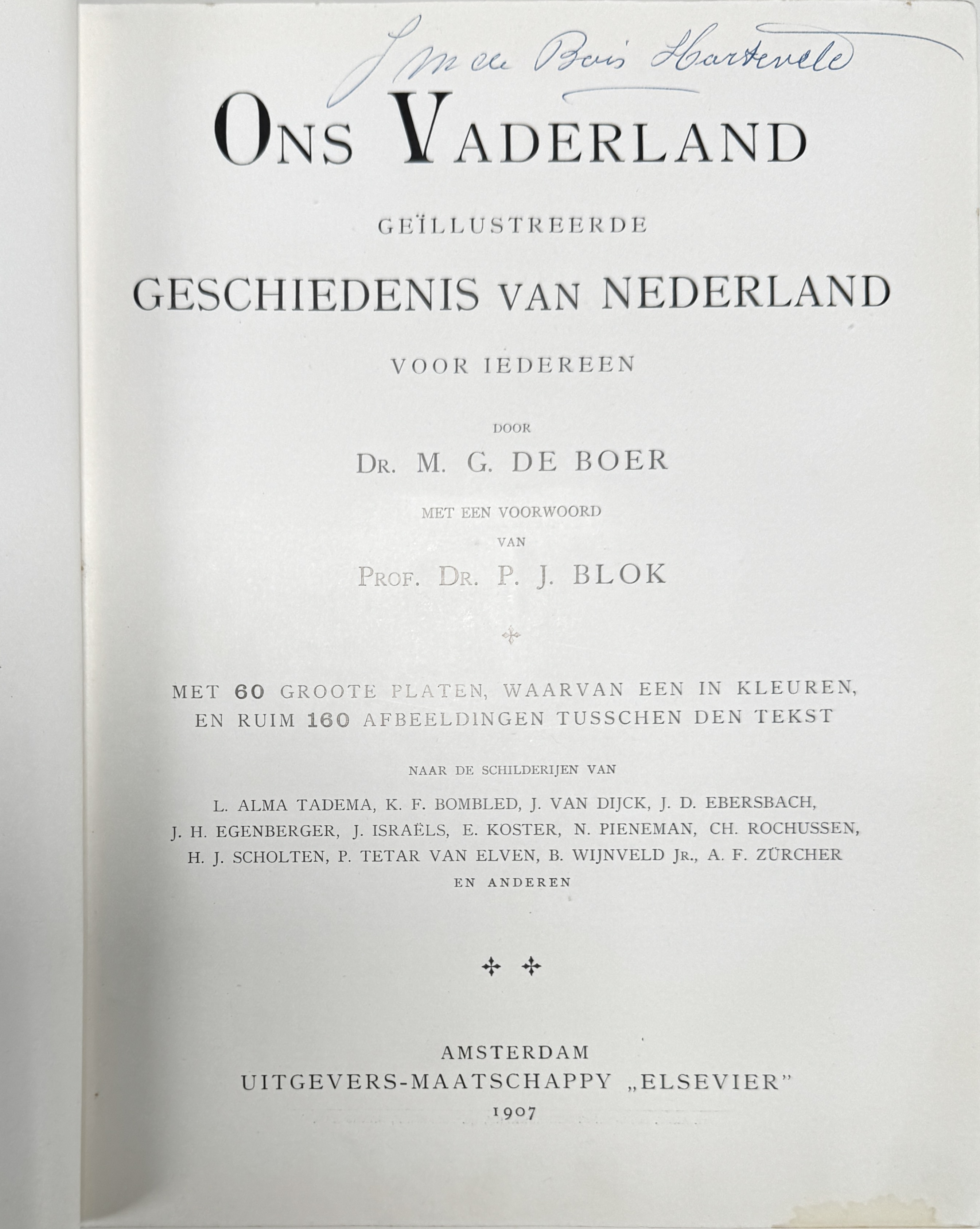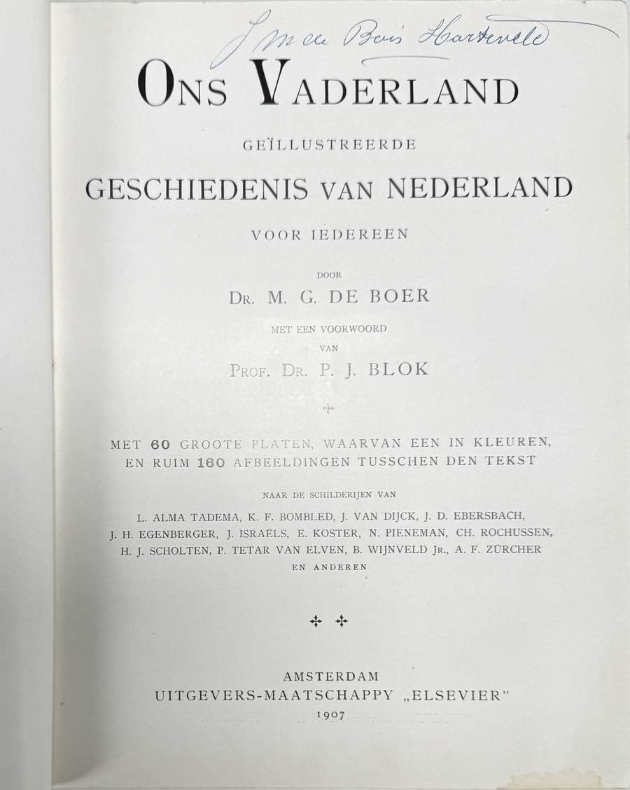 Convoluut van zeven Nederlandse kinder- en jeugdboeken, diverse auteurs en uitgevers (o.a. P. Noordhoff, Groningen), circa 1920–1950. Papier en karton, deels linnen gebonden; boekdruk met lithografische omslagen. Titels omvatten ‘Ons Vaderland’, ‘Volkszang-bundel’, ‘Zing en speel me maar’, ‘Kinderen’, ‘Zij maakten luchtvaartgeschiedenis’, ‘Hollandsche Molens 1877–1927’ en ‘De Bloemenvelden’. Meerdere banden met blindstempel, opdruk en sierlijke schutbladen. Wil je direct deelnemen? Plaats vanaf 22 augustus alvast een schriftelijk bod via onze website! |