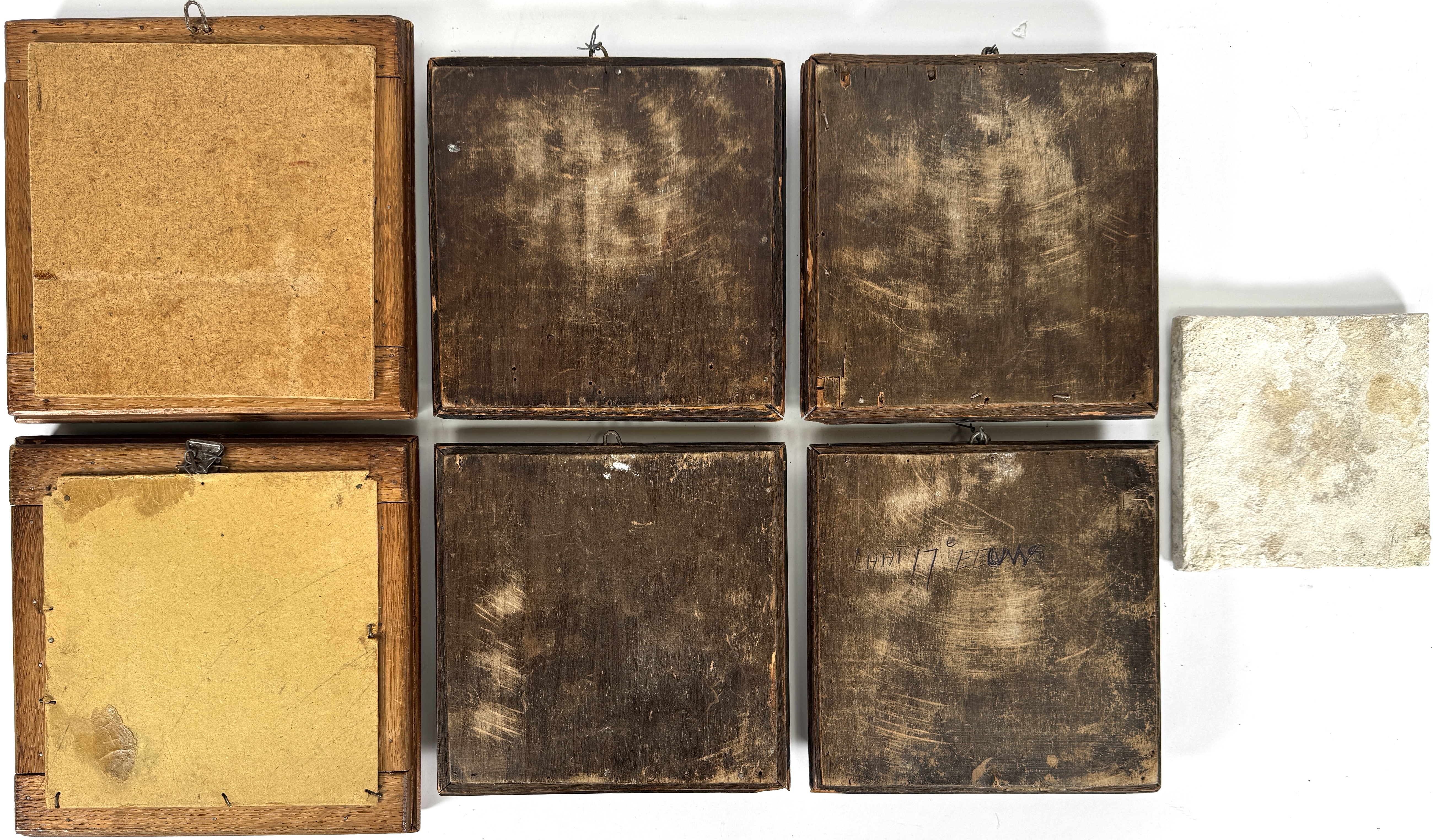 Set van zeven Delftse faience tegels, 18e eeuw, met blauw beschilderde voorstellingen van dieren, kinderspelen en figuren. Zes tegels gemonteerd in houten lijsten, één los. Vervaardigd van aardewerk met tinglazuur beschildering in kobaltblauw, kenmerkend voor de Nederlandse Delftse traditie. De tegels tonen ossenkop-hoekmotieven, craquelé en sporen van veroudering. Zeker zijn van deelname? Plaats vanaf 22 augustus een schriftelijk bod online! |