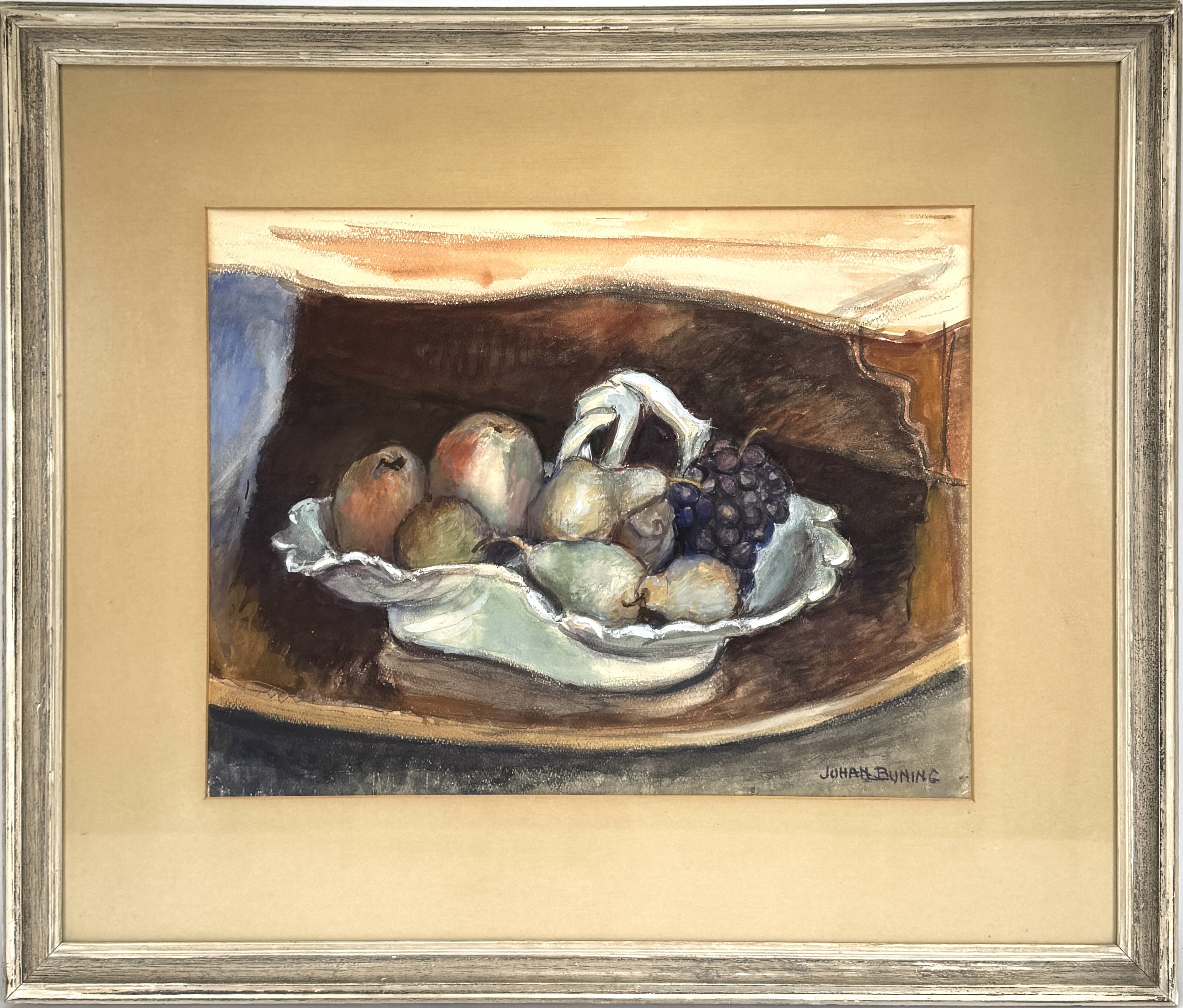 Gouache Johan Buning, stilleven met fruitschaal, midden 20e eeuw