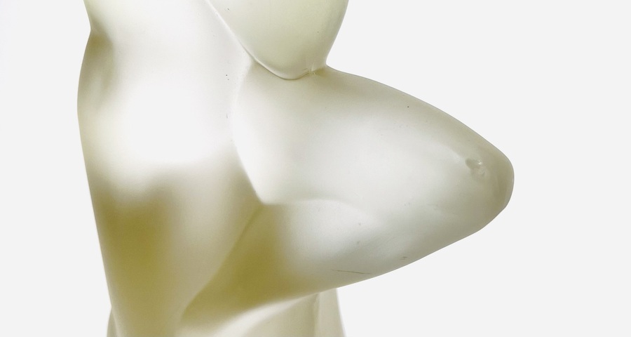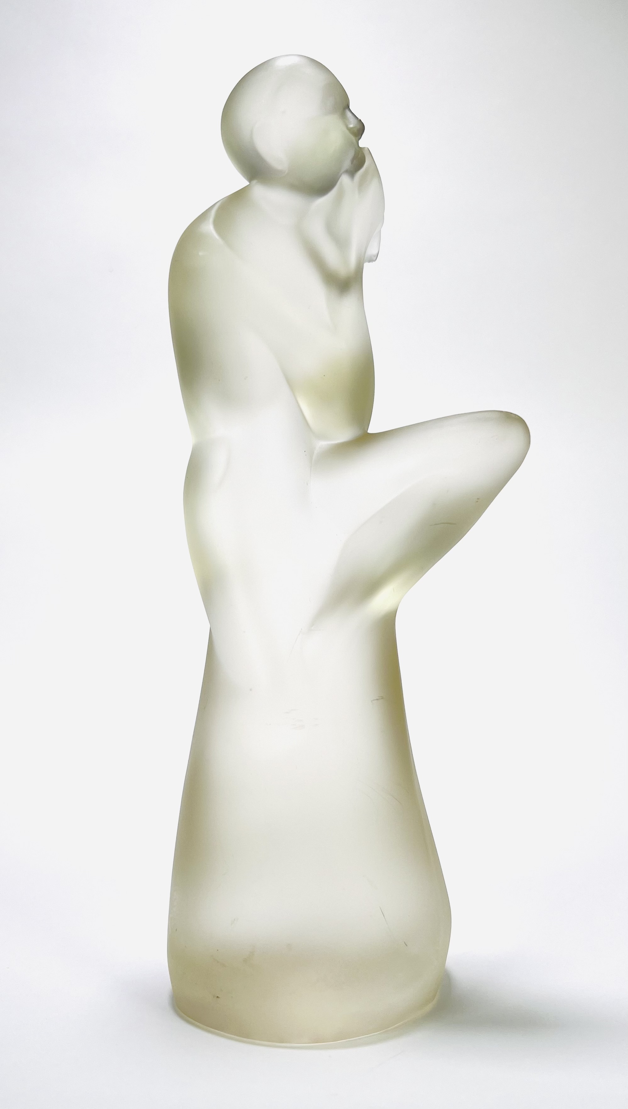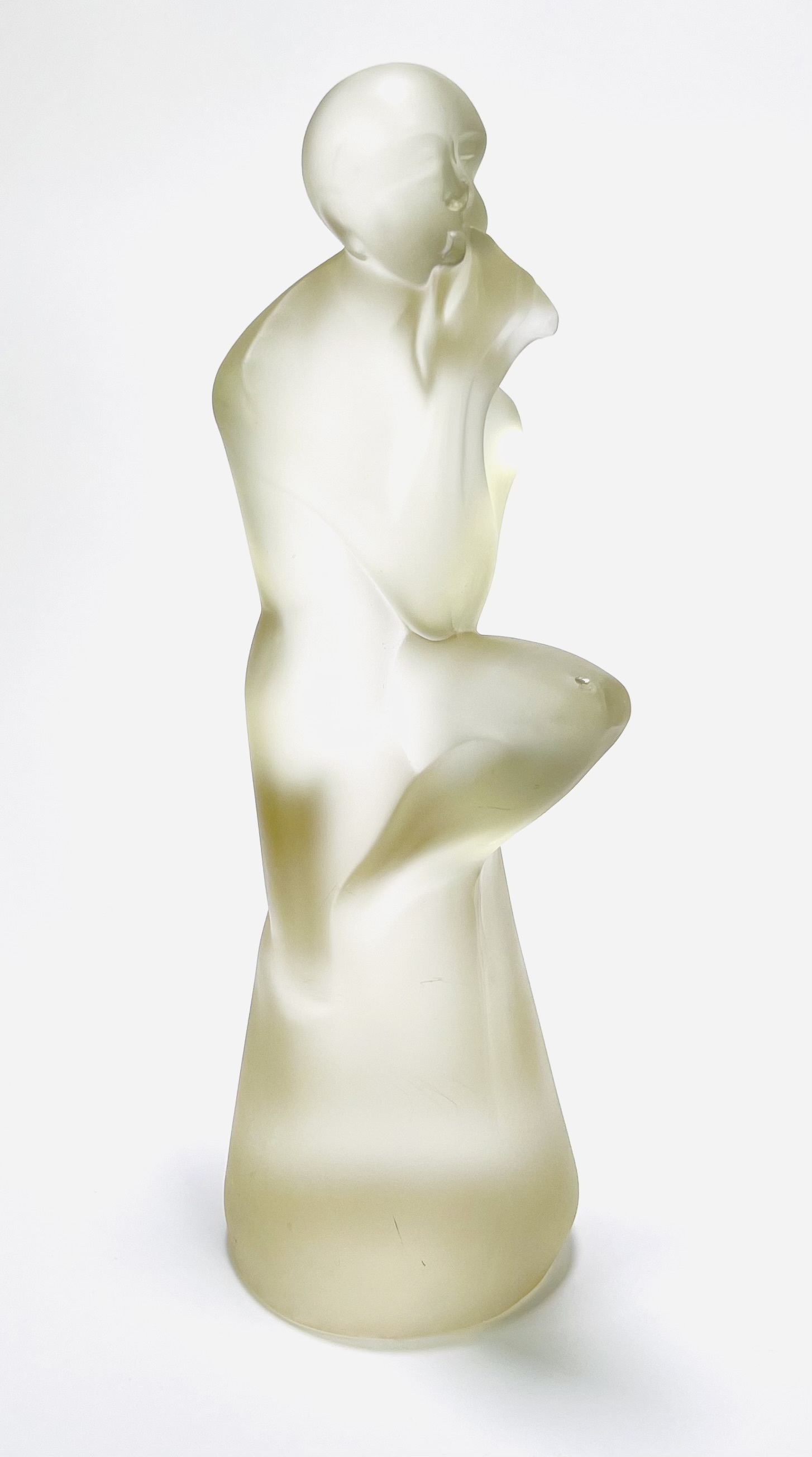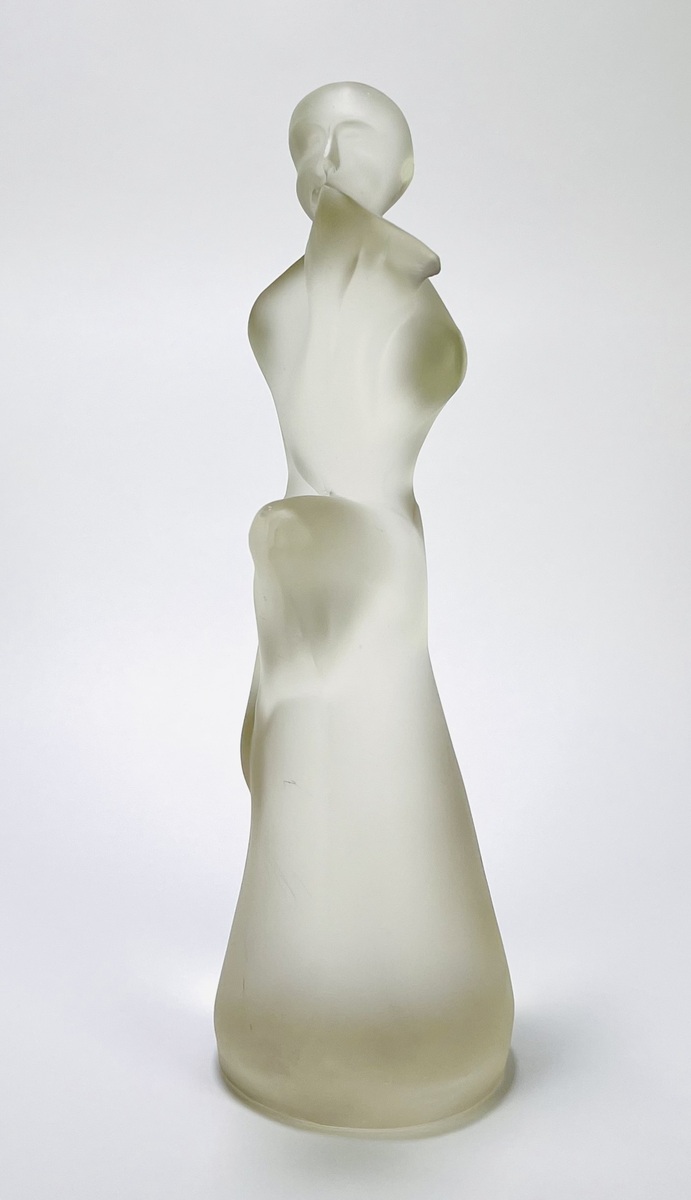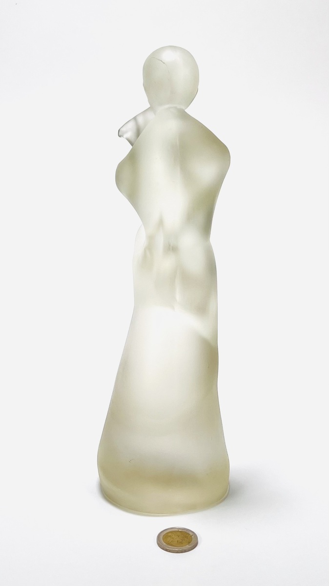 Art Deco beeld van een fluitspeelster uit circa 1932, ontwerp Stephanus Albertus (Stef) Uiterwaal (1889 –1960). Het beeld is uitgevoerd in geperst matglas met een lichtgele tint. De abstracte gestileerde vorm van een vrouwelijk figuur is kenmerkend voor de stijl. Het object is ongesigneerd, uitvoering Glasfabriek Leerdam, Wil je direct deelnemen? Plaats vanaf 22 augustus alvast een schriftelijk bod via onze website! |