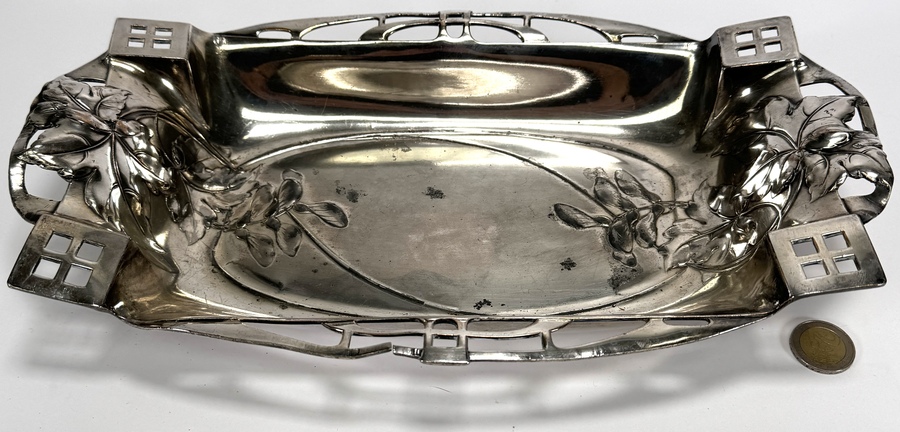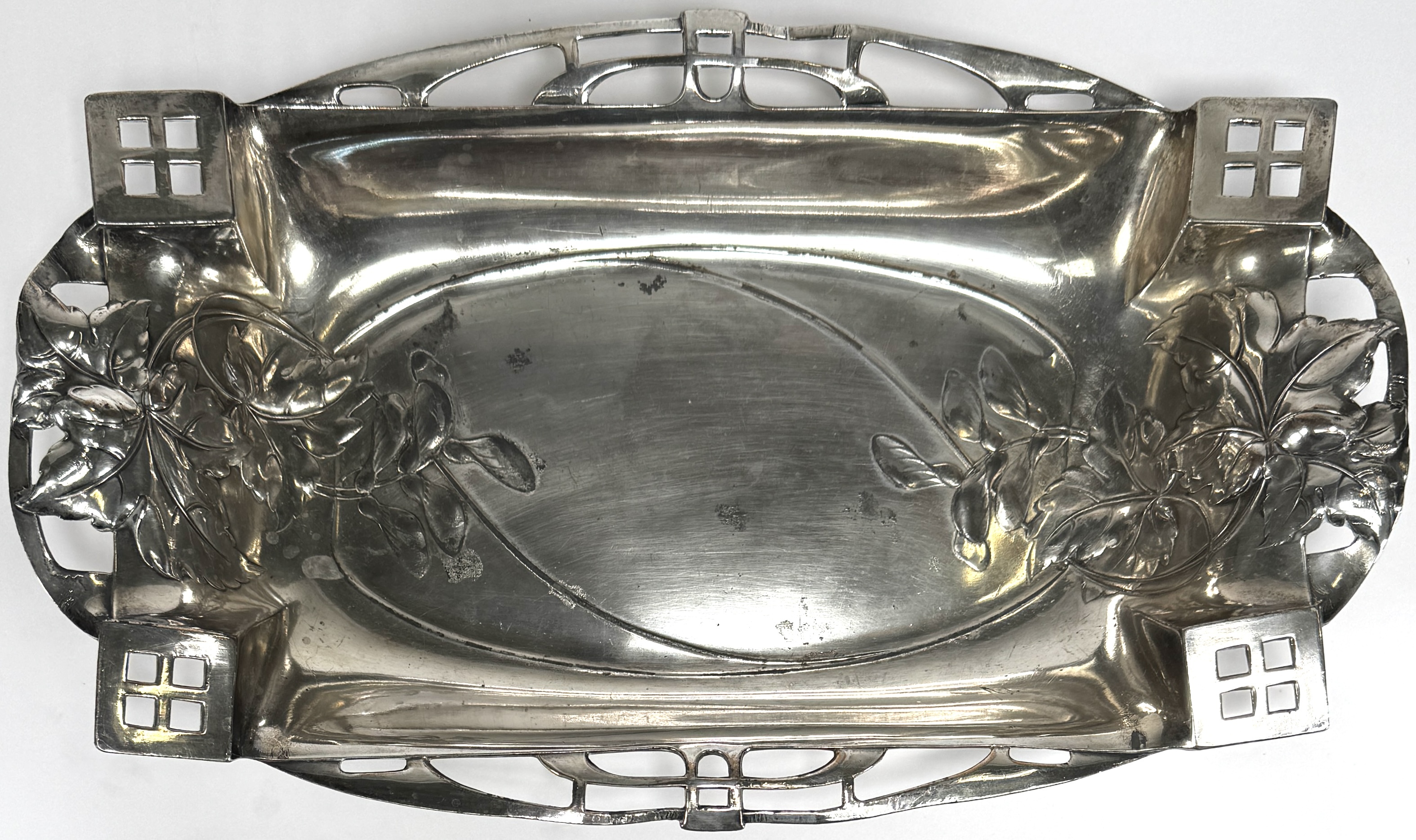 | Kavelnummer en naam | 421. Verzilverde Jugendstil schaal, begin 20e eeuw, Duitsland | |