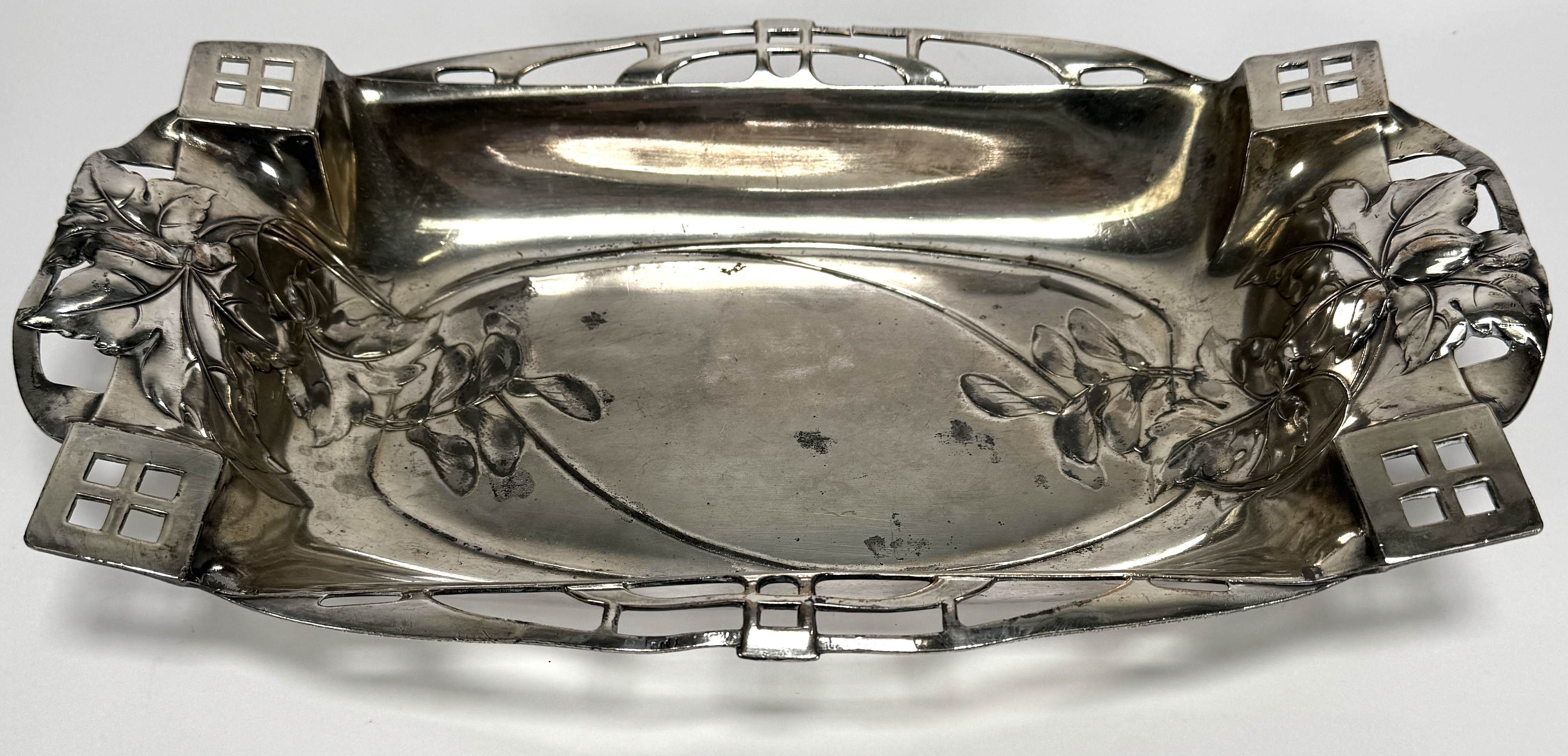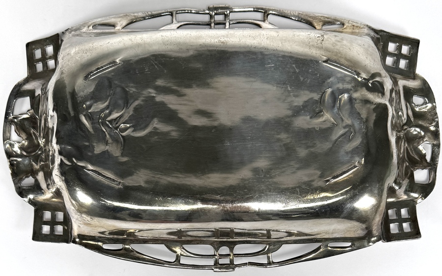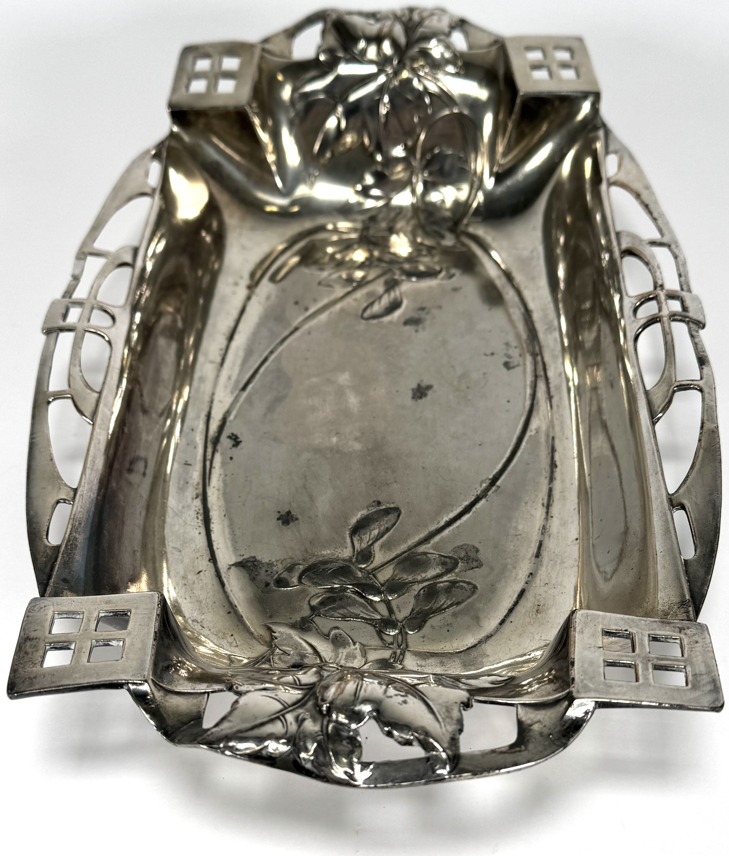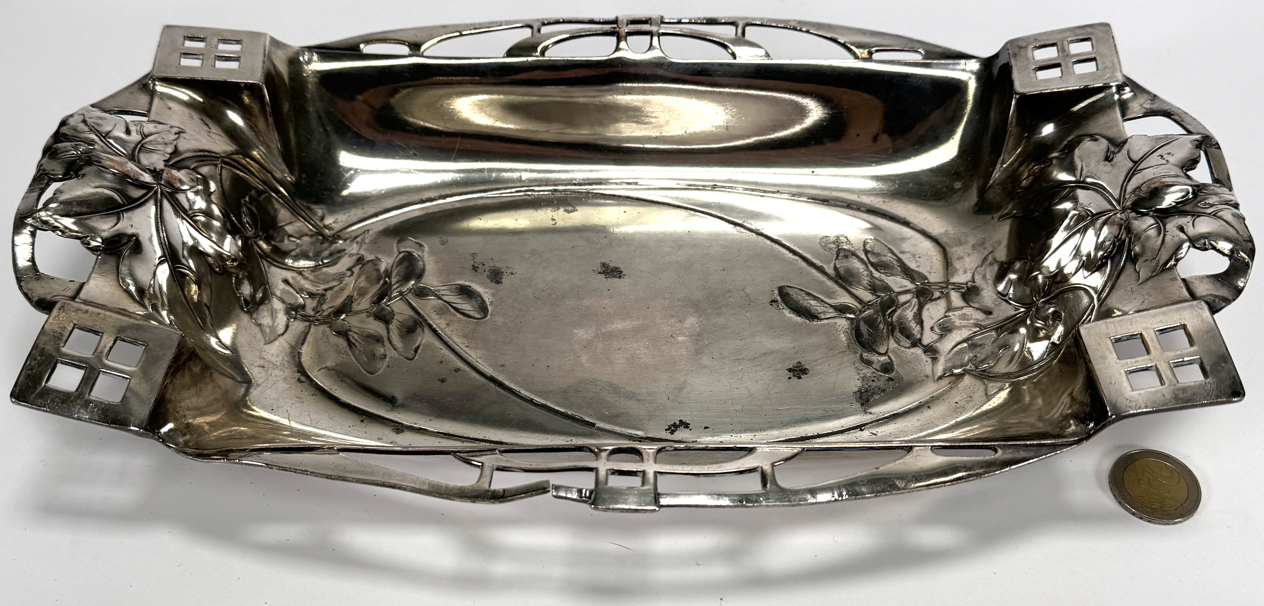 Verzilverde Jugendstil schaal, begin 20e eeuw, Duitsland