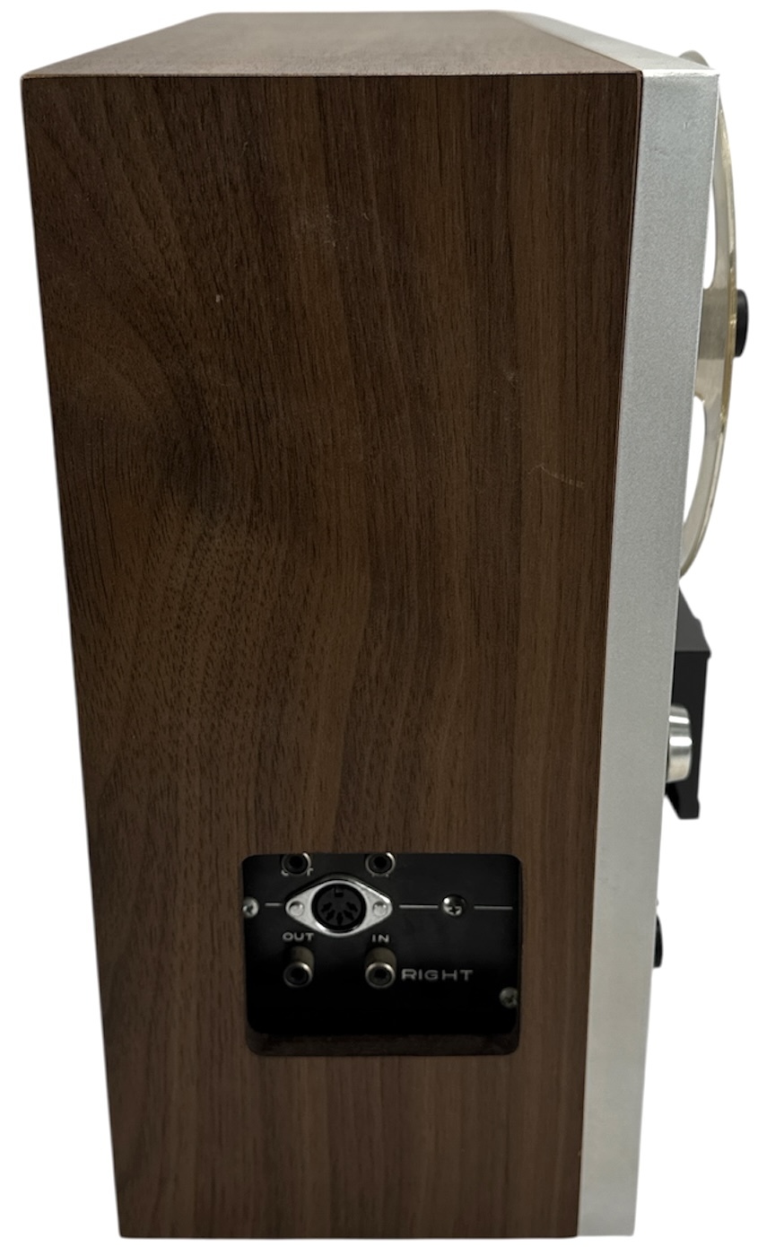 Akai bandrecorder model 4000D, midden 20e eeuw, vervaardigd door Akai Electric Co., Ltd. in Japan. Gemaakt van metaal, houtfineer en kunststof, uitgevoerd als open-reel recorder met solid-state techniek en drie-koppen-systeem. Voorzien van mechanische regelaars, meters en aansluitingen voor microfoon en lijn. Houtfineer zijpanelen, afneembaar zwart deksel met logo. Wilt u bieden? Schrijf u in en doe mee aan de veiling! |