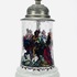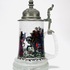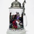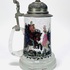 Glazen bierpul met tinnen deksel en jachtscène, midden 20e eeuw