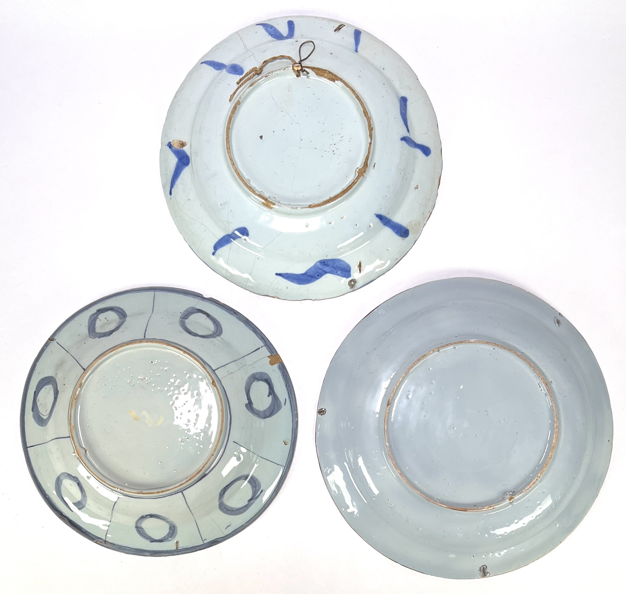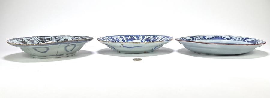 Drie blauw-witte borden in Delfts aardewerk, vervaardigd circa 1680–1740. Het eerste bord toont een chinoiserie tafereel, het tweede bord een interieurscène in Europese stijl en het derde bord een centrale rozet omringd door florale patronen. Alle borden zijn uitgevoerd in tingeglazuurd aardewerk en onderglazuur beschilderd in kobaltblauw. De decoratie toont invloeden uit zowel Chinese exportporselein als Europese tradities. Eerst zien voordat je biedt? Bezoek onze kijkdagen op 29, 30 en 31 augustus van 11:00 tot 17:00 uur! |