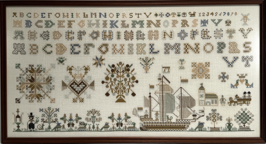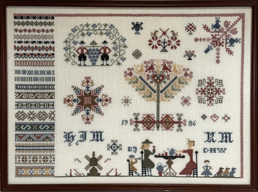 Merklappen, kruissteekmotieven, eind 20e eeuw