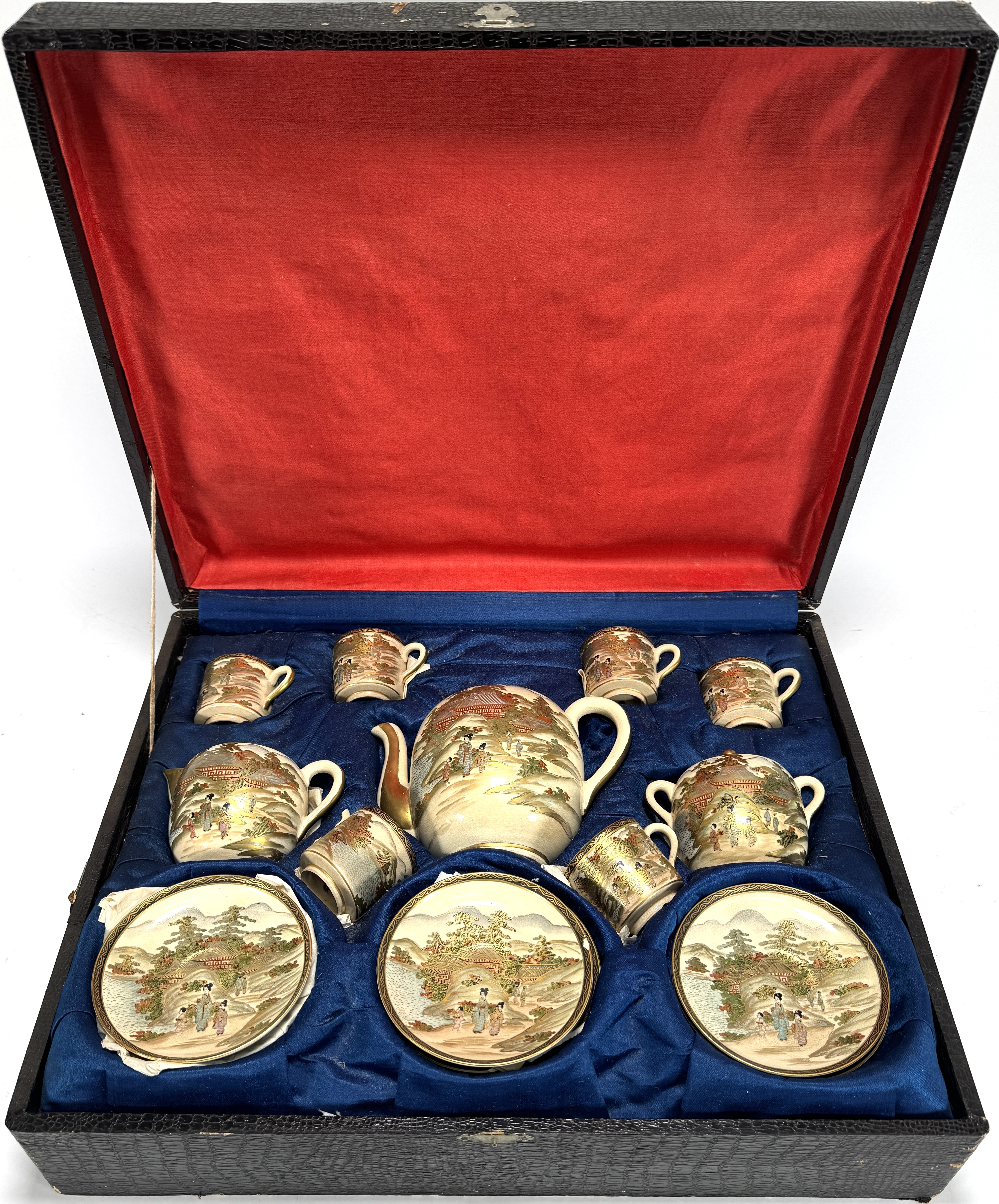Aardewerk Satsuma theeservies in koffer, ca. 1920, Japan