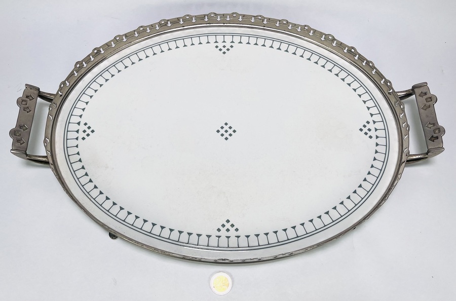Art Deco dienblad met keramisch inzetblad, eerste kwart 20e eeuw