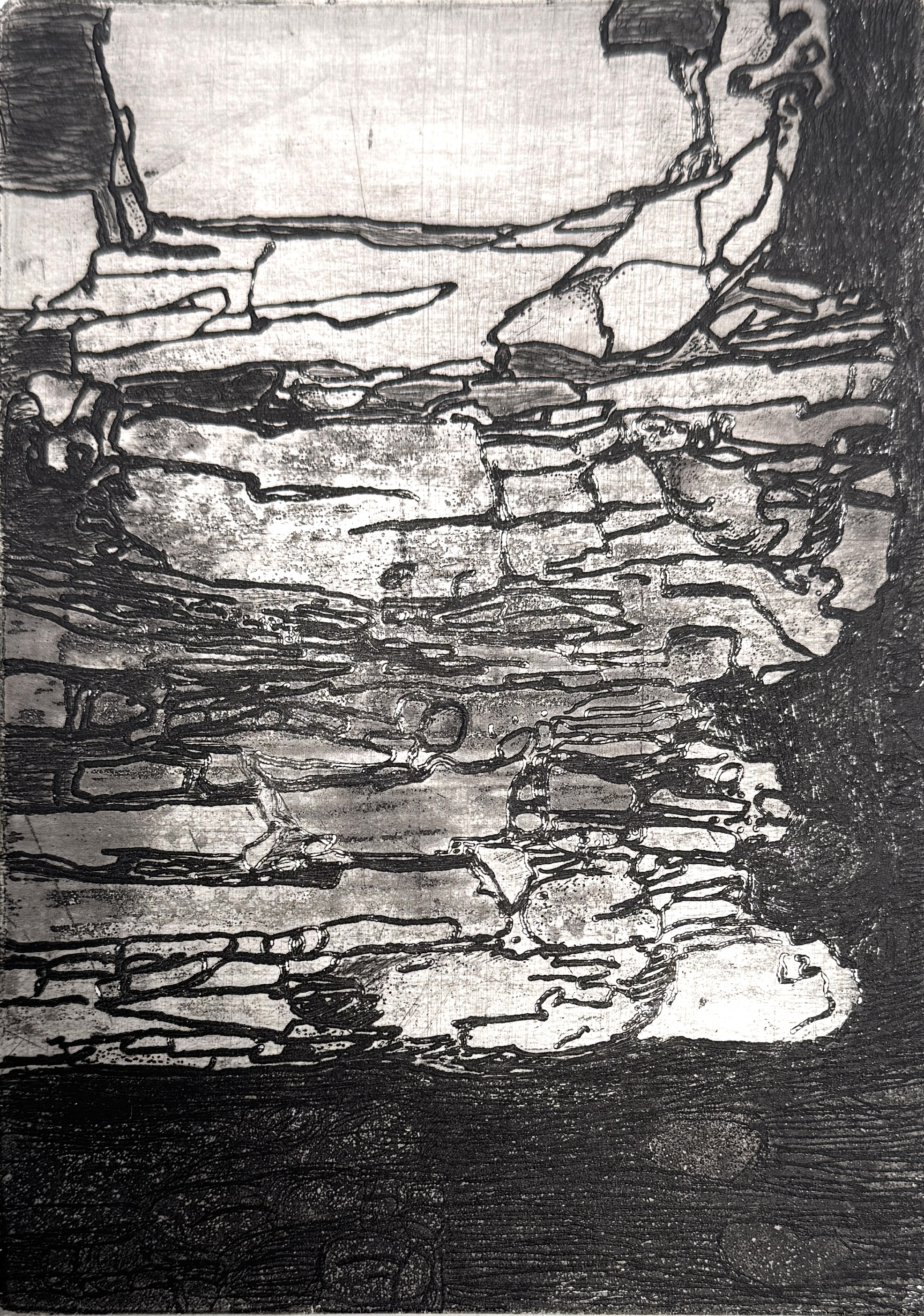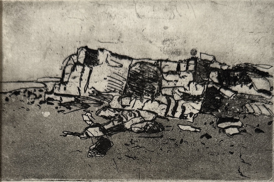 Etsen/nieuwjaarskaarten Thijs Buit, rotsformaties, jaren '60